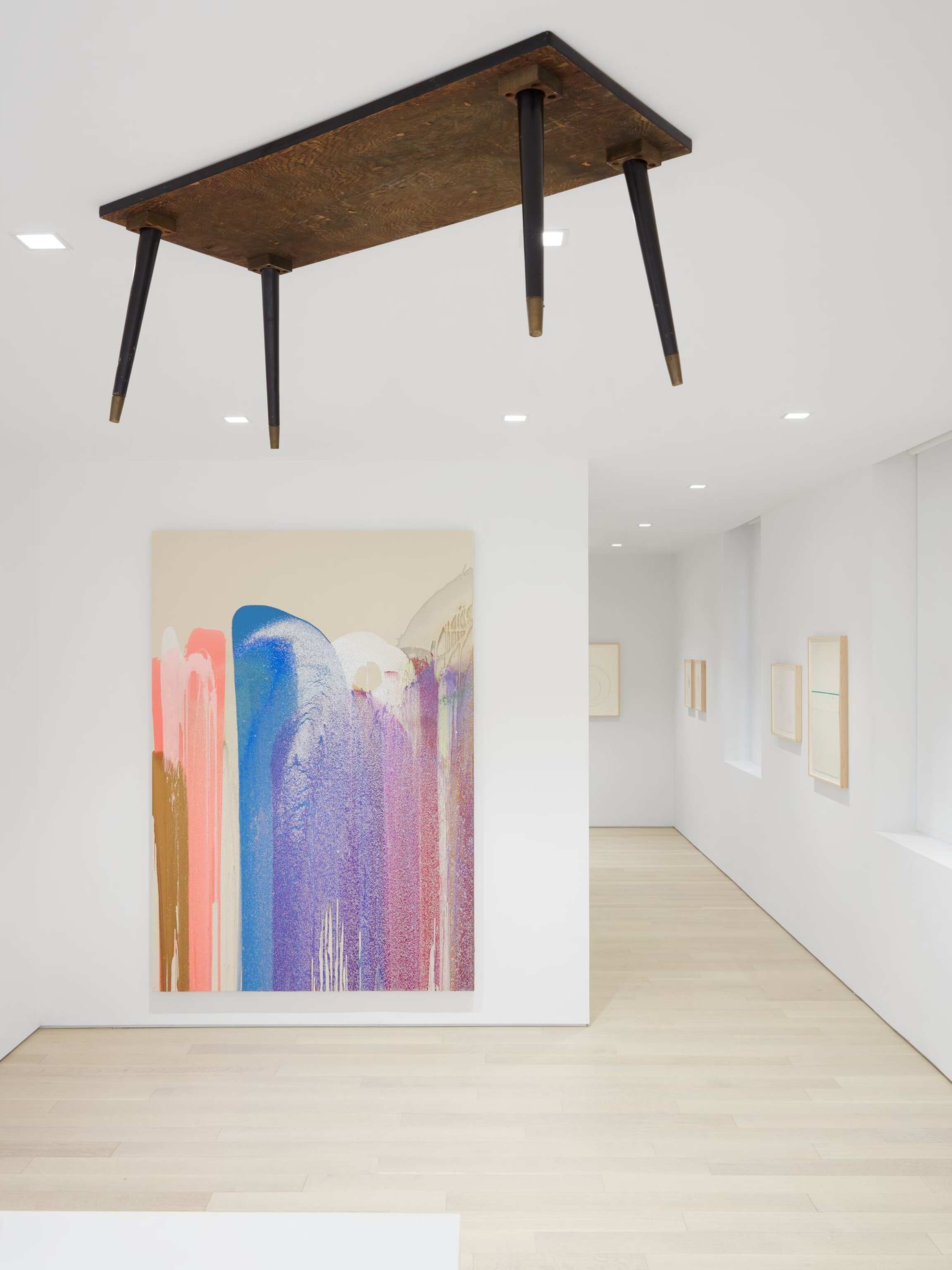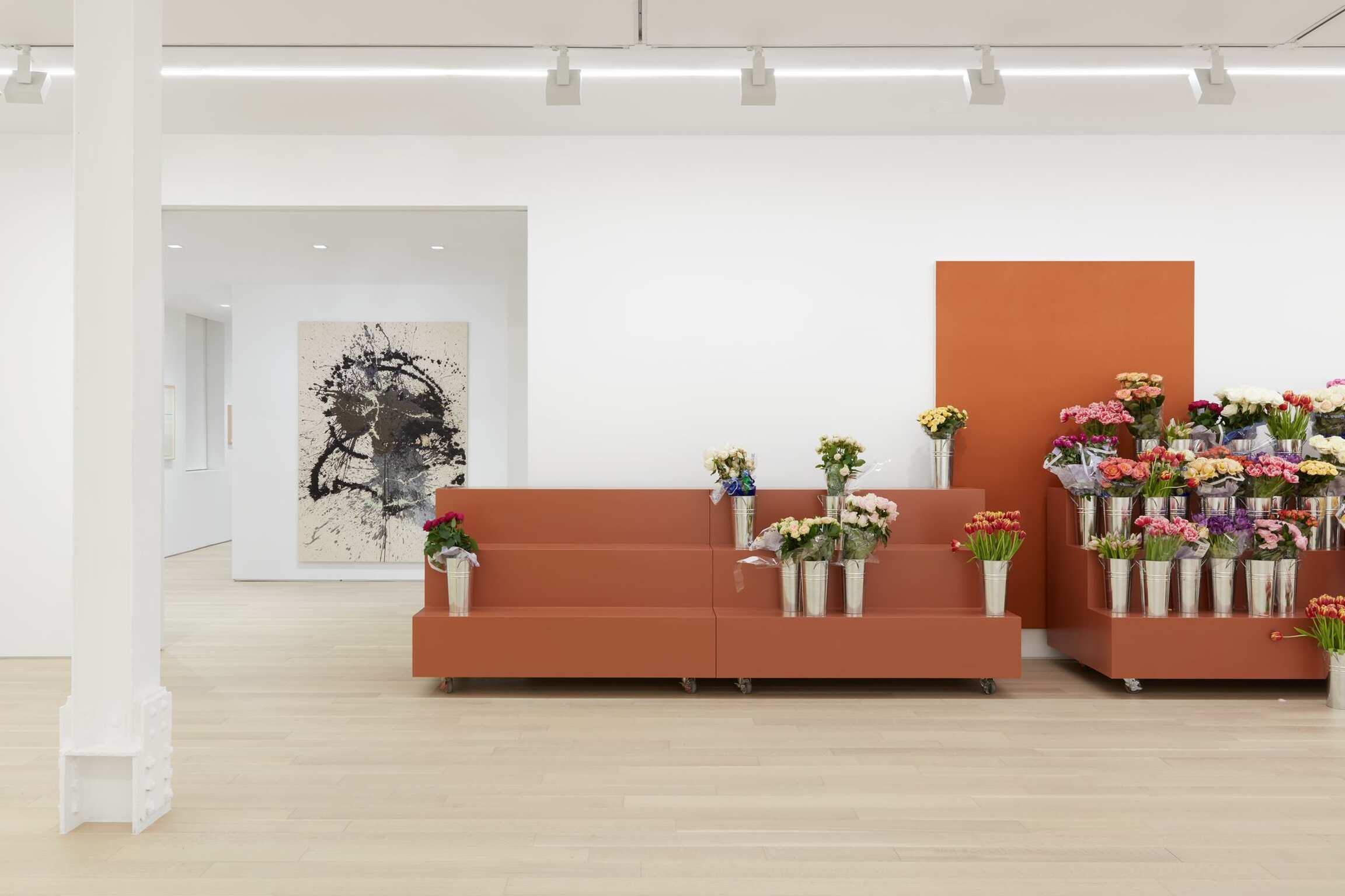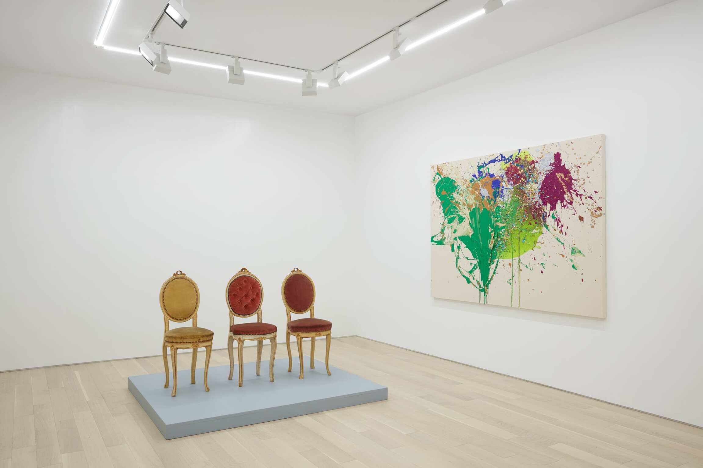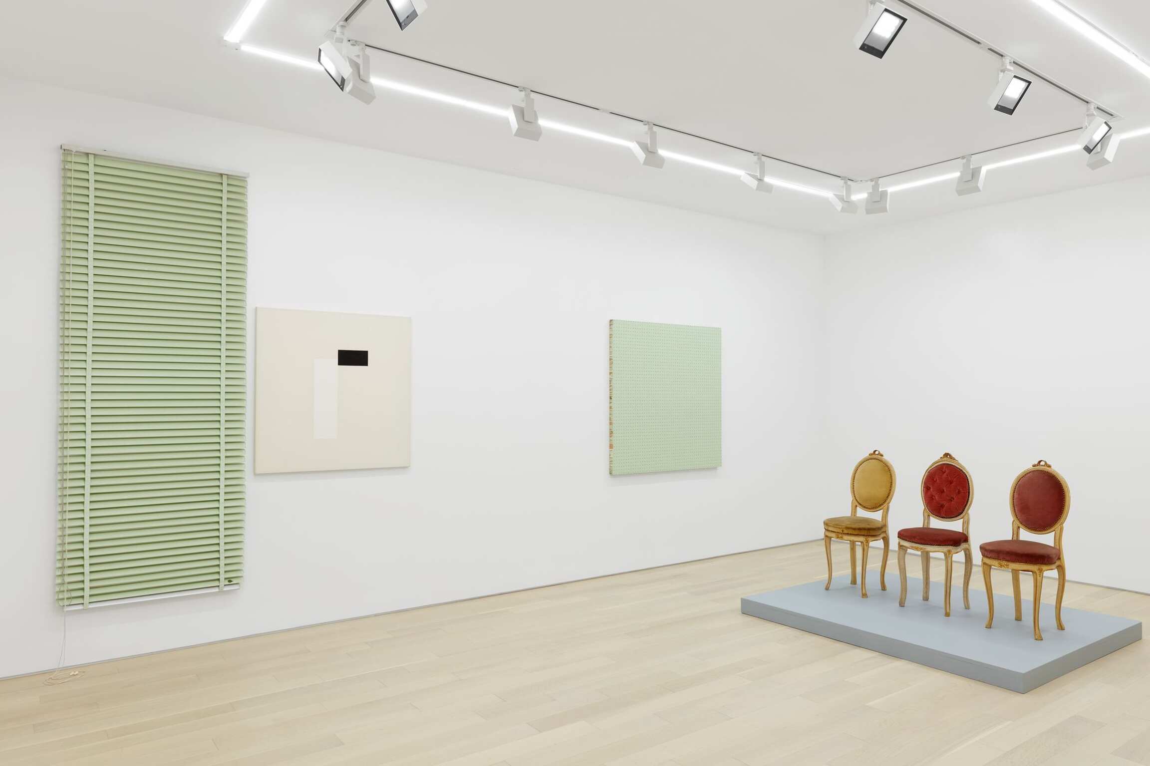 In 1979, John M Armleder developed a series of works entitled Furniture Sculpture, which brought him international recognition. These works, composed of a domestic piece of furniture, such as a table or chair, are associated with an abstract canvas. Directly referencing the Duchampian ready-made, they endeavour to question the status of the work of art, the ideas of style and decoration, while freeing those from artistic categories and hierarchies. One of his first Furniture Sculpture works (FS18), originally presented in 1980 at C Space in New York, will be reassembled for this exhibition. The piece is comprised of a coffee table nailed to the ceiling. Another piece from this series, FS 230, is made up of three faux Louis XV style chairs, placed on a painted pedestal, while Blind Venetian Piece (FS) juxtaposes a Venetian blind with a black and white painting. The exhibition will also include a new Furniture Sculpture produced in 2016, in reference to the stalls of flowers in New York’s delis.