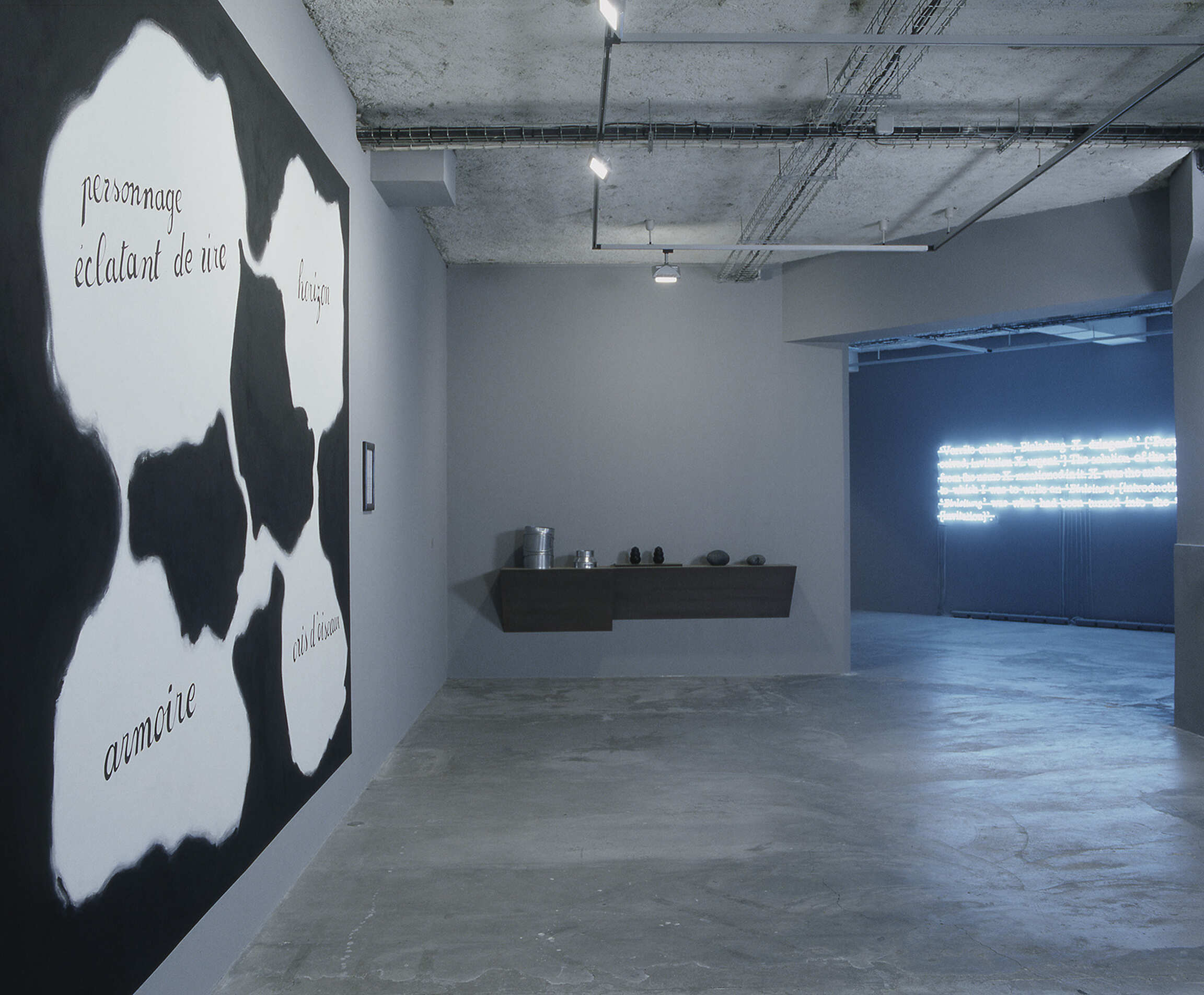 The exhibition ‘Matter, Grey’, consists of works chosen by Joseph Kosuth, that, as he has said, "represent a kind of ‘neuron’ within artistic practice." He is proposing as a chamber of discourse the brain cell as a kind of example - in contrast to the white matter which connect the brain cells. The exhibition title suggests a collection of levels, with the desired intention itself of putting the interface of meaning into play. ‘Matter, Grey’ offers as part of its projection the fact that it consists of works which are primarily achromatic, and as well, works which directly reflect the brain (and all, of course, engage the mind). Kosuth also sees the grey of the shadow cast by René Magritte's particular Modernity as an aspect which now colors what recent art practice has to say.