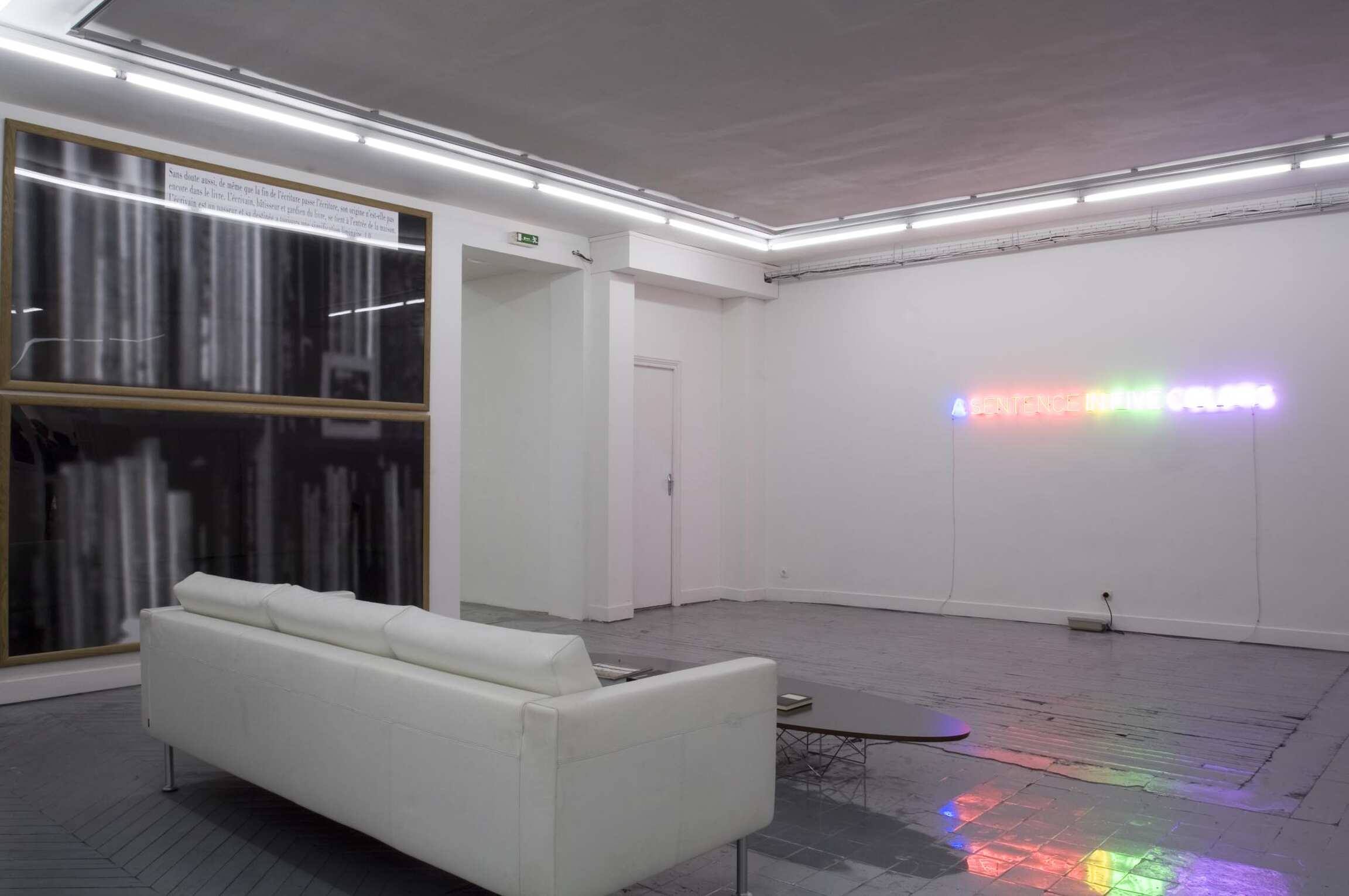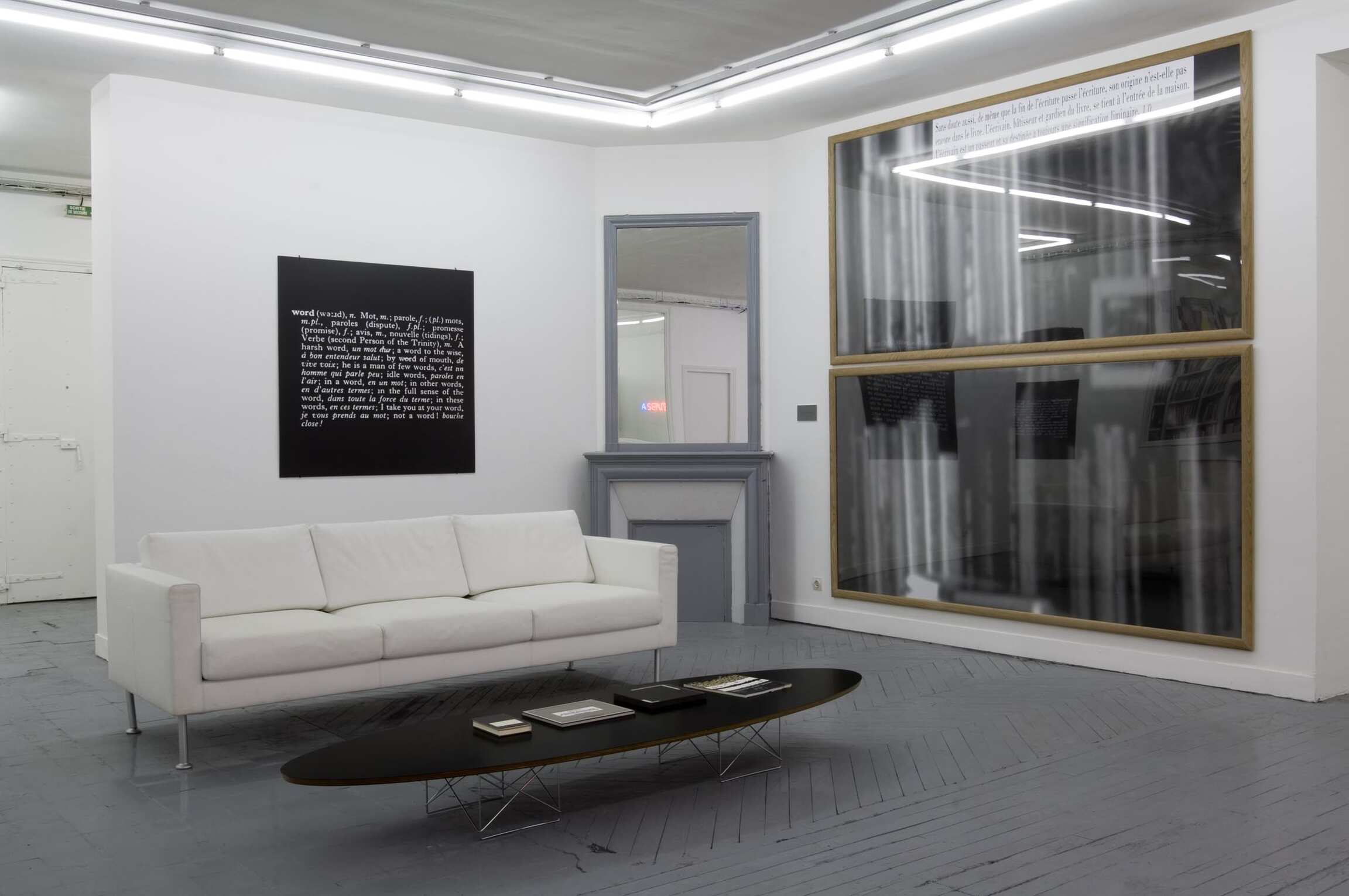 For his installation in Paris Joseph Kosuth embarks on a completely new work, a total environment of texts but in a quite new departure within his recent activities. The form of his installation utilizes references to important early works such as ' The Information Room' (1969) which was seen this year in Art Unlimited in Basel. For the present work a sea of text is put into play in conjuction with the libraries and quotations of leading 20th century philosophers which provide the kinds of meanings that are characteristic of Kosuth's concerns as an artist. One of the two features of this new installation is comprised of works on glass and illuminated by warm white neon, with the other element being a floor component that establishes an horizon of language which contextualizes the wall installation. Joseph Kosuth, the artist that originated the use of text as a readymade more than forty years ago, has offered as a key to this work the following quote from Michel Foucault, written just shortly after the time when Kosuth initiated a practice of art since called Conceptual: 'Dreams are no longer summoned with closed eyes, but in reading; and a true image is now a product of learning: it derives from words spoken in the past, exact recensions, the amassing of minute facts, monuments reduced to infinitesimal fragments, and the reproductions of reproductions. In the modern experience, these elements contain the power of the impossible. Only the assiduous clamor created by repetition can transmit to us what only happened once. The imaginary is not formed in opposition to reality as its denial or compensation; it grows among signs, from book to book, in the interstice of repetitions and commentaries; it is born and takes shape in the interval between books. It is a phenomenon of the library’.