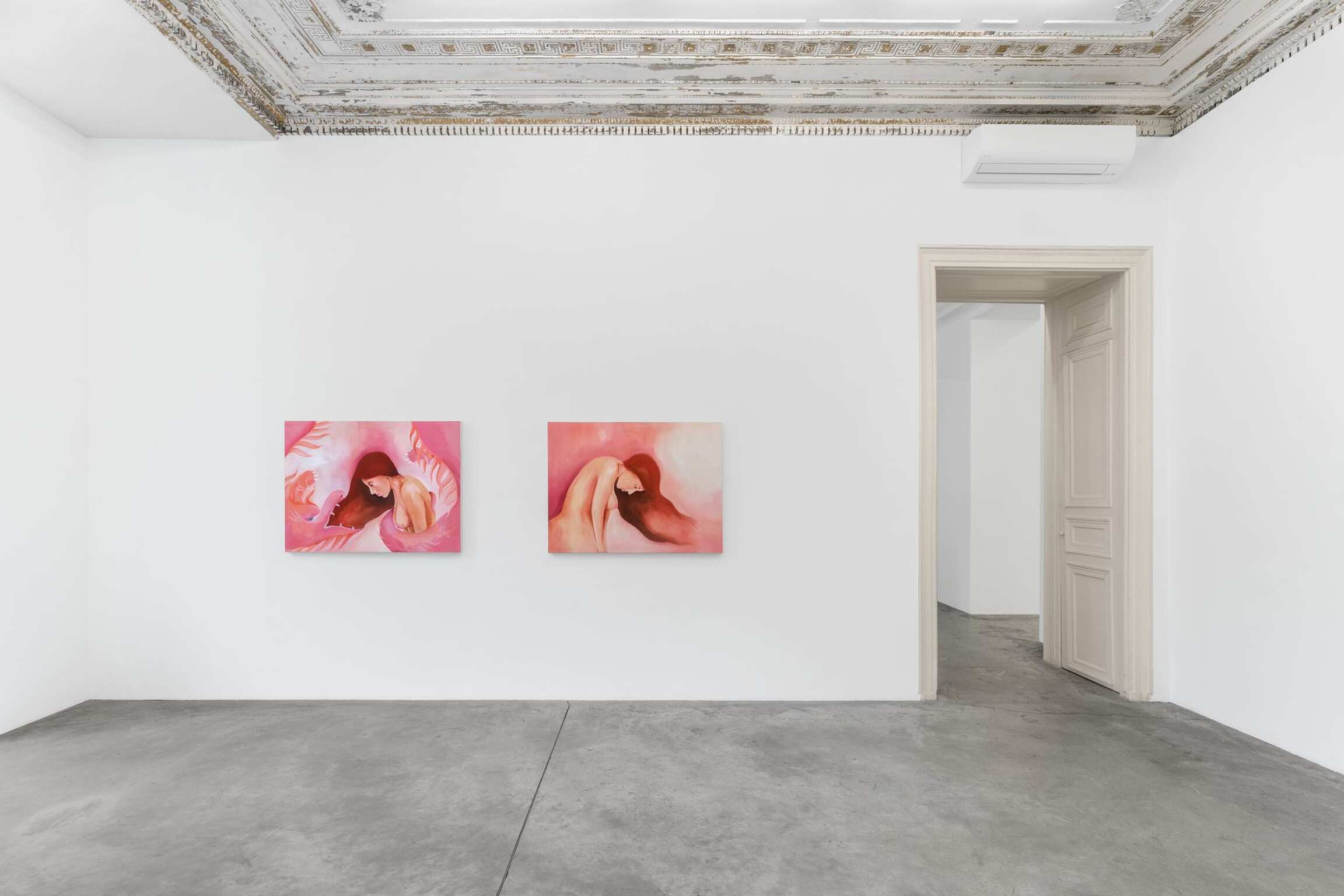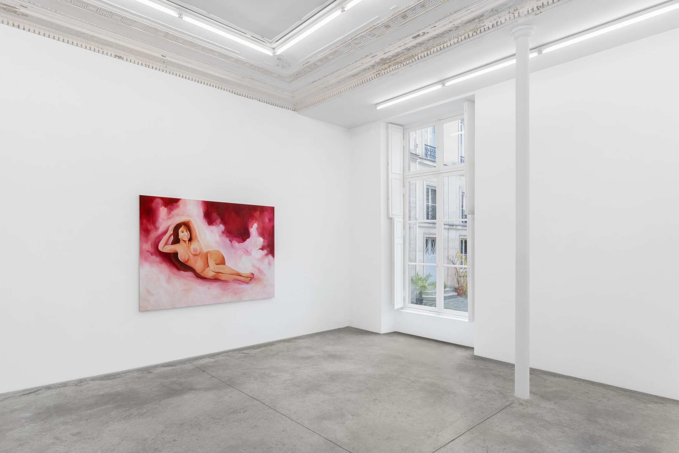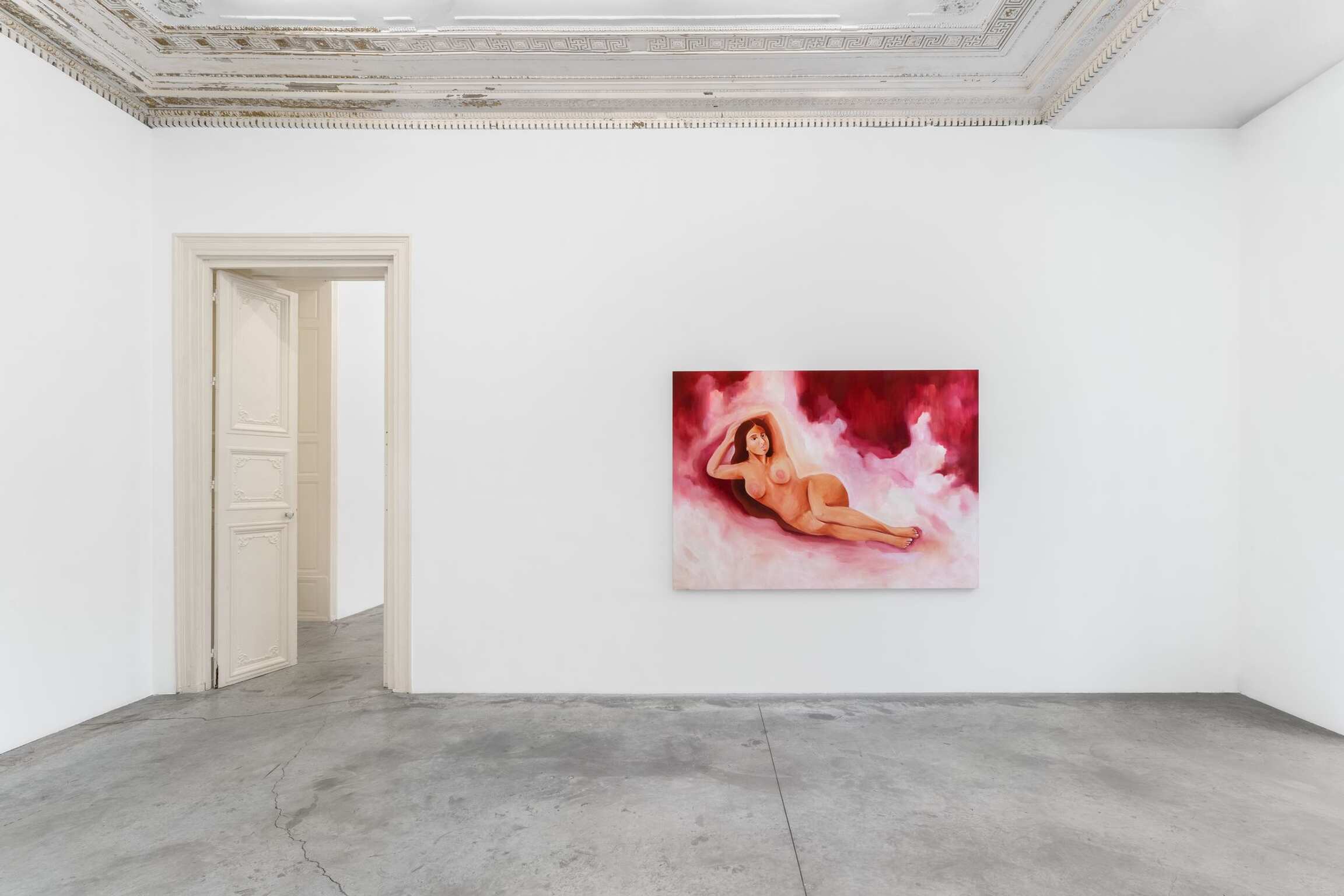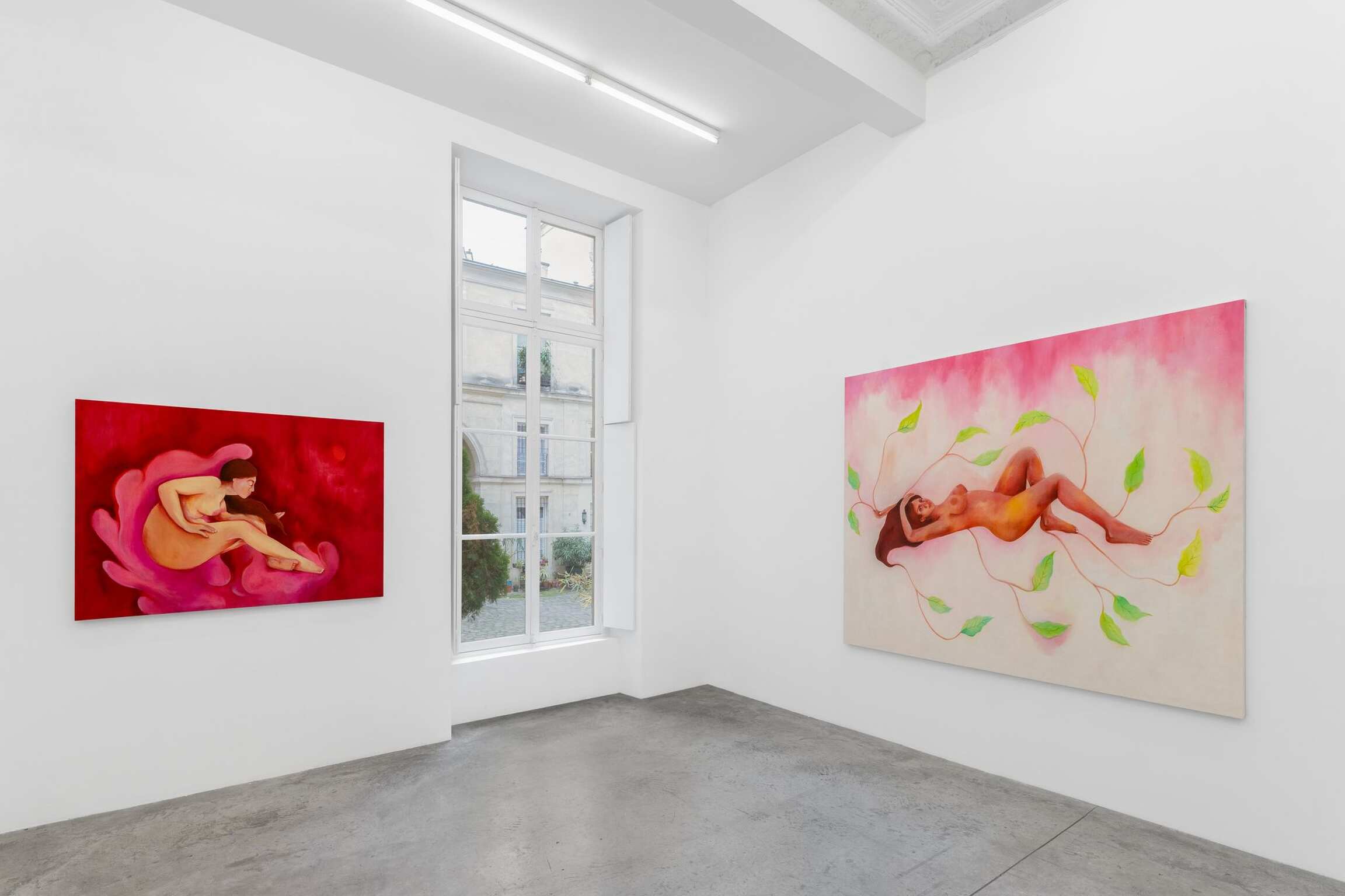 C’est là que tout le « féminisme » de Hiba Schahbaz trouve en somme à se matérialiser ; au carrefour d’un travail presque subliminal sur la figure et ses réincarnations, travail dans lequel l’artiste projette son propre corps, sans pruderie feinte, à travers celui de femmes « sacrées » ; maintes fois réappropriées par la culture postmoderne picturale, cinématographique et littéraire, mais qui gardent un pouvoir universel. Des figures mobilisatrices d’une abondante lignée de femmes résilientes, révolutionnaires mais aussi unificatrices. Au-delà de son propre corps, celle qui peint et se voit dans le miroir (son propre modèle mais aussi son point de contact avec la terre et son territoire d’exploration) peint aussi mille autre figures de femmes anonymes et « sans histoire » qui entrent ainsi, sans frapper, dans la peinture et dans ses histoires intérieures, ses élucubrations : ce qui s’invente et celles qui s’invitent lorsque Schahbaz s’adonne à de longues heures et journées de peinture, sont autant de portes d’entrée vers un mouvement introspectif – une sorte de recentrement mental et corporel d’où les poses non seulement sensuelles mais également méditatives et gymnastiques du personnage peint par Schahbaz.