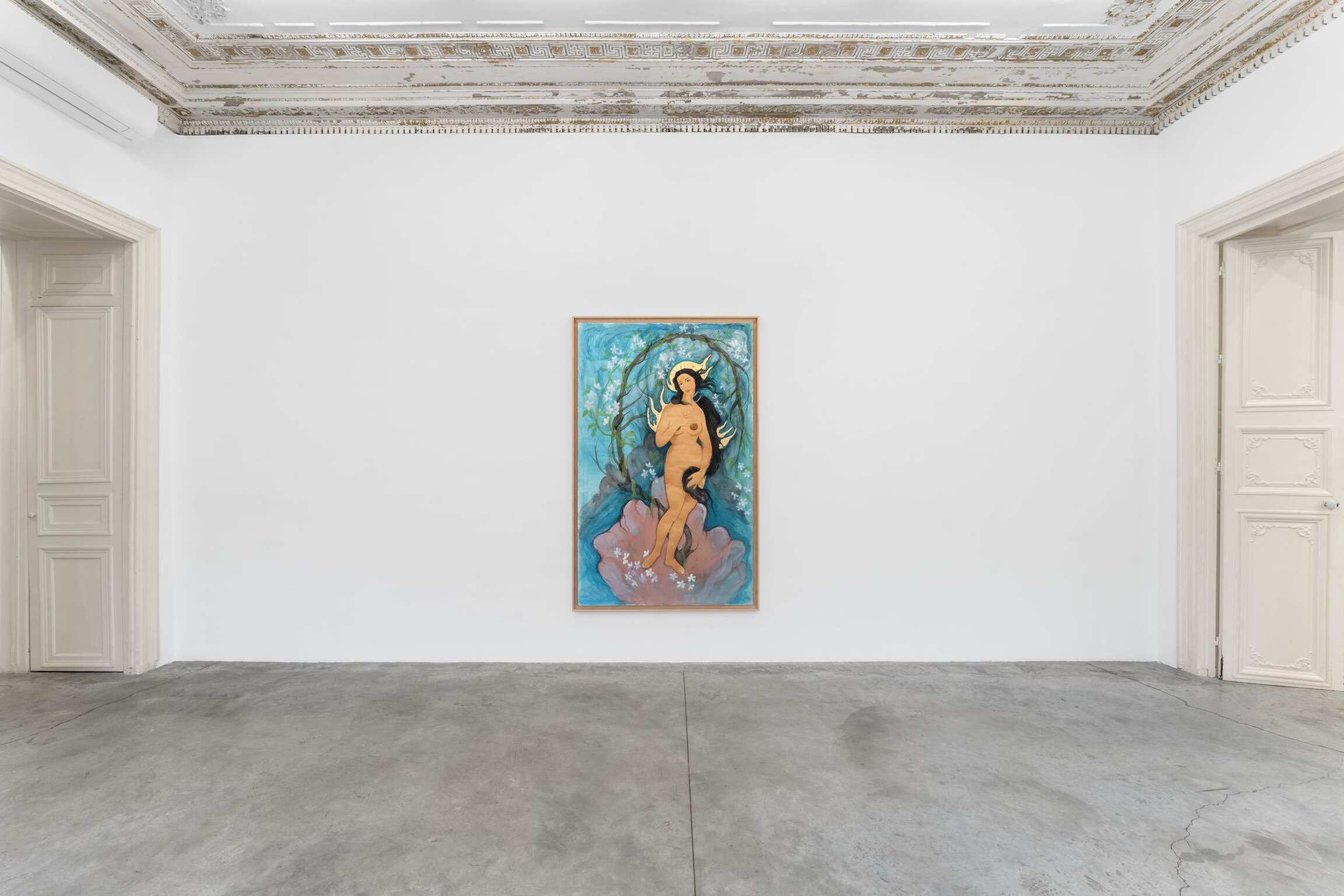 Cette force syncrétique du travail de la figure chez Hiba Schahbaz ne peut et ne doit se confondre uniquement dans le postmodernisme et les grands vases communicants de la culture contemporaine. Elle doit nous faire souvenir que déjà dans les manuscrits du Baharistan (le Jardin du printemps), œuvre du poète mystique Jami à la fin du 16e siècle (Lahore), illustrés par l’artiste Basawan, le raffinement de la miniature mongole (par-delà les influences iraniennes et pakistanaises), résident justement dans cette coexistence de religion hindoue, d’iconographie chrétienne et de sources zoroastriennes. Cette tradition iconographique indo-européenne qui survit quelque part à travers l’art de Hiba Schahbazi, signe d’une mondialisation avant la lettre, trouve justement un de ses plus beaux vecteurs, dans le mythe du Printemps. Celui-ci doit sa réincarnation presque effrontée, sous les traits de Hiba Schahbaz, en Vénus de Botticelli ; la peintre contemporaine s’invitant physiquement dans une lignée de figure sacrées – des icônes de l’art occidental – non seulement Vénus (ou Aphrodite), mais également le dieu Zéphyr et la déesse Flore (qui entourent Vénus dans la peinture originale). Mais au-delà de l’icône et du symbole – sans doute le nu le plus connu de l’histoire de l’art – c’est tout un voyage naturaliste et mystique, sur la route des voies détournées entre amour sacré (divin) et amour profane (terrestre) que manifeste ce retour à la mythologie de la Grèce antique. Là encore Hiba Schhabaz nous invite sur la route effrénée du désir comme forme de pure connaissance de Soi et du monde, à l’épreuve de ses rencontres les plus épanouissantes et les plus déroutantes.