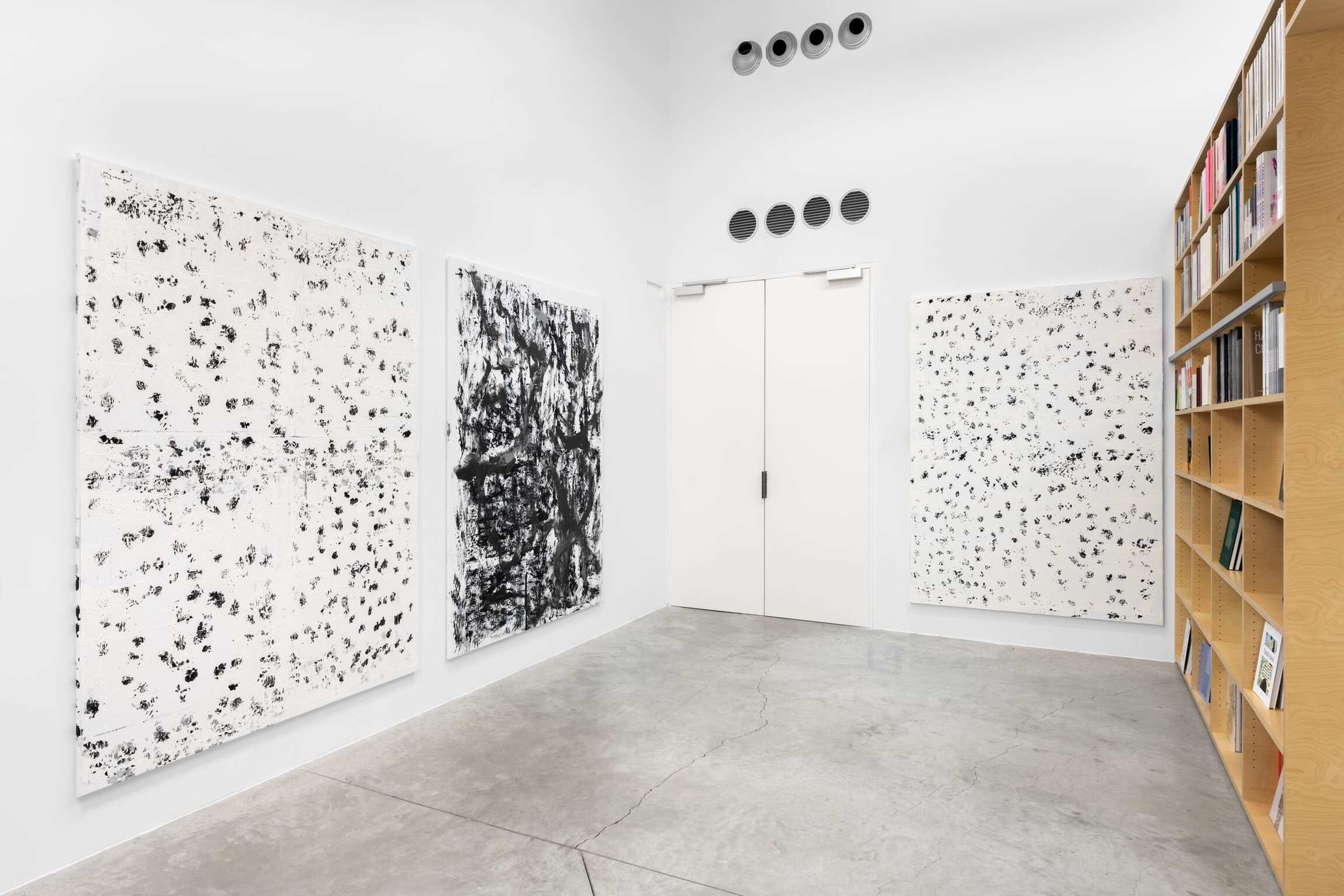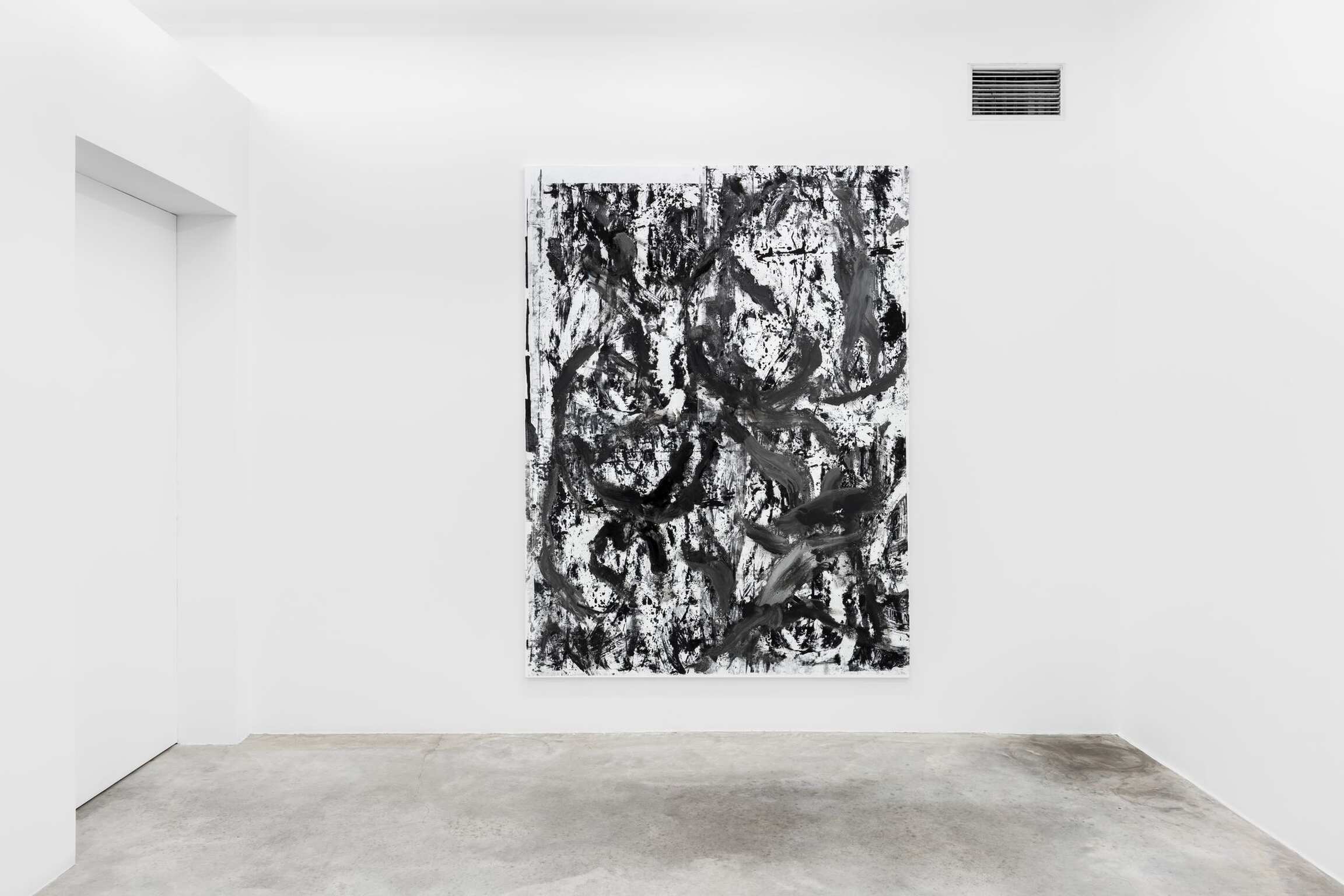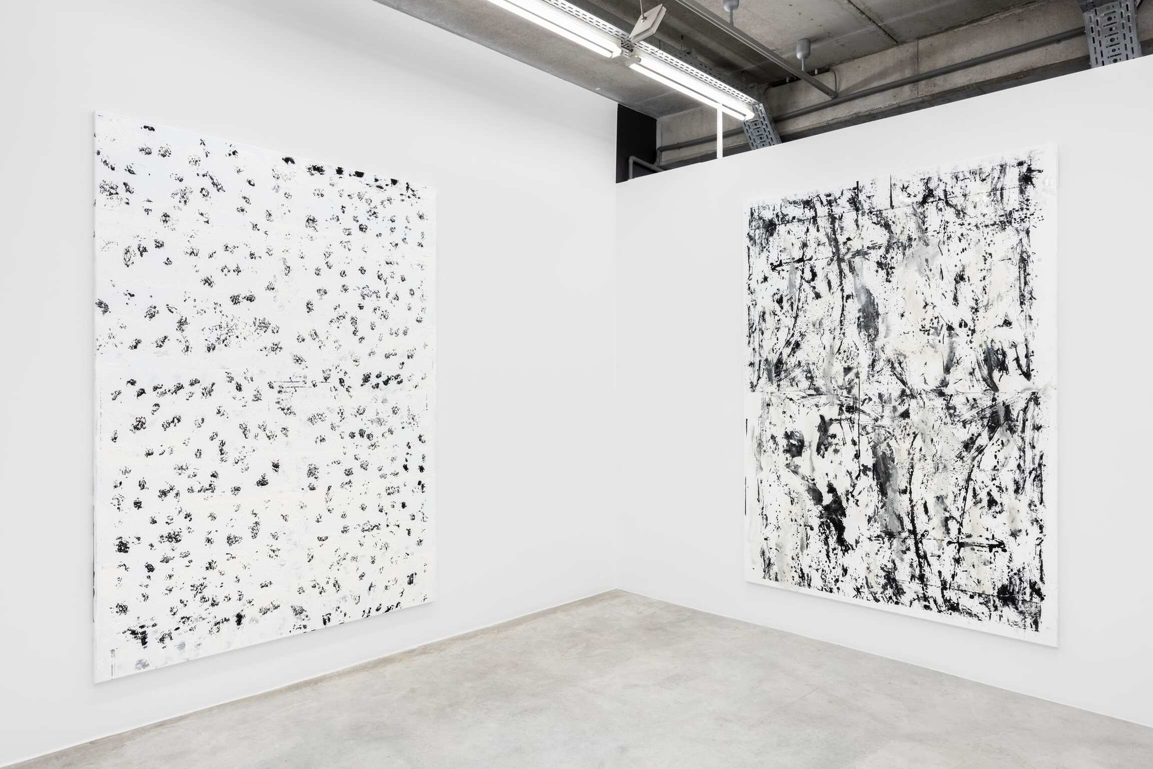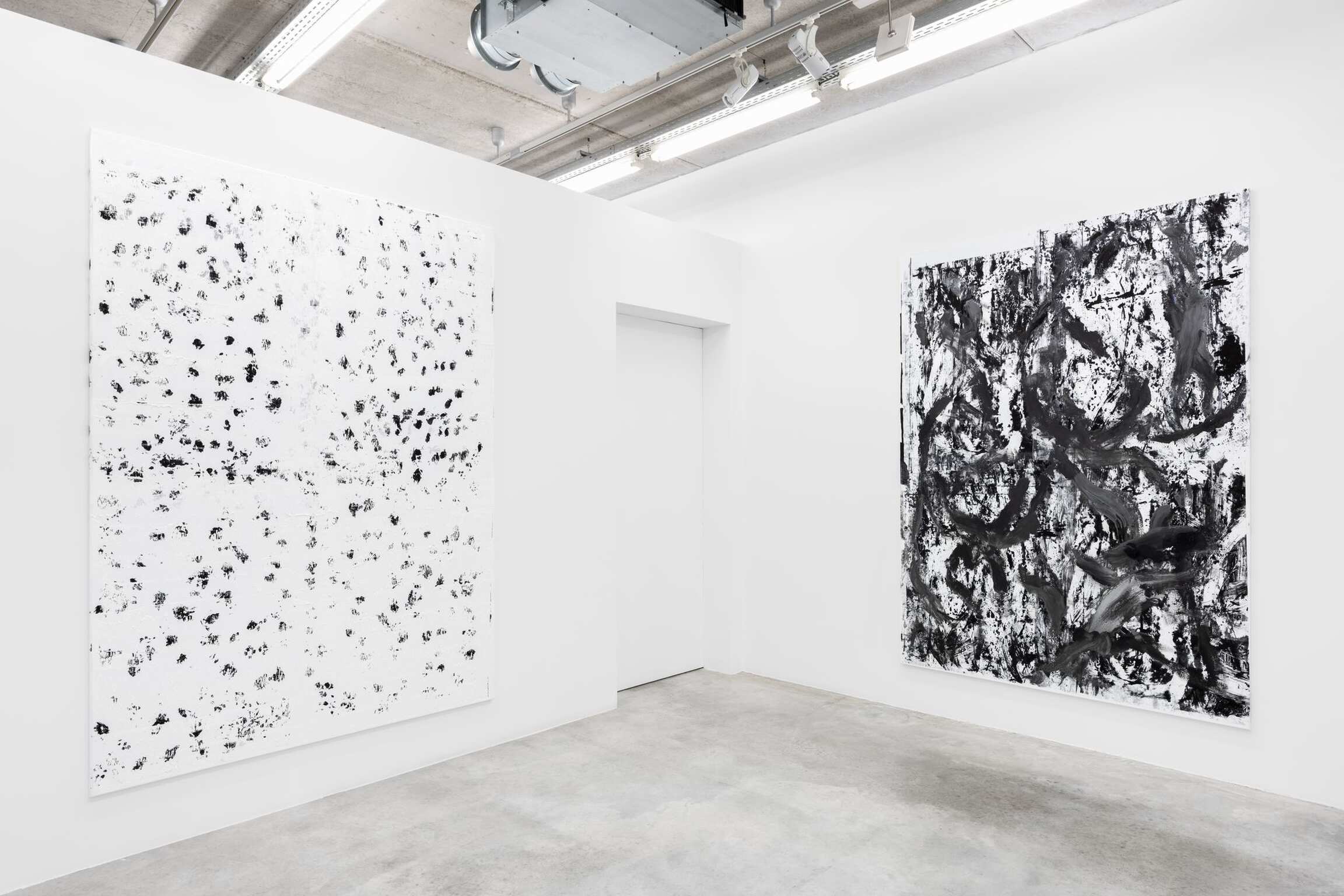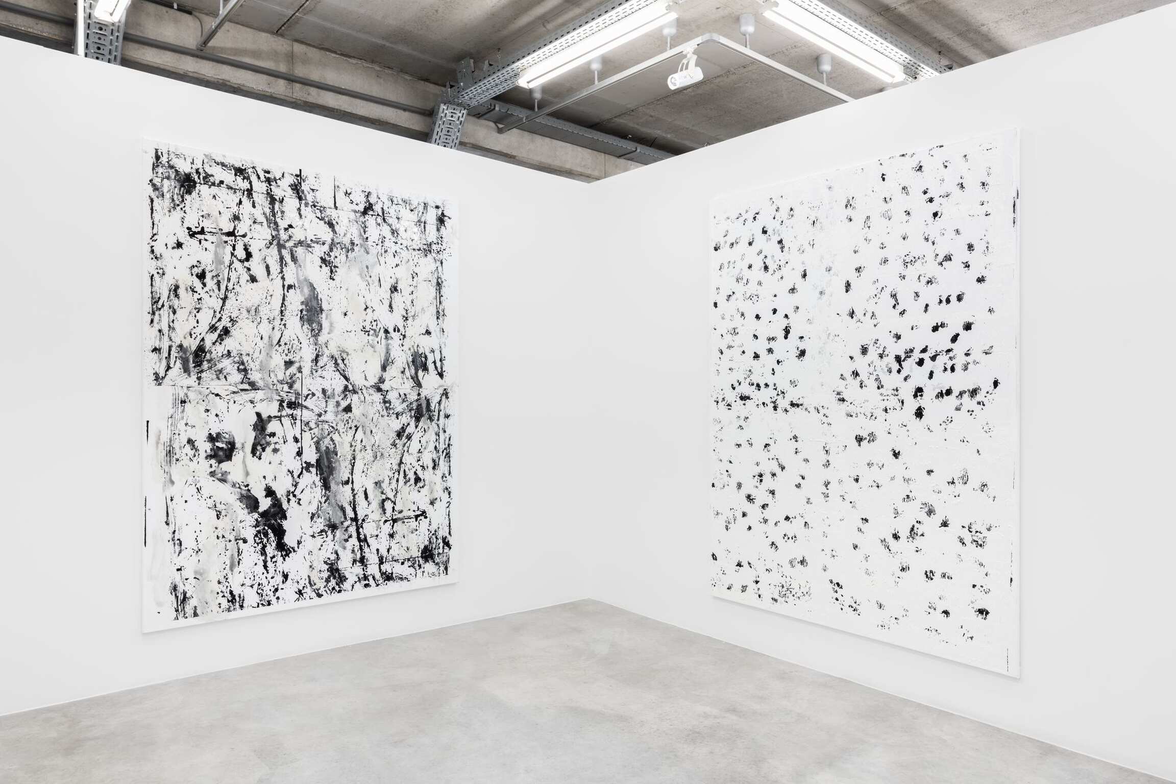 German artist Chris Succo works in a variety of materials and processes, creating paintings made by spray painting lacquer and oil on canvas using a minimalist palette largely comprised of matte black and white. Succo’s ZigZag Paintings resemble writing or calligraphy, a characteristic that evinces the significant influences of poetry and music in his work. For one of his best known series, the White Paintings, the painting background is partially obscured by gestural layers of white oil paint, allowing flashes of colour to shine through. Creating also silkscreened collages on canvas or sculptures with mild steel, mesh, or boxing equipment, Succo writes a storyline from one work to another that shares a quest of individuality within the elements of expression and refinement of forms and techniques.