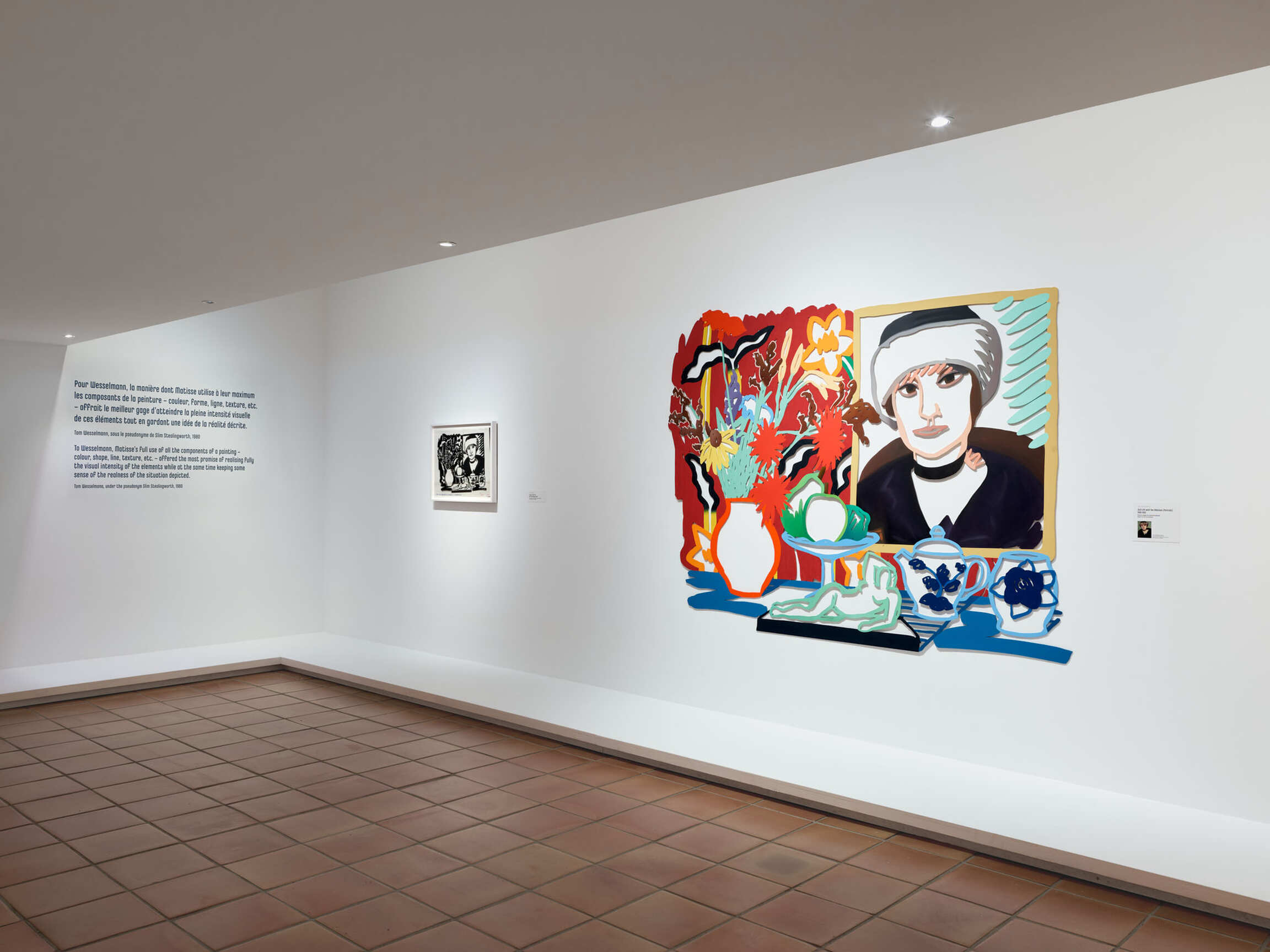 À travers une sélection de quarante et une œuvres, l’exposition Tom Wesselmann. After Matisse retrace cette admiration pour l’artiste qui s’exprime de multiples manières, de ses premiers collages en 1959, jusqu’à ses œuvres ultimes, avec les Sunset Nudes des années 2000. Elles témoignent de différents modes d’appropriation de l’œuvre de Matisse : travail d’après, citation directe ou plus structurellement, conception matissienne de la couleur et de la surface.