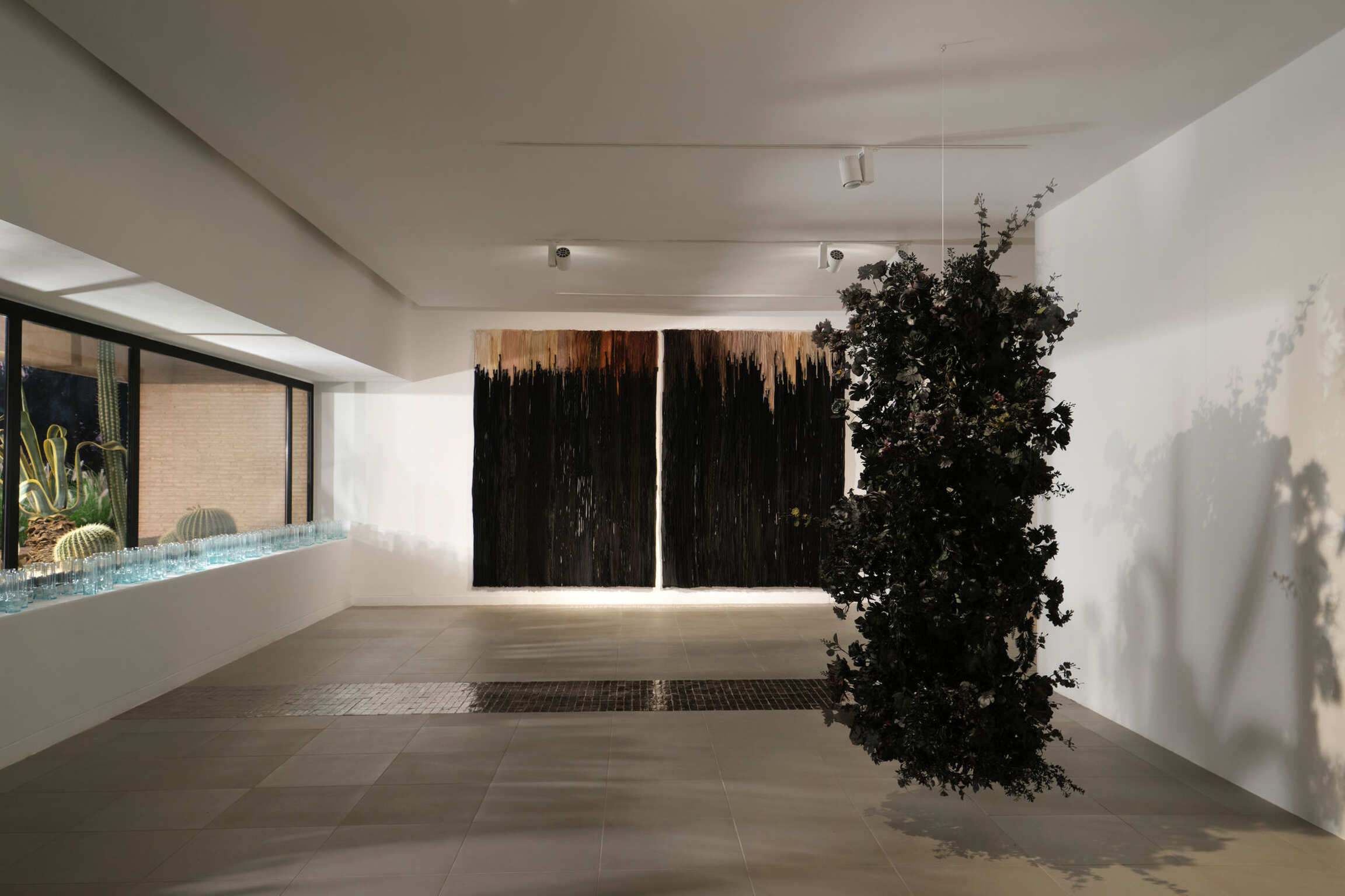 The exhibition’s title is a verse, a chanted poem as a mantra that speaks of origins and earth, evoking the infinite possibilities held within the material – raw material – that Joël Andrianomearisoa appropriates, reshapes, or reinvents.