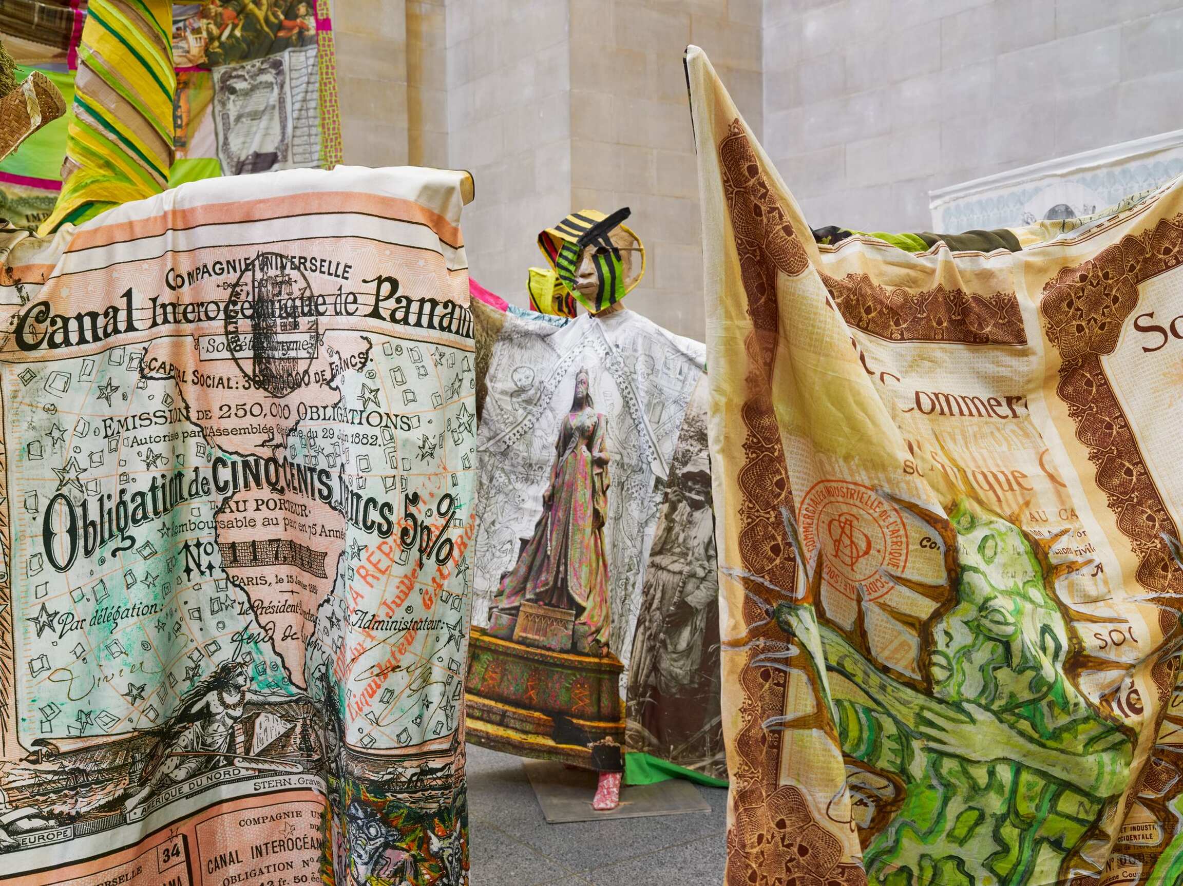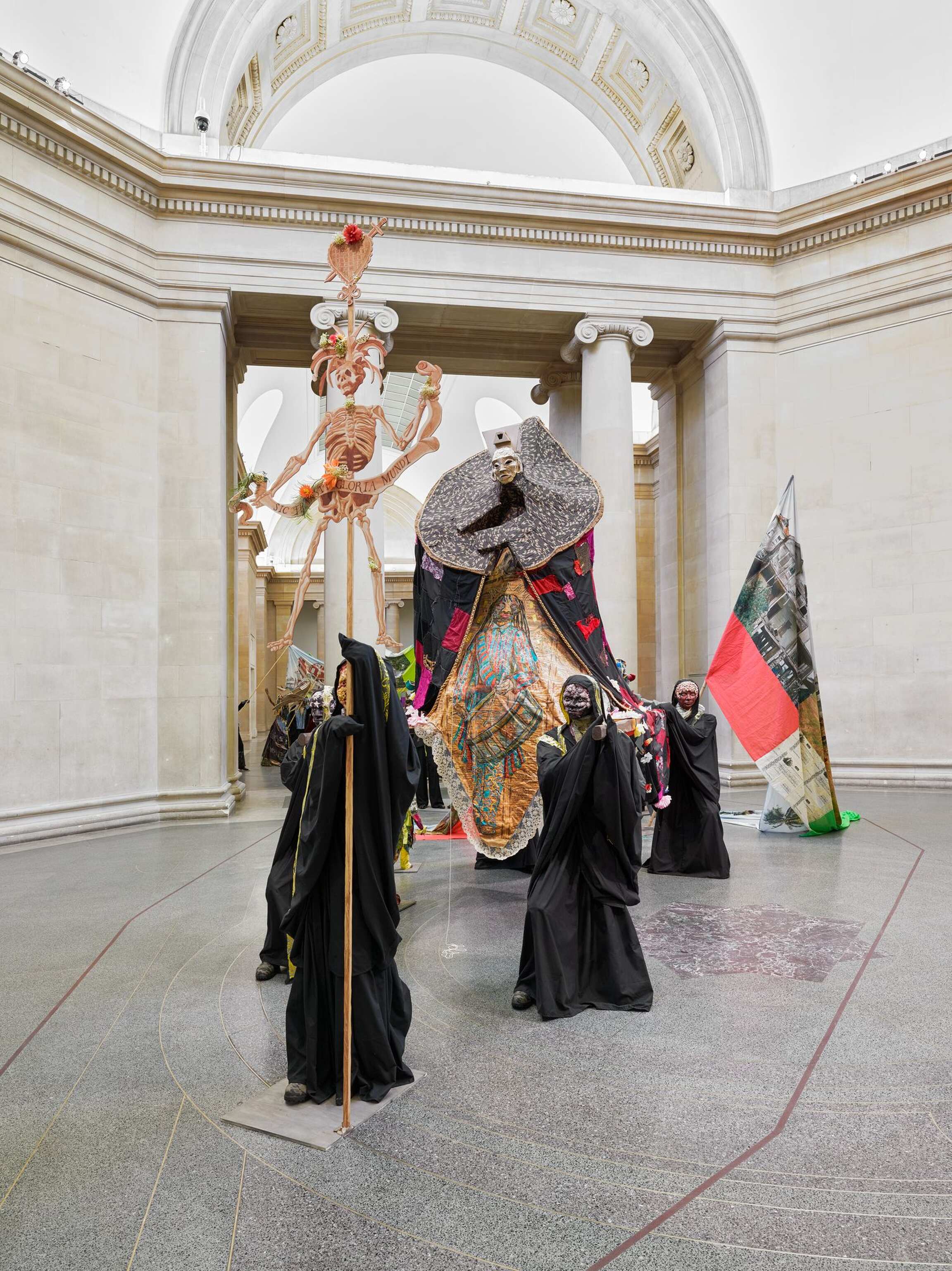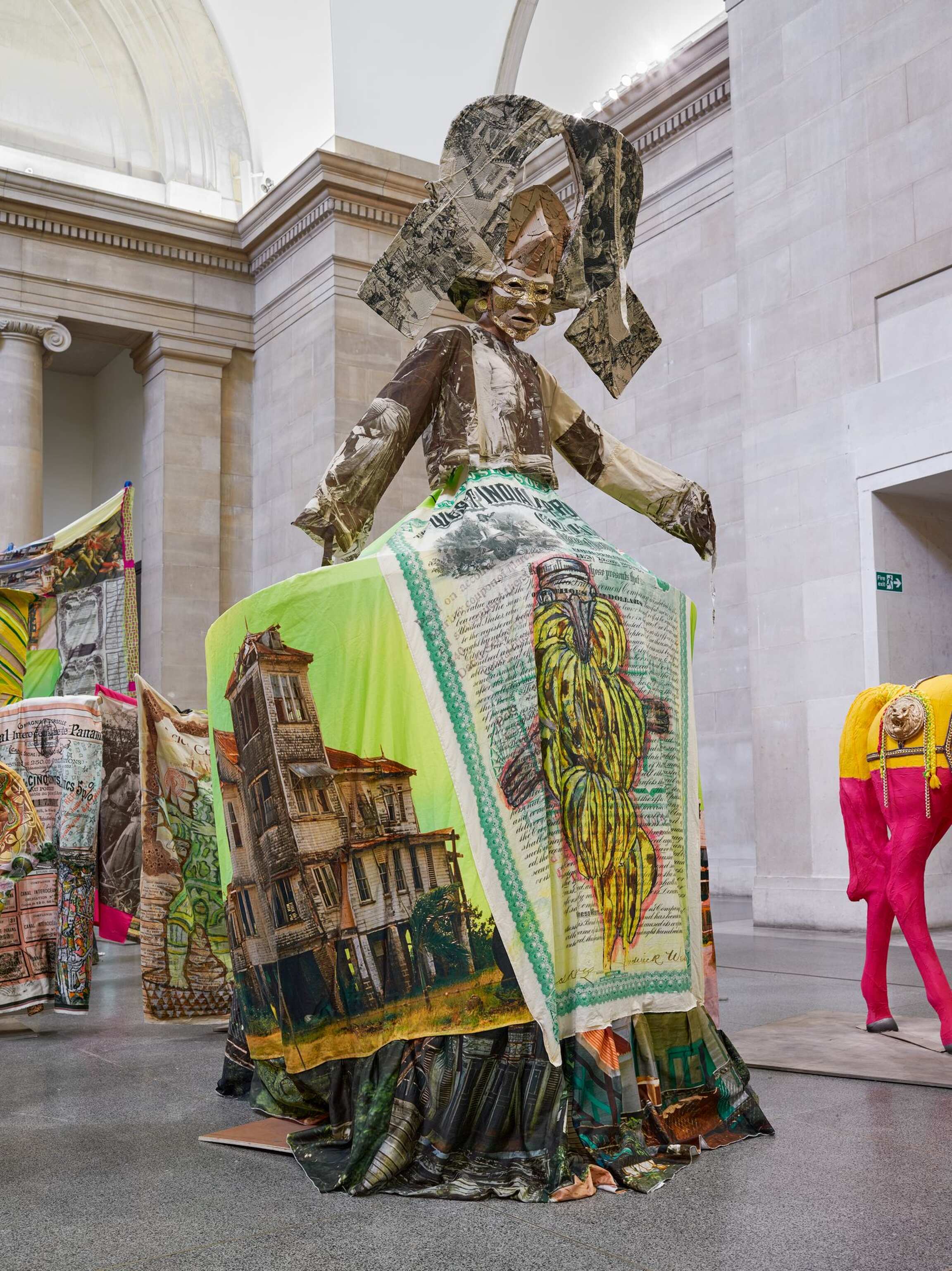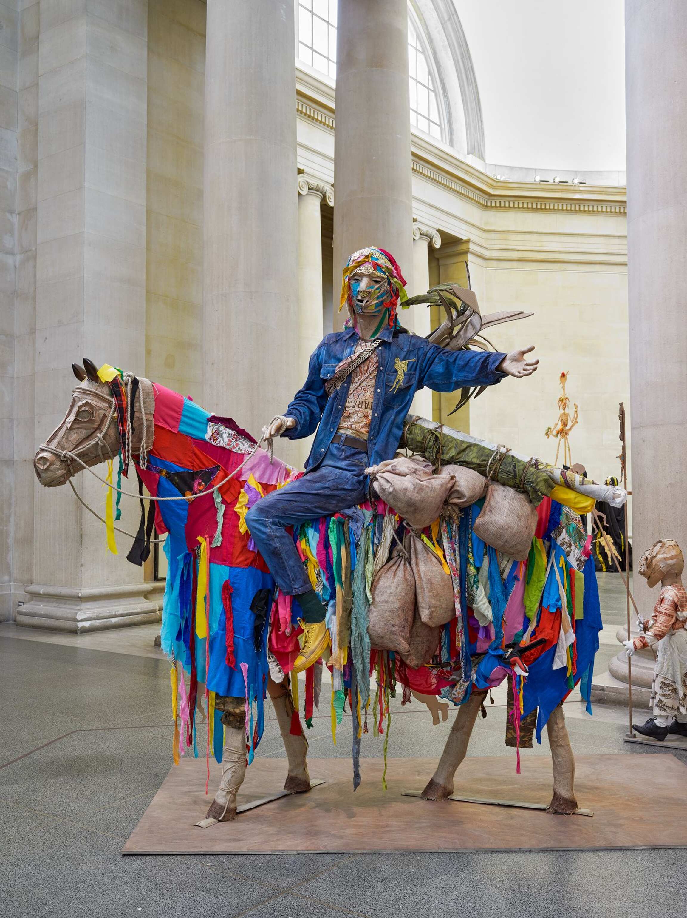 The Procession invites visitors to ‘reflect on the cycles of history, and the ebb and flow of cultures, people and finance and power.’ Tate Britain’s founder was art lover and sugar refining magnate Henry Tate. In the installation Locke says he ‘makes links with the historical after-effects of the sugar business, almost drawing out of the walls of the building,’ also revisiting his artistic journey so far, including for example work with statues, share certificates, cardboard, rising sea levels, Carnival and the military.