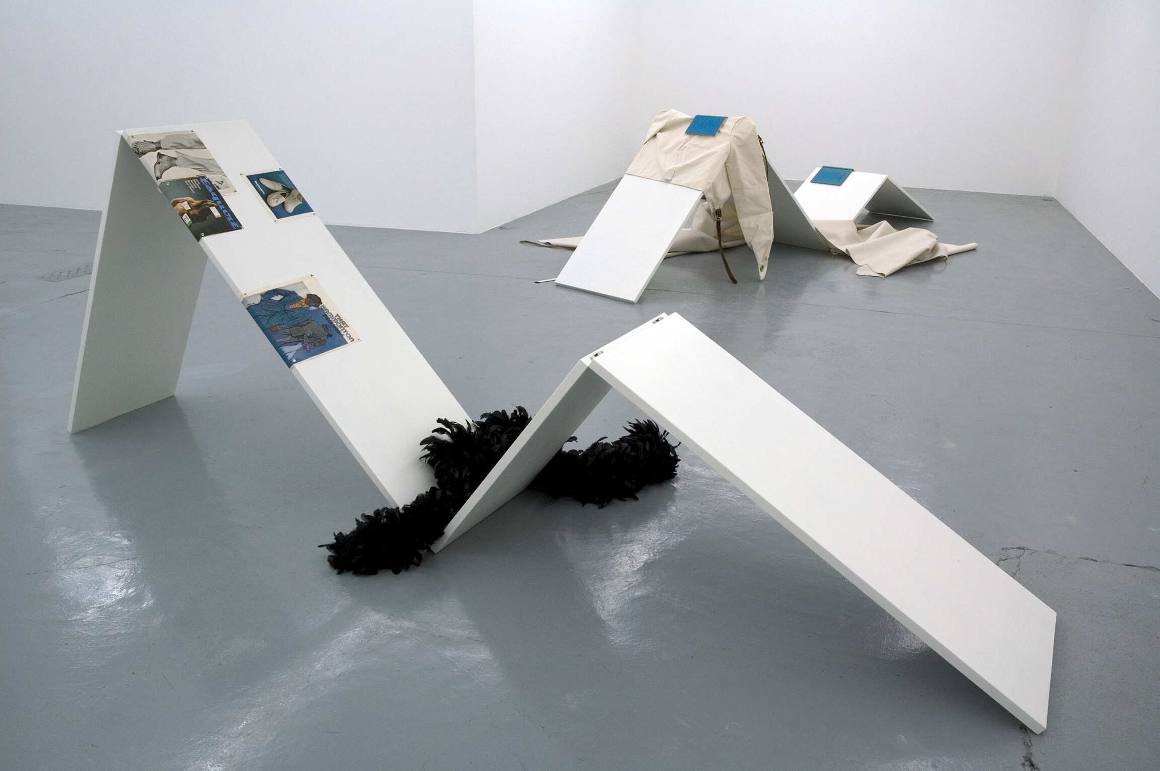 In Addict-Love, Tom Burr creates a set of abstract tableaux reflecting on modernity: its history, its personalities, and of course, its style. Burr ruminates on figures, moments, and the heady mises en scène that both gave rise to and were shaped by Modernism's powerful ideology. These groupings include elements that are further developments in Burr's repertory of forms. Burr describes his approach to the making of sculptural work as so many acts in a play, or stills in a film. This theatricality and his allegorical use of specific forms of the theater: platforms/stages, railings, curtains, lighting, mirrors, and personal articles that function as sculptural props suggest a history of modernism, and a history of sculpture, as a series of scripted gestures to be performed.