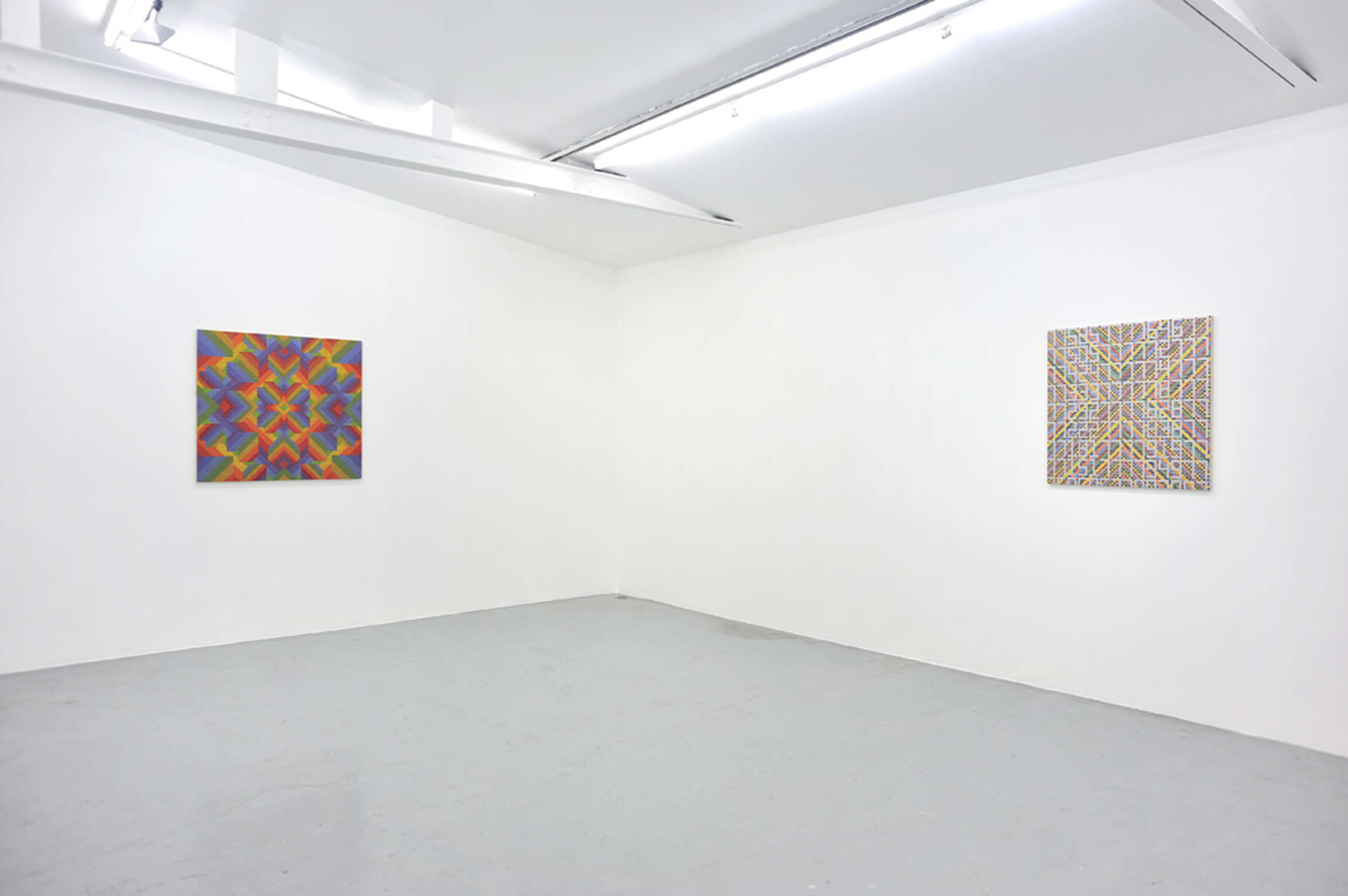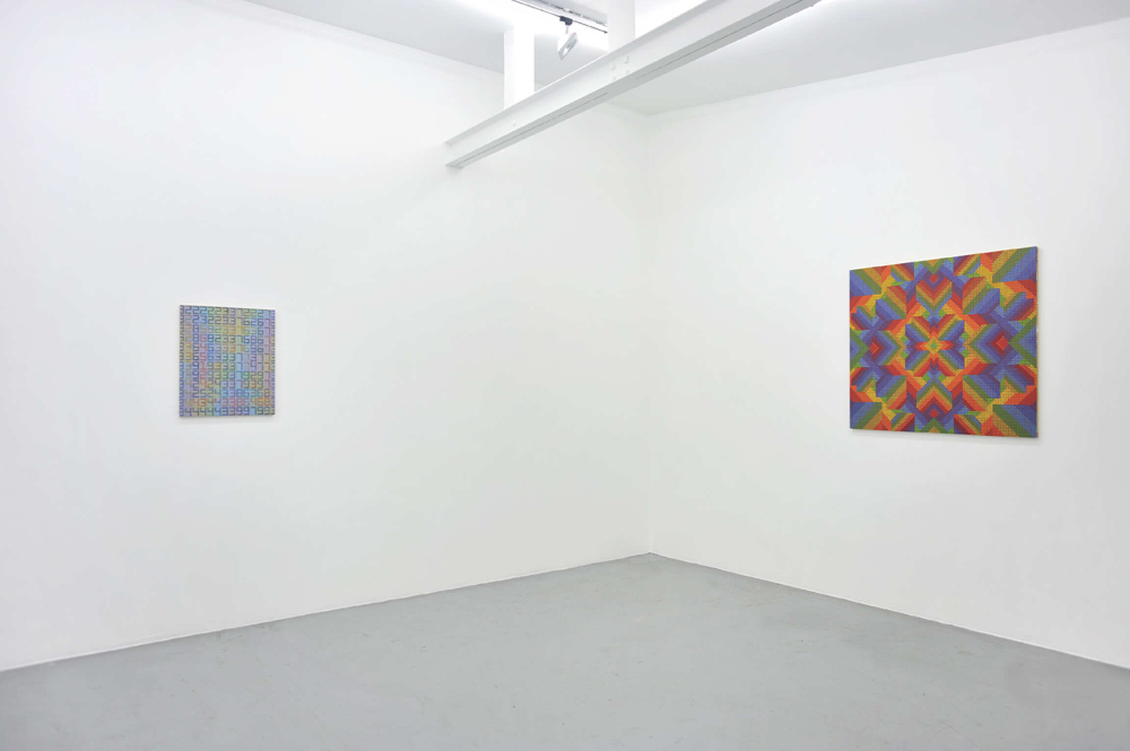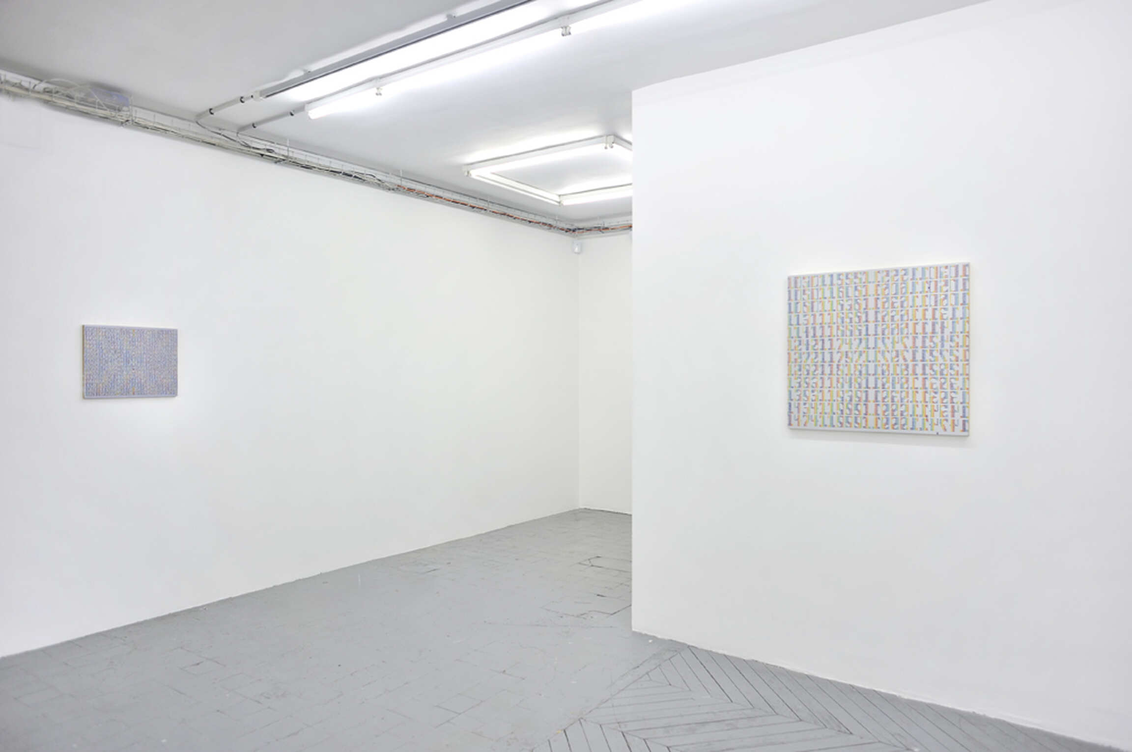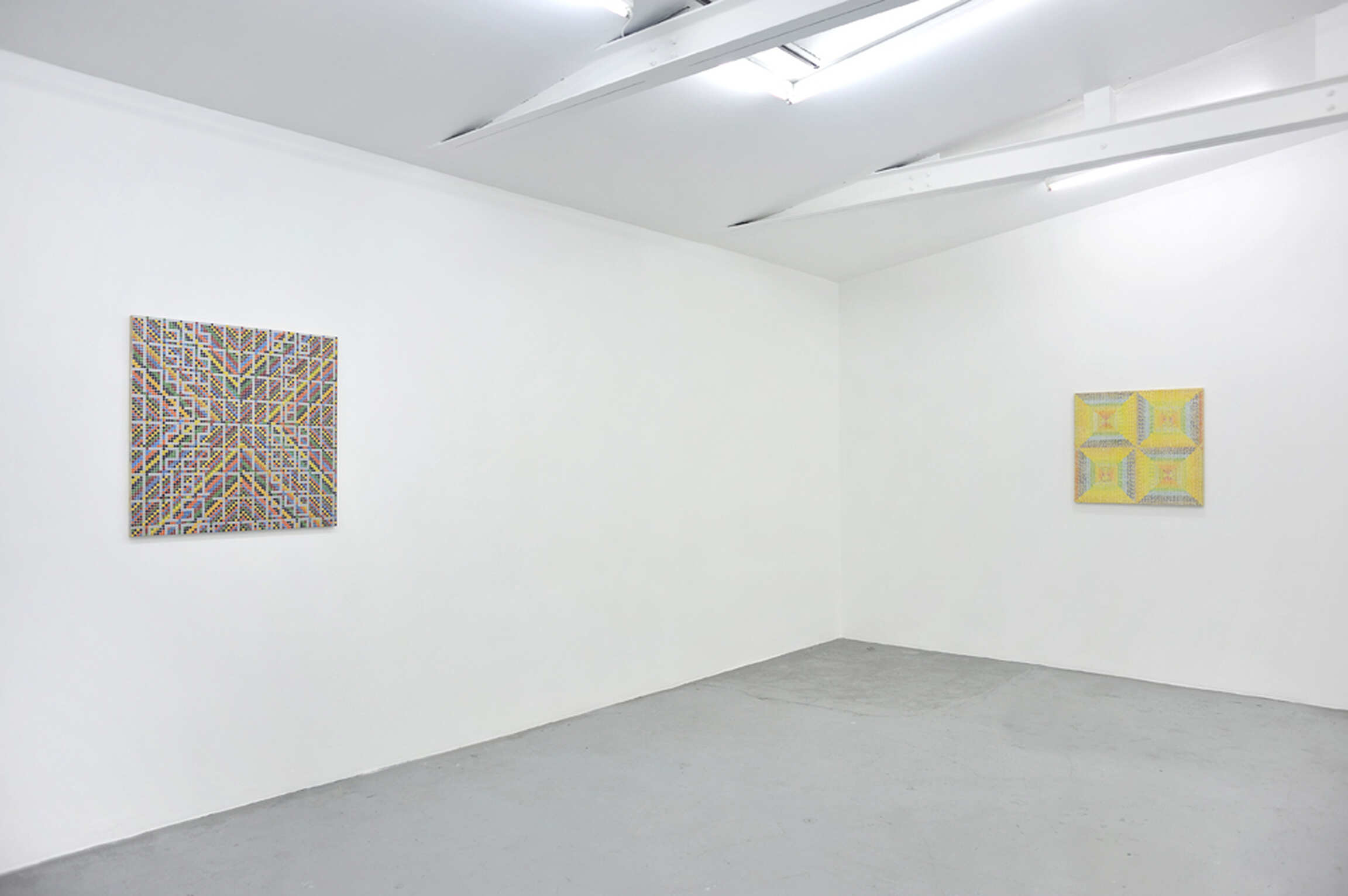 Almine rech Gallery is pleased to announce an exhibition by Massachusetts based painter Xylor Jane. Mathematics and the grid are at use by Ms. Jane to mark the passage of time in bold color and complicated rhythms. An overt investment in pattern drives the artist's paintings to a place where they fall from comprehension, and return to a visual tapestry of the absurd and sublime. Any notion that the idea creates the art is put to rest by the sheer madness of the machine. Unlike process artists like Sol Lewitt, the recipes at play in Ms Jane's work are for one cook only. The paintings remind one of the infinite project of Roman Opalka and the date works of On Kawara. The gridded paintings of Agnes Martin's softly patterned and colorfully hazy abstract vistas are also an apt comparison. The personal musings of the artist translate into veils of refined color stemming from a slightly manic preoccupation with measurement, symbolism and notation. For the viewer, wobbly and atmospheric patterns are both disconcerting and reassuring to gaze upon, because we are also part of Xylor Jane's vast vision of the world.