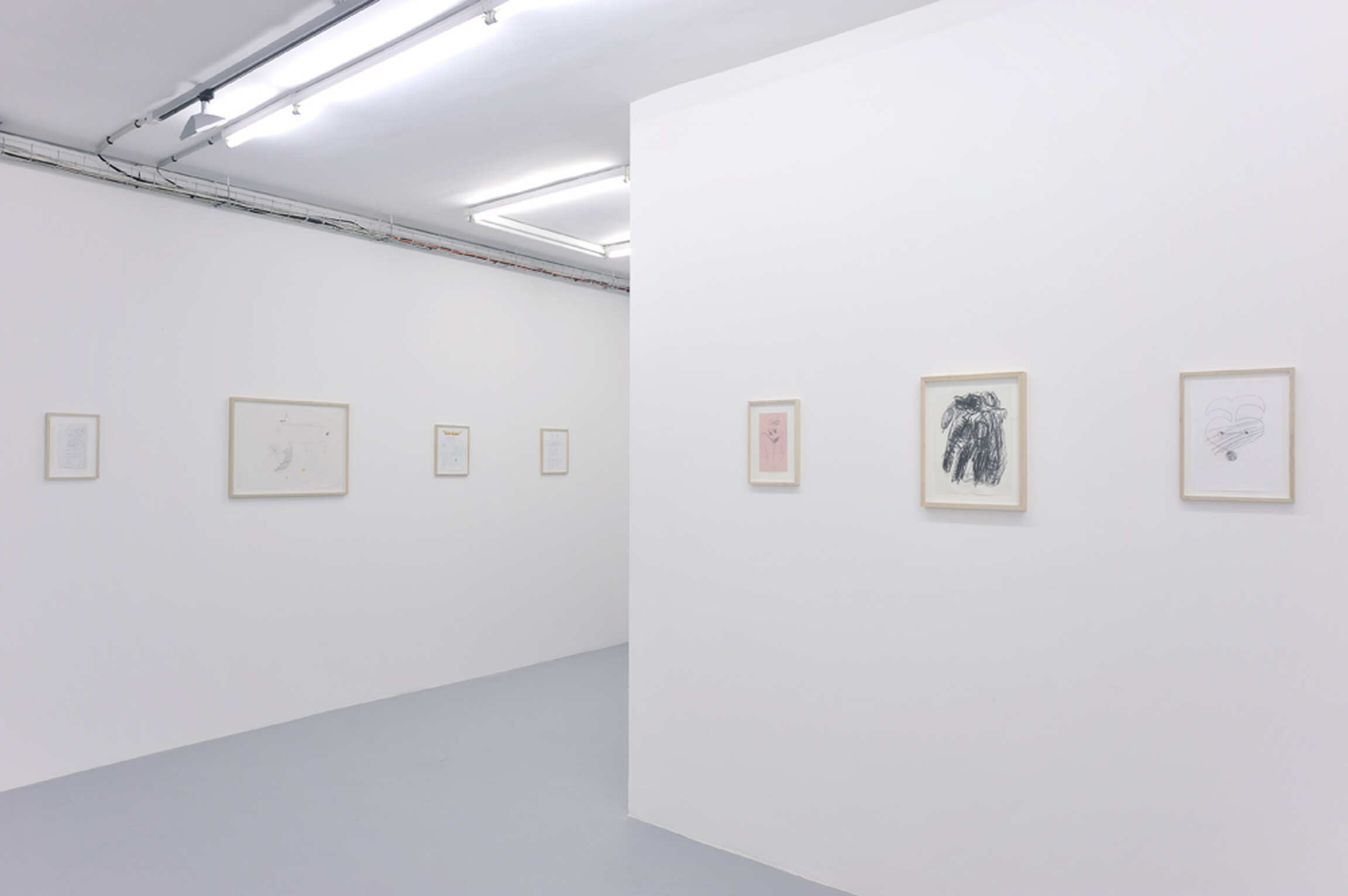Although it is sometimes difficult to uncover direct references to comics in Bradley’s recent paintings, this is a lot easier in his drawings on paper. It is a technique which the artist loves using and which plays a key role in his paintings. Following on his early interest in comics, he sometimes invites his friends’ children to work with him on some of his drawings, notably for a fanzine called Tuff Stuff.