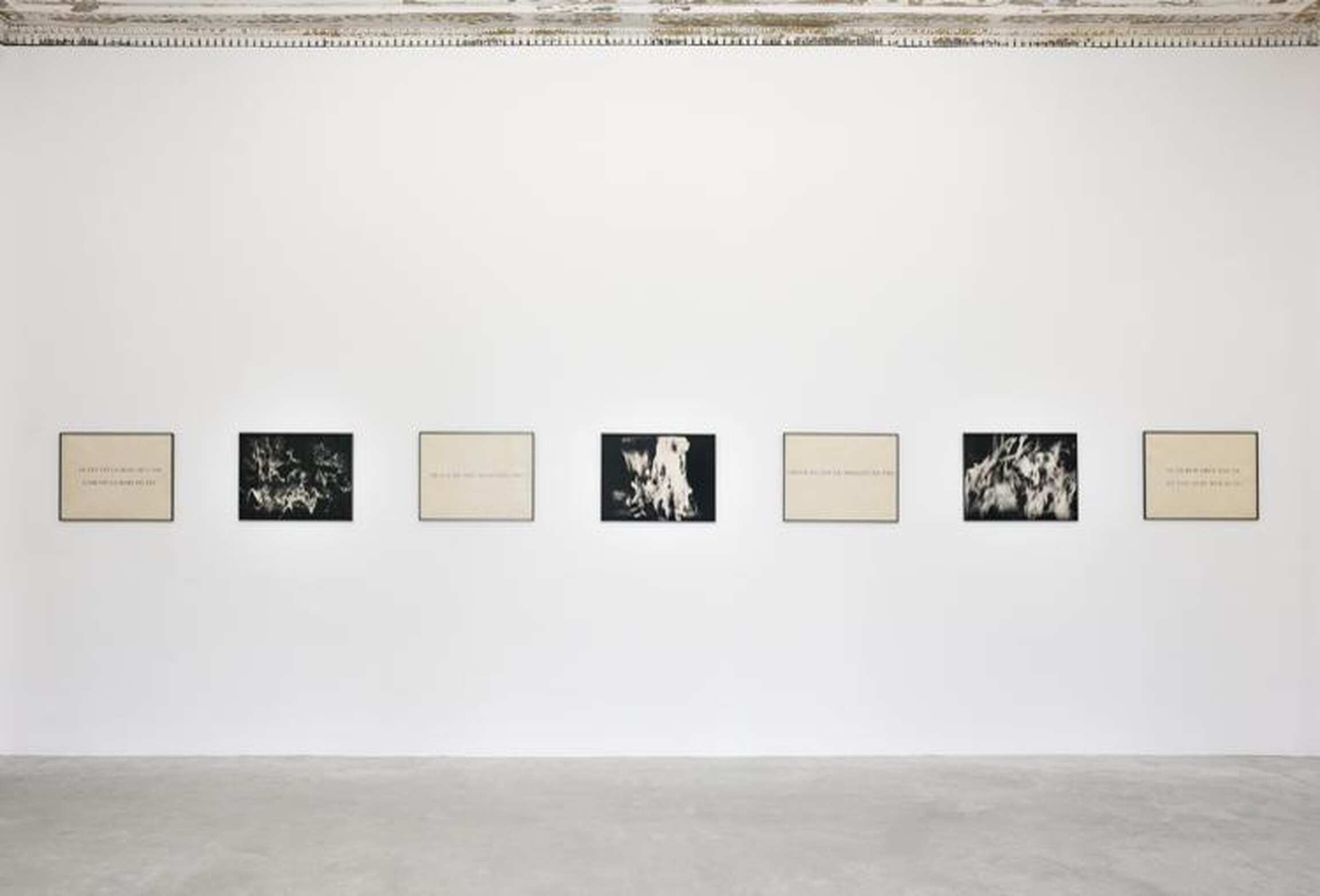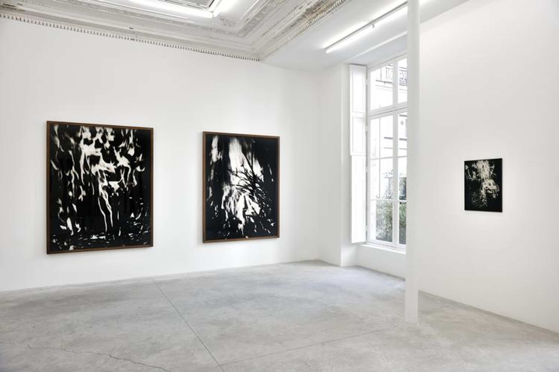 A partir de photographies qu’elle transforme par un procédé en plusieurs étapes, Beatrice Caracciolo réalise des gravures, des photogravures et des collages en noir et blanc sur le thème du feu. Il s’agit de la troisième étape de son travail dédié aux quatre éléments, qu’elle montrera pour la première fois dans son intégralité. Cette série succède à celle sur la Terre, présentée en 2012 à la Galerie Almine Rech et à celle sur l’Eau présentée la même année au Château de Haroué (France).