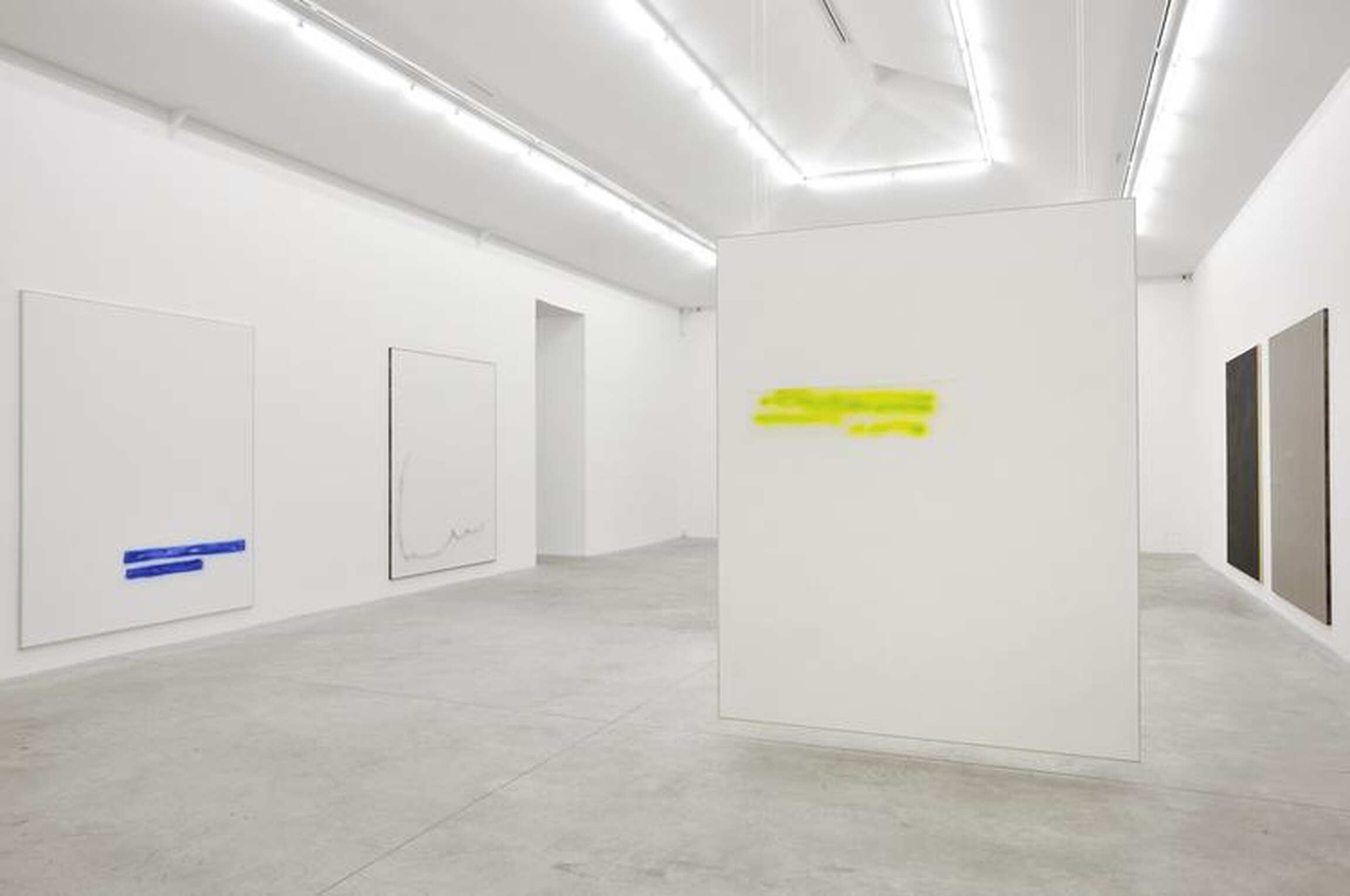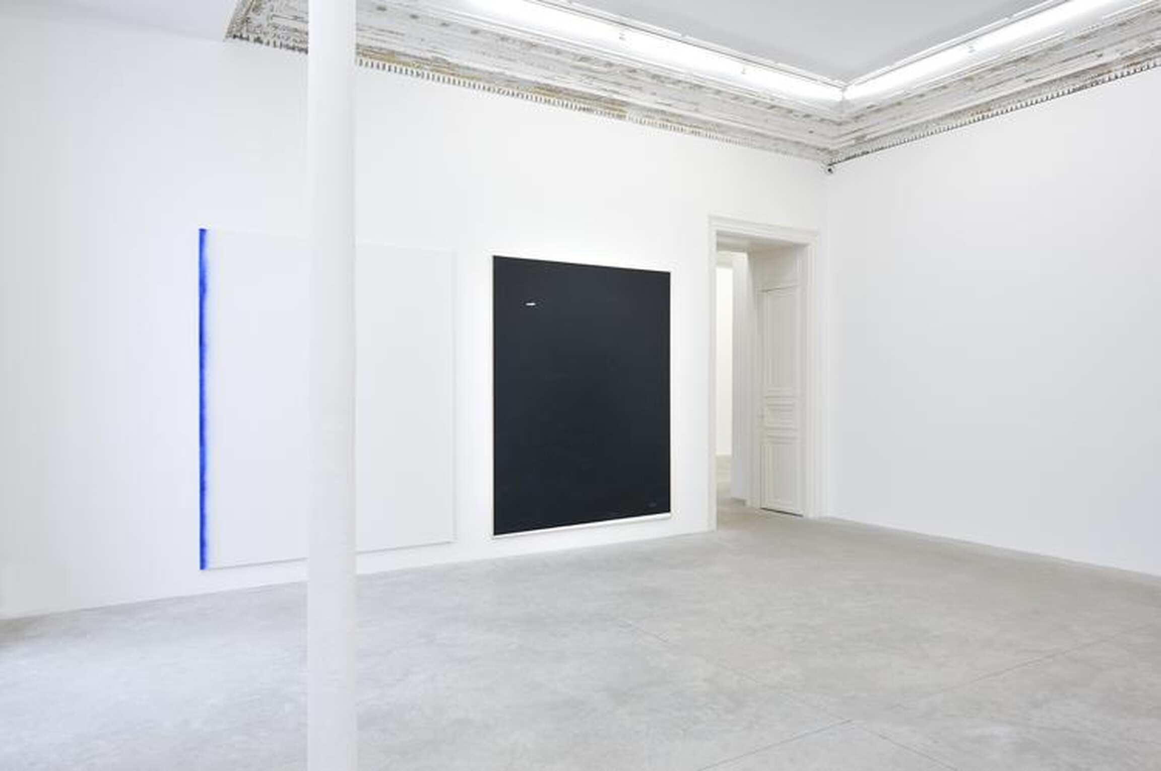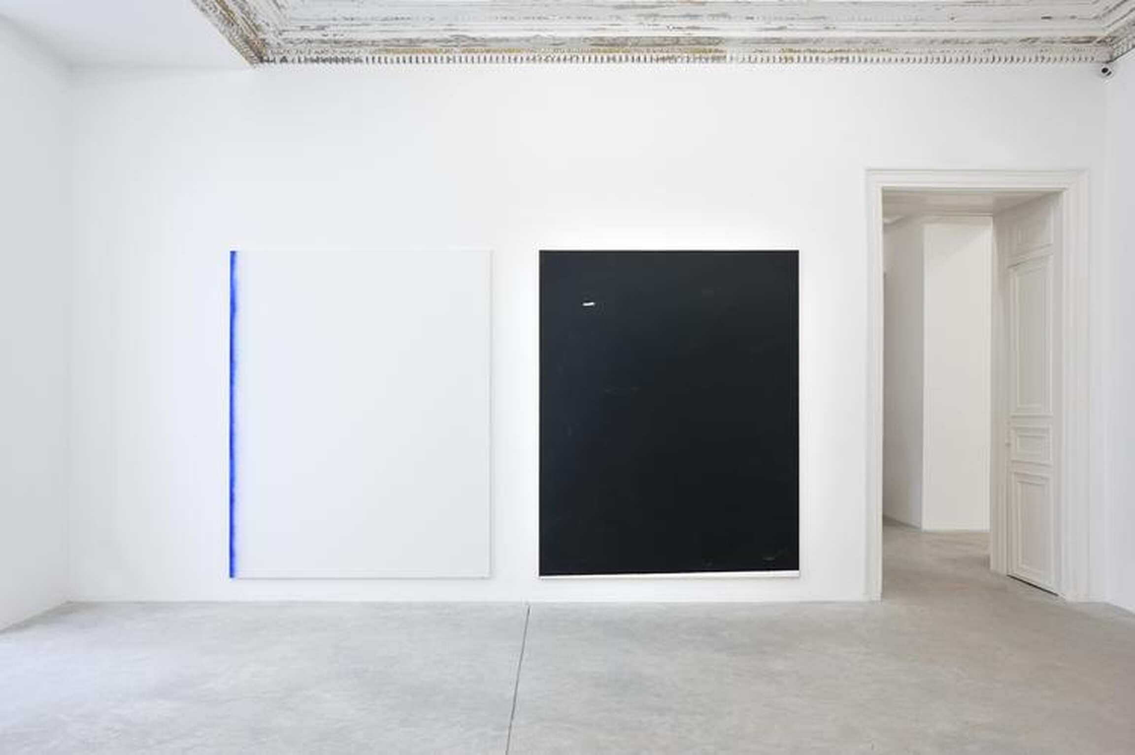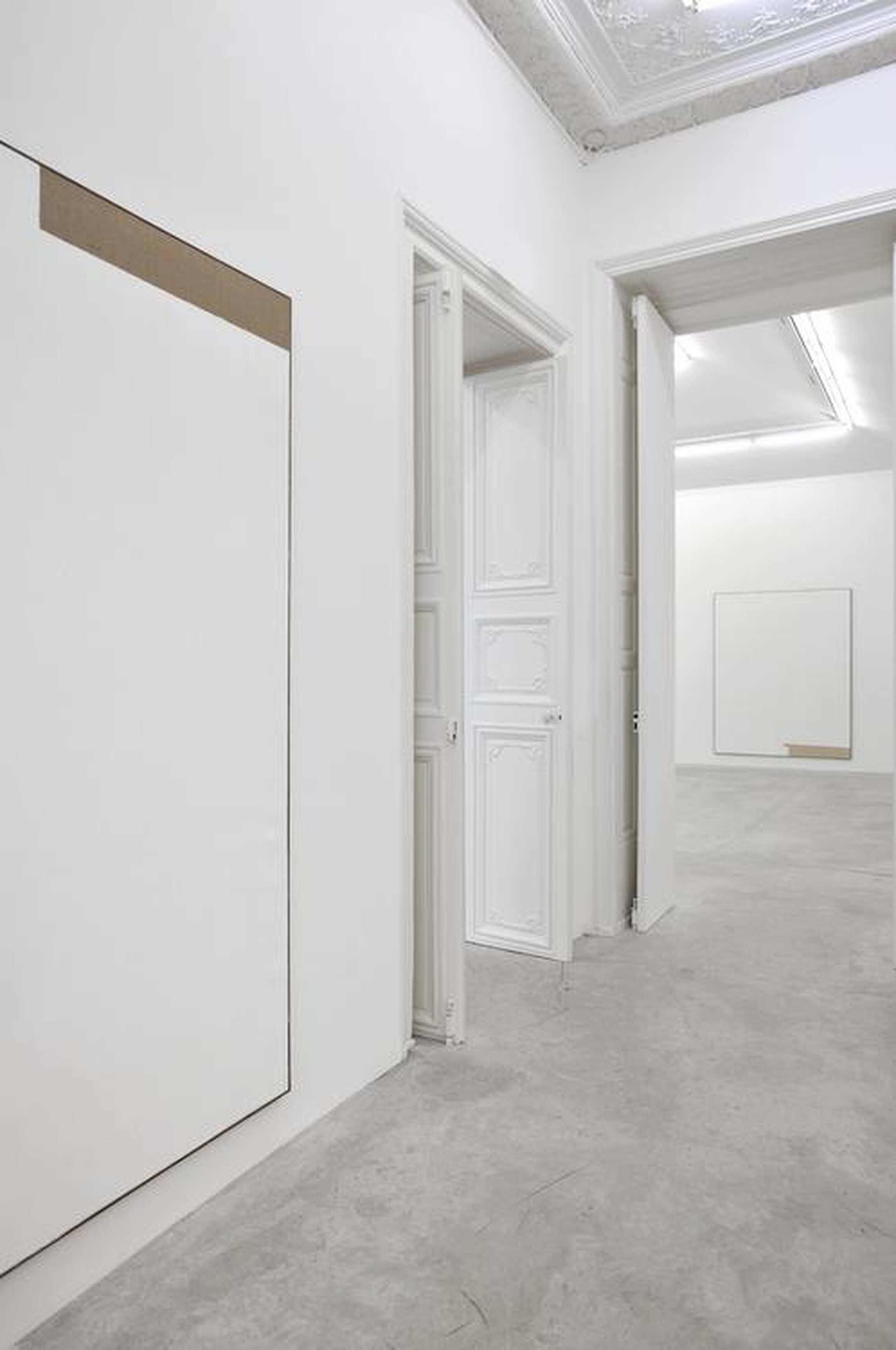 Ostrowski’s approach to painting is unpredictable. When the artist is ready, he sets to work. Sometimes a simple coating of lacquer will suffice, or a straightforward drop of gloss paint, a piece of tape torn off a white background, a hessian canvas with water stains, or a piece of paper stuck to the canvas. Ostrowski works at the limit of painting, paintings which are sometimes not even painted. Meditative and sensual, the act of painting is reduced to its simple constituents, the sometimes invisible atoms of information of a whole which it wishes to convey. Ostrowski reaches the core of painting by drastically simplifying its effects.