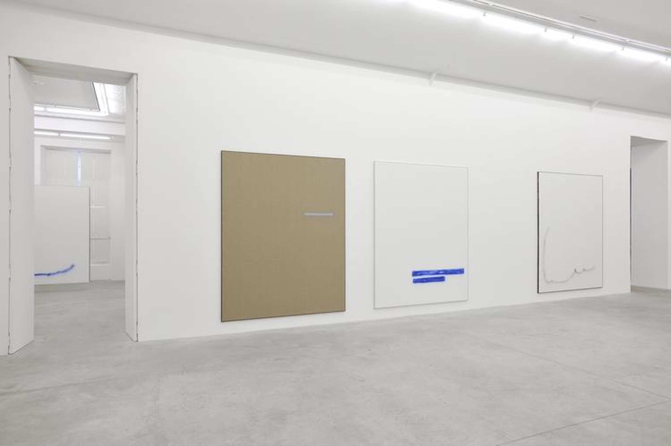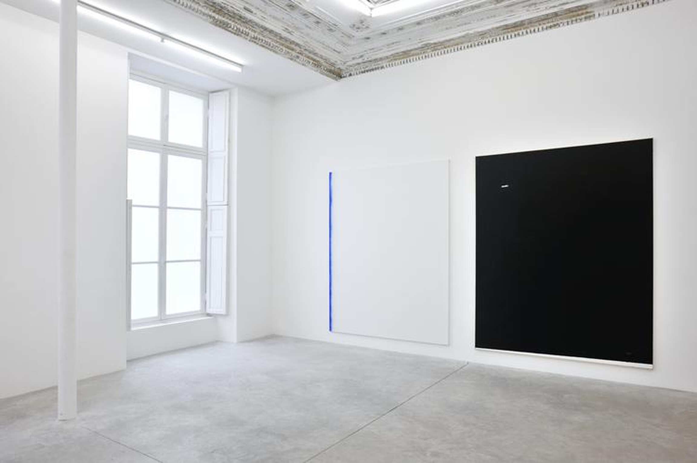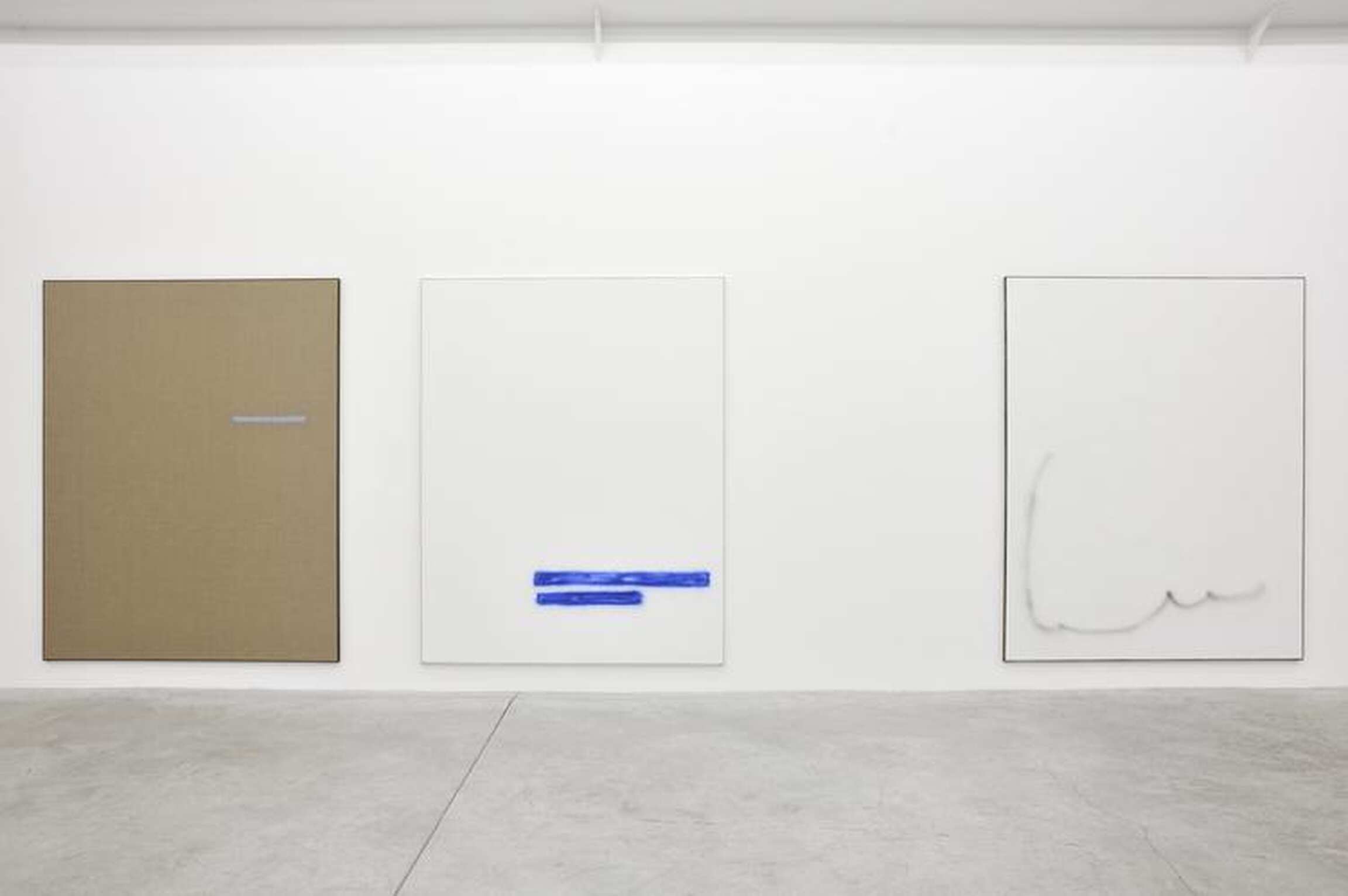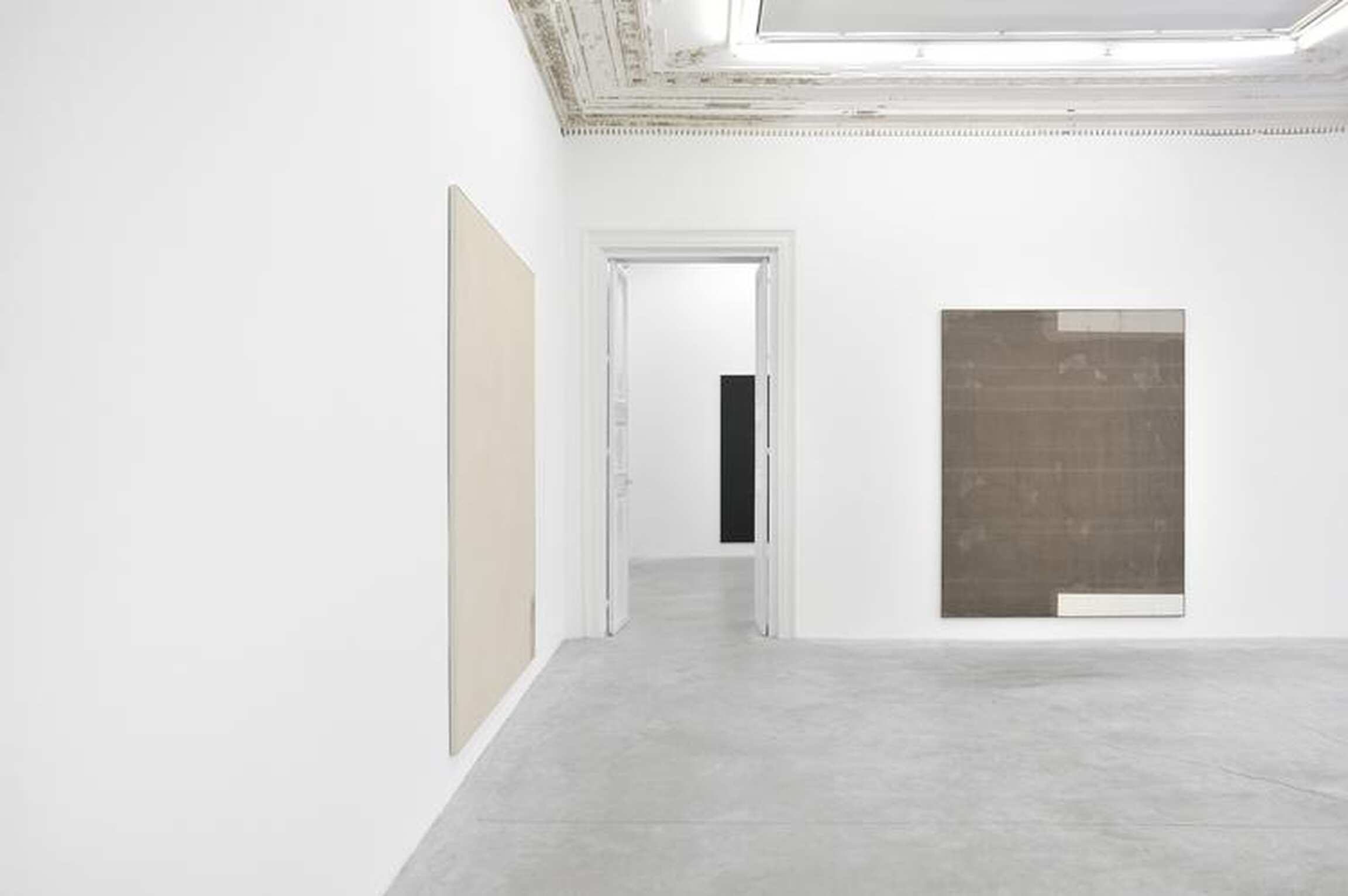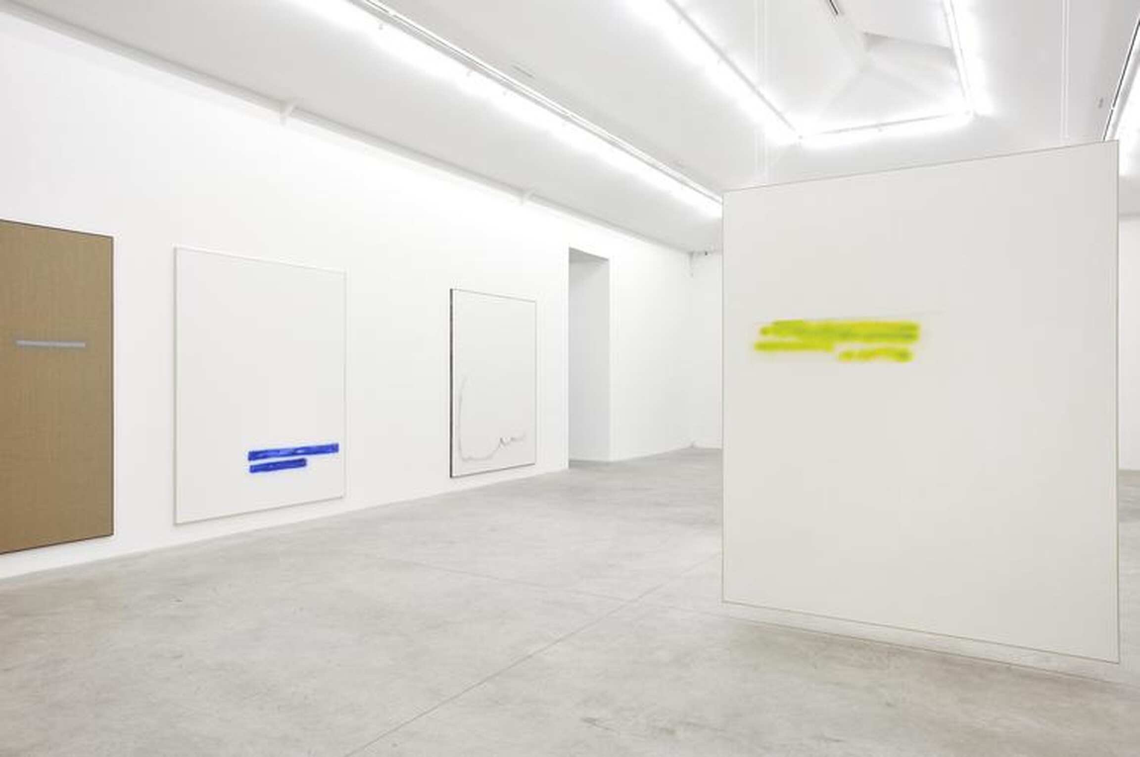 Ostrowski’s approach to painting is unpredictable. When the artist is ready, he sets to work. Sometimes a simple coating of lacquer will suffice, or a straightforward drop of gloss paint, a piece of tape torn off a white background, a hessian canvas with water stains, or a piece of paper stuck to the canvas. Ostrowski works at the limit of painting, paintings which are sometimes not even painted. Meditative and sensual, the act of painting is reduced to its simple constituents, the sometimes invisible atoms of information of a whole which it wishes to convey. Ostrowski reaches the core of painting by drastically simplifying its effects.