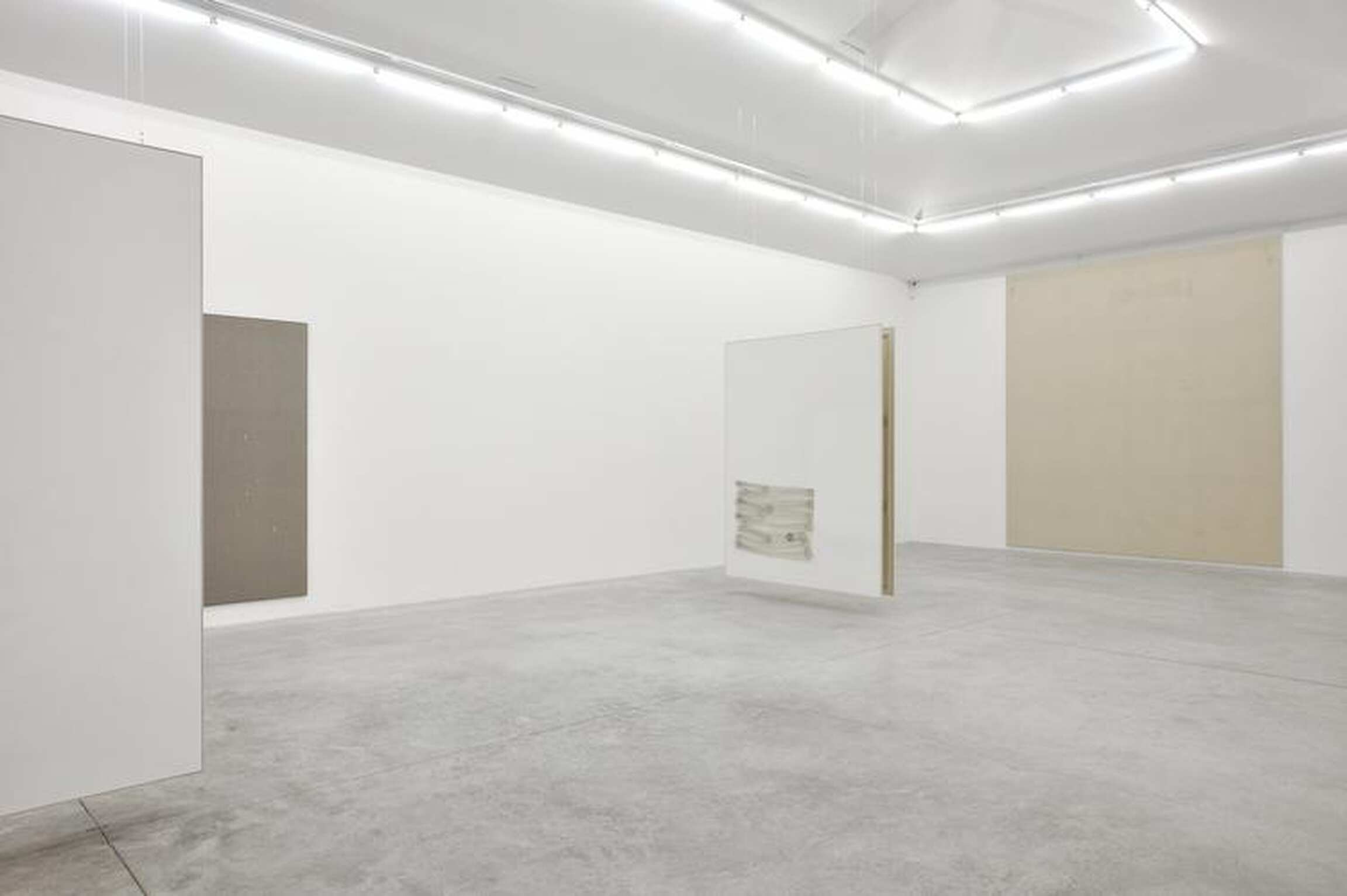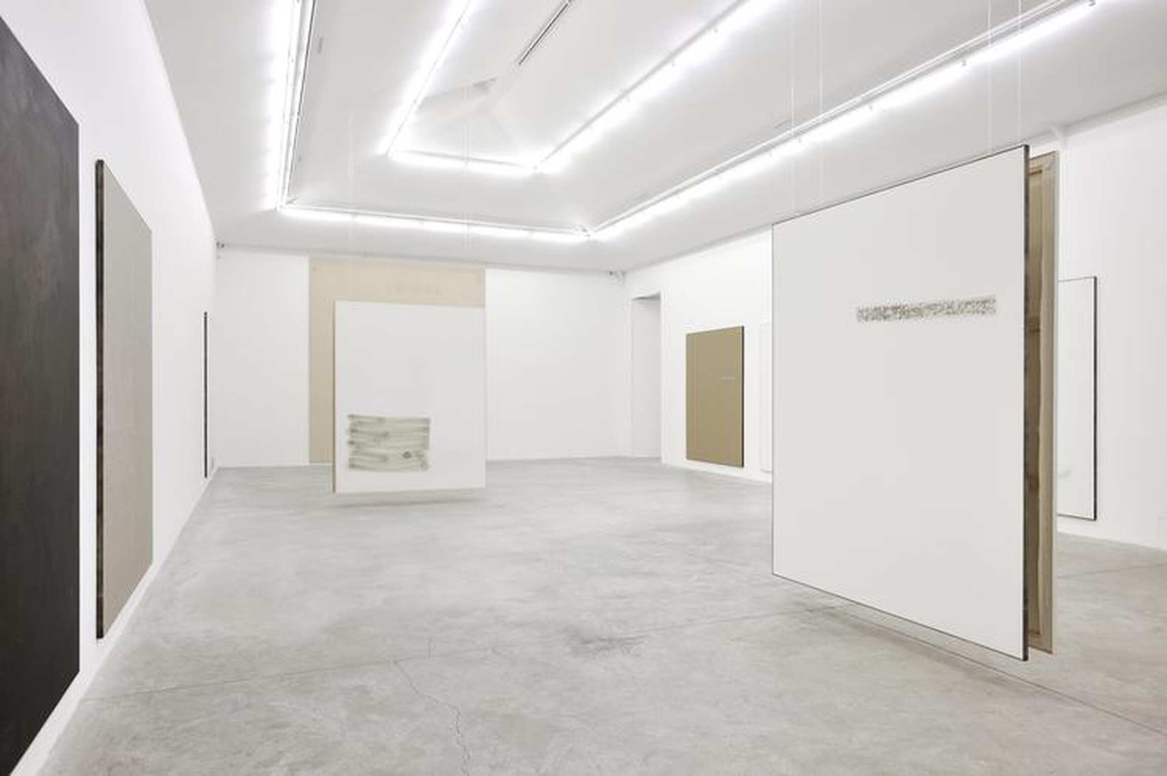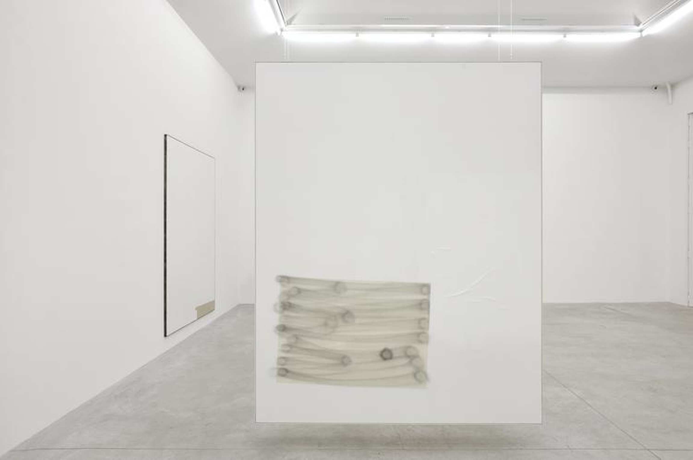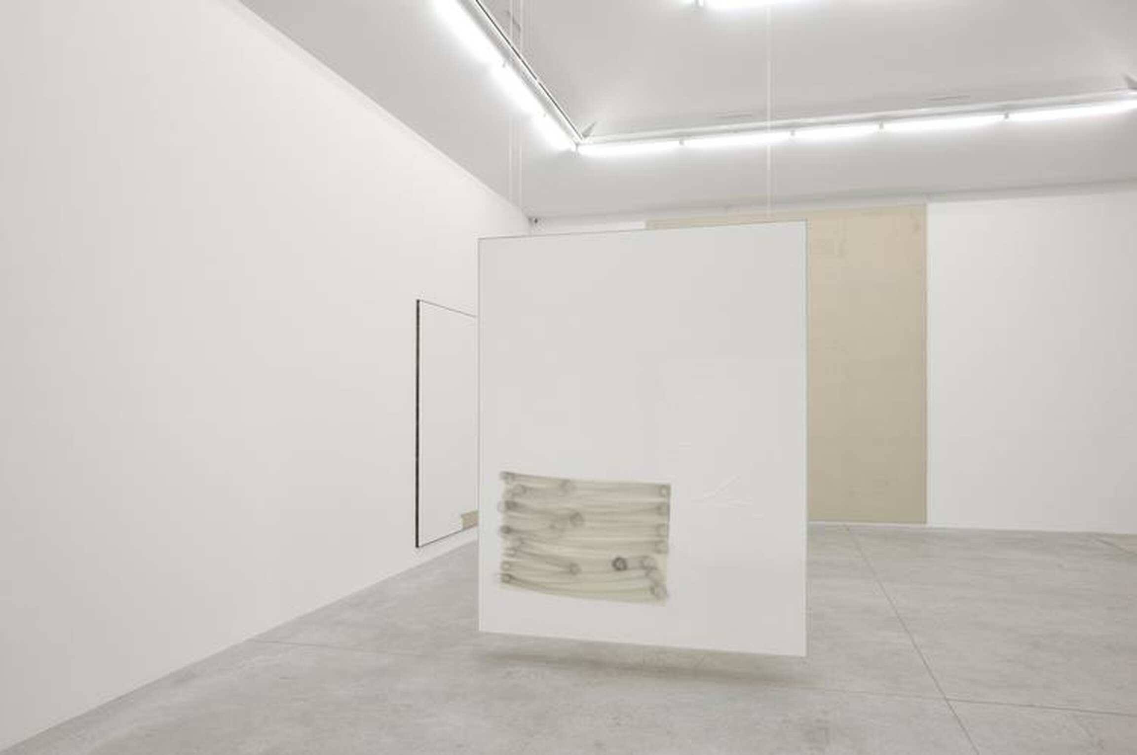 Ostrowski’s approach to painting is unpredictable. When the artist is ready, he sets to work. Sometimes a simple coating of lacquer will suffice, or a straightforward drop of gloss paint, a piece of tape torn off a white background, a hessian canvas with water stains, or a piece of paper stuck to the canvas. Ostrowski works at the limit of painting, paintings which are sometimes not even painted. Meditative and sensual, the act of painting is reduced to its simple constituents, the sometimes invisible atoms of information of a whole which it wishes to convey. Ostrowski reaches the core of painting by drastically simplifying its effects.