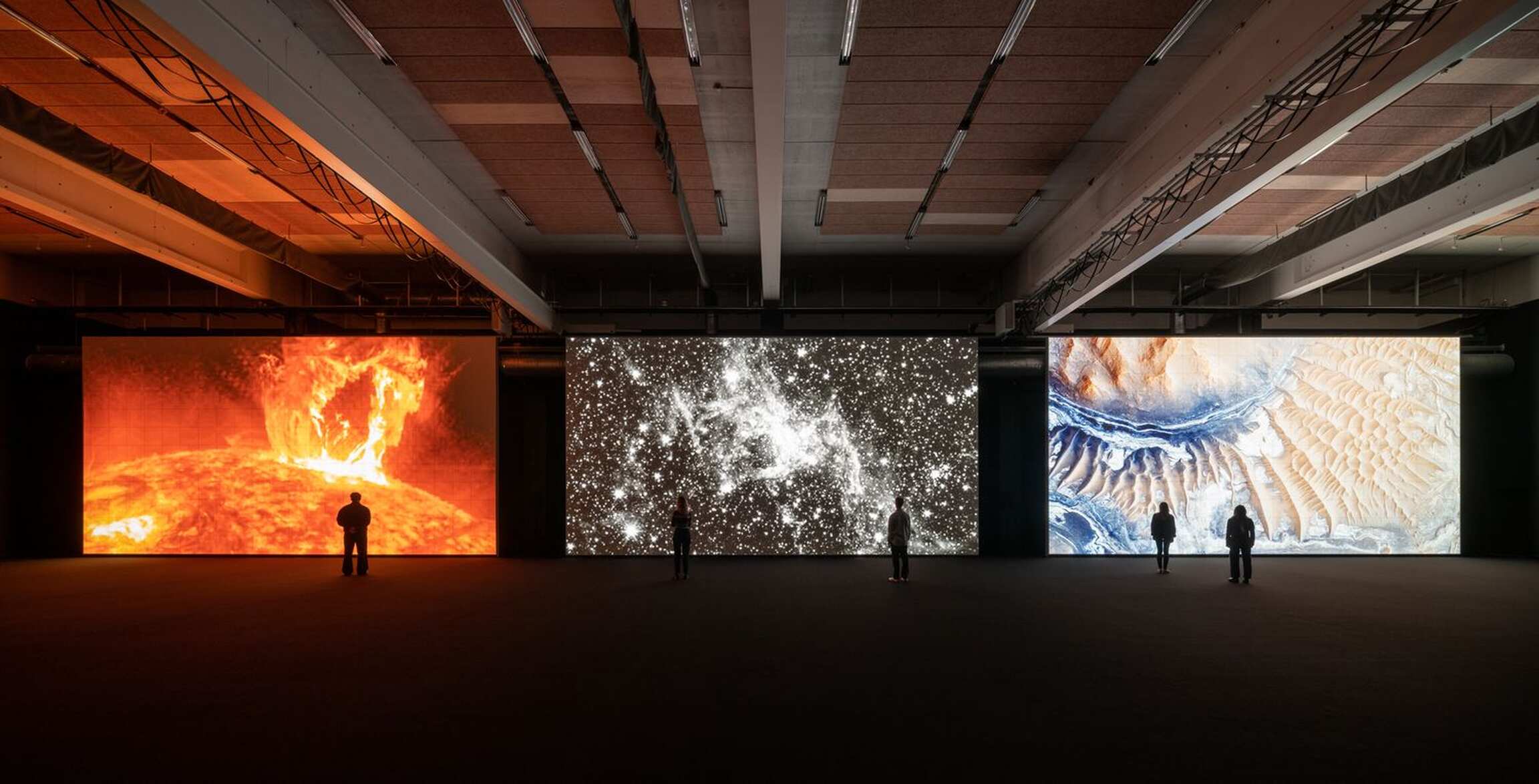 A New Space for Reflection Inspires Pioneering Art "Yet, it Moves!" explores the interconnected whole of which we are a part. glimpses of this greater, ever-moving whole manifest in spectacular artworks that give shape and form to complex phenomena like black holes, star formation, and gravitational waves. These works span the macro scale of the expanding universe to the micro scale of atomic explosions and particles. Other pieces focus on the movement patterns of the human body—how they harmonize with the cyclical rhythms of the universe and how each movement is interlinked with everything that surrounds us.
