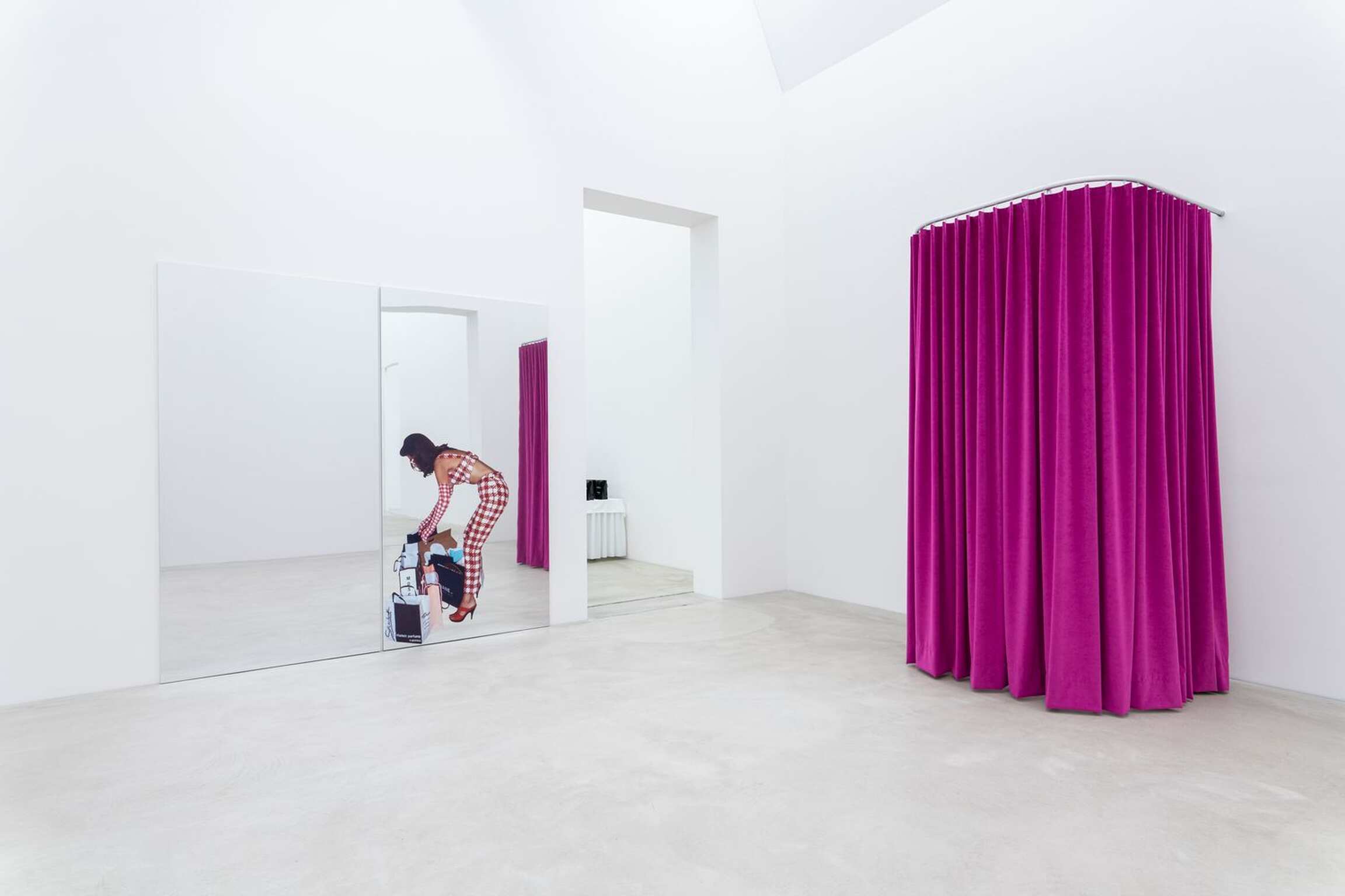 Sylvie Fleury, born in Geneva in 1961, gained recognition for her sophisticated presentations of glamour, fashion, and lifestyle, notably through her Shopping Bags series that gained attention in the 1990s. Each bag, including those from renowned global brands, contained the object that the artist had purchased with it. The unabashed combination of art and commerce seemed scandalous. Even more intriguing was the fact that an artist dedicated herself to almost obsessive shopping for luxury goods, seemingly indulging in glamour and lifestyle without critique. However, the exchange between esteemed archival culture and everyday spaces has a longstanding tradition in the visual arts since Marcel Duchamp.
