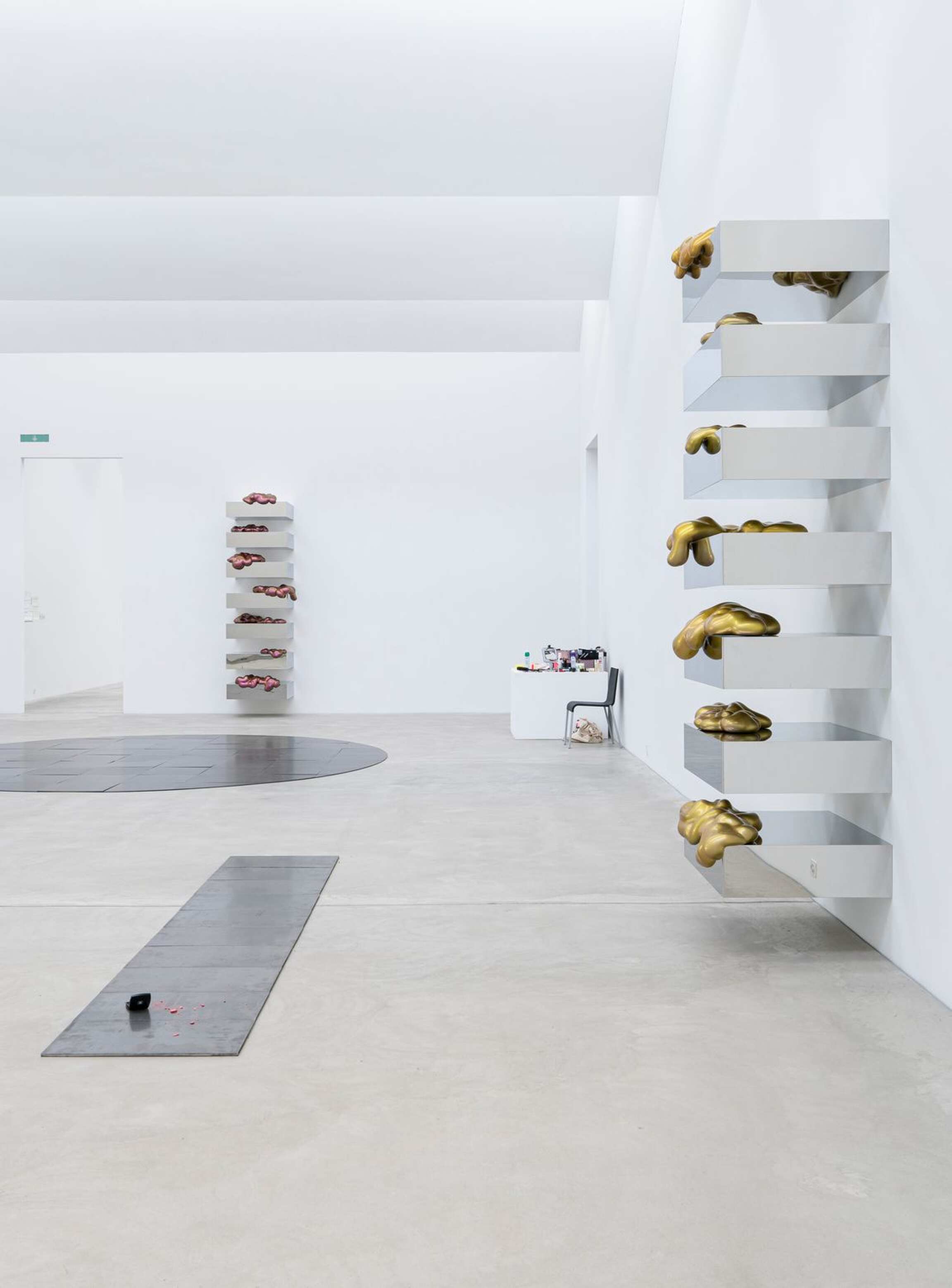 Sylvie Fleury consistently incorporates this tradition while deconstructing traditional gender stereotypes, doing so with a playful irony. For instance, she has models in high heels walk across Carl Andre's floor plates. Her artistic practice, spanning sculpture, performance, installation, and painting, employs strategies associated with early Conceptualism, Pop Art, and Minimalism, offering a critical perspective on the predominantly male-dominated history of art.