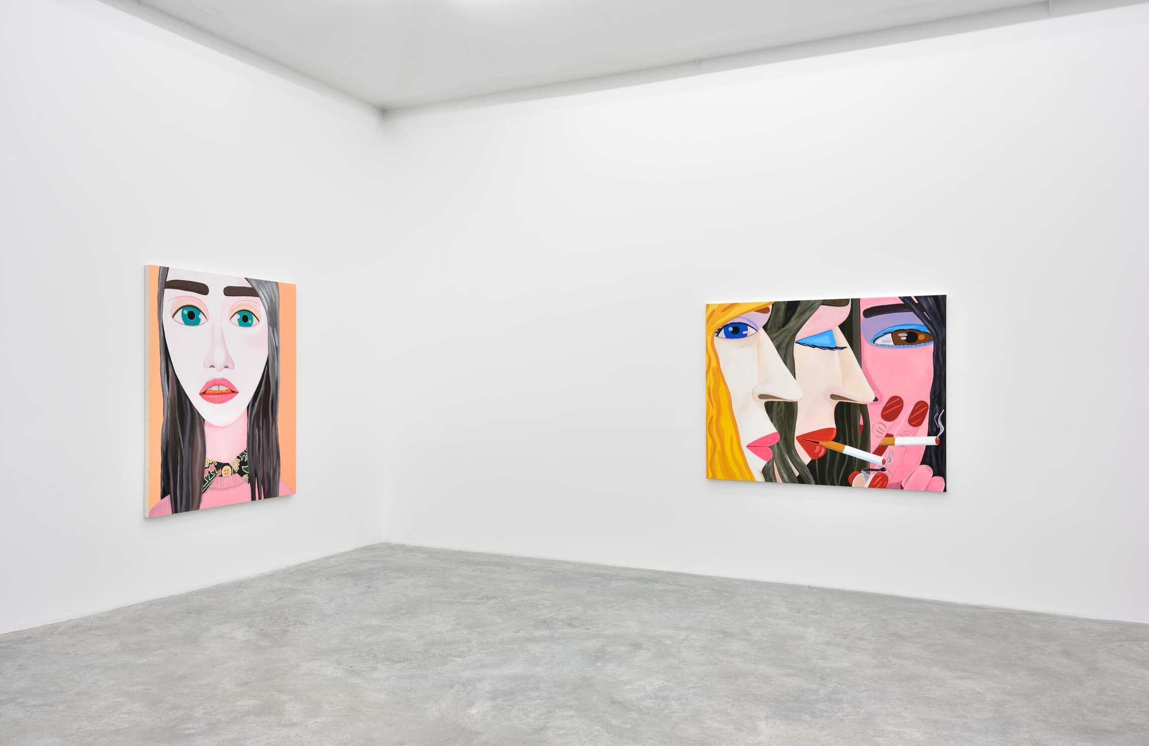 L’univers de Brian Calvin a ainsi quelque chose de familier car il parle simultanément à différentes générations. Il témoigne d’une affiliation à la prétendue platitude de la forme présente dans la recherche picturale d’Alex Katz, ainsi qu’à un certain héritage warholien dans le processus de création de l’image. D’autres rapprochements sont possibles, laissez les notes d’une chanson lo-fi vous guider parmi ses représentations. Trente, quarante, cinquante ans de musique résonneront par exemple dans un détail. Regardez les doigts ou les cigarettes, le gloss sur les lèvres : est-ce une nature morte, ou est-ce vous au volant d’une voiture sur l’autoroute, la radio allumée ? Récemment, j’ai vu un jeune homme passer plus d’une heure dans une exposition de Brian Calvin. Il était seul et regardait chaque toile avec beaucoup d’attention. Peut-être se sentait-il touché par le fait qu’en ce 21ème siècle les peintures et lui-même devenaient des monteurs d’images, des faiseurs d’images?