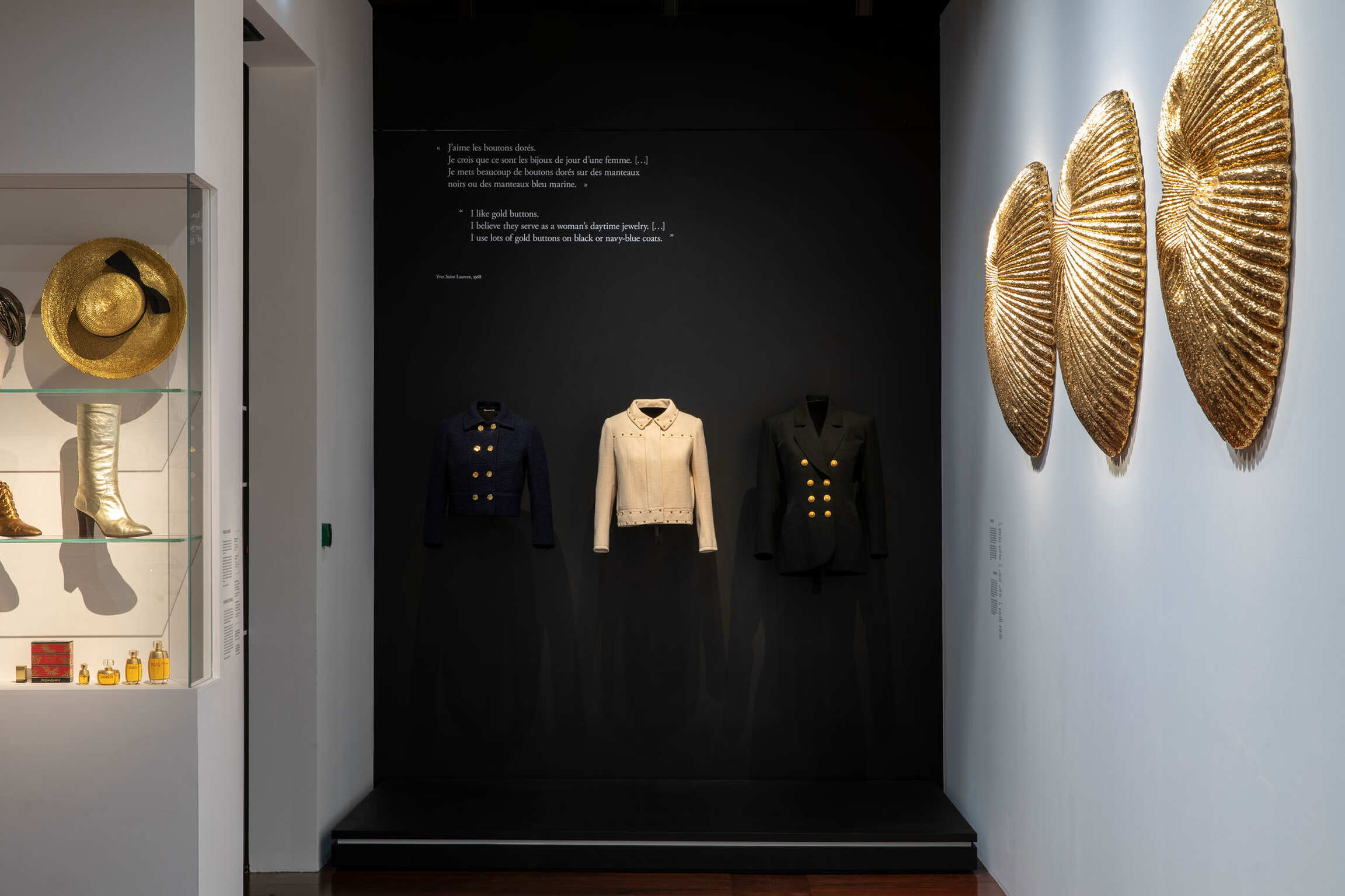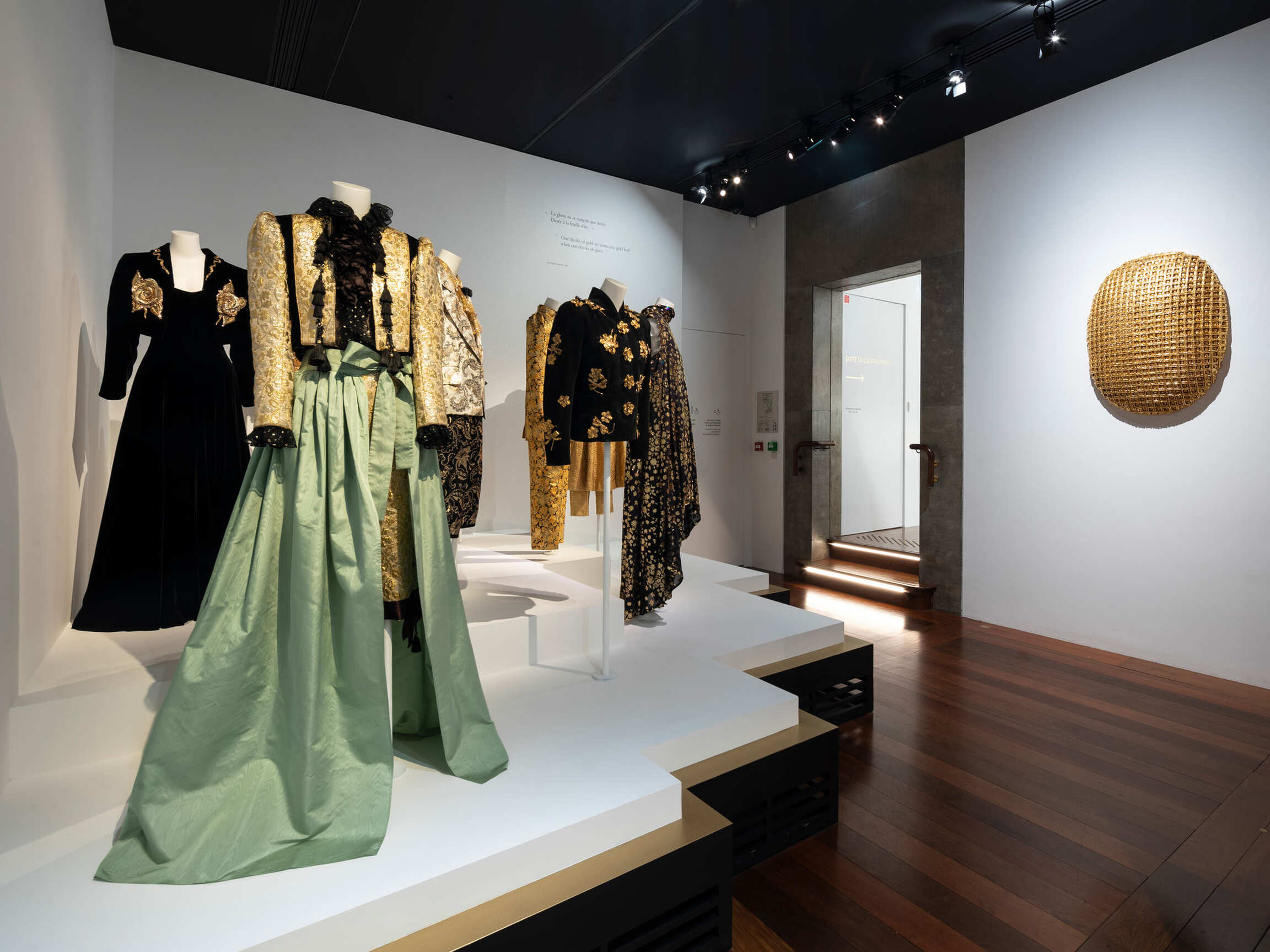 Under the curatorship of Elsa Janssen, director of the museum since March 2022, in association with the museum’s curatorial team and with the artistic collaboration of Anna Klossowski*, the exhibition GOLD by Yves Saint Laurent presents gold through some forty haute couture and ready-to-wear dresses, selected accessories and objects, as well as display cases filled with jewelery, essential to the Yves Saint Laurent silhouette.