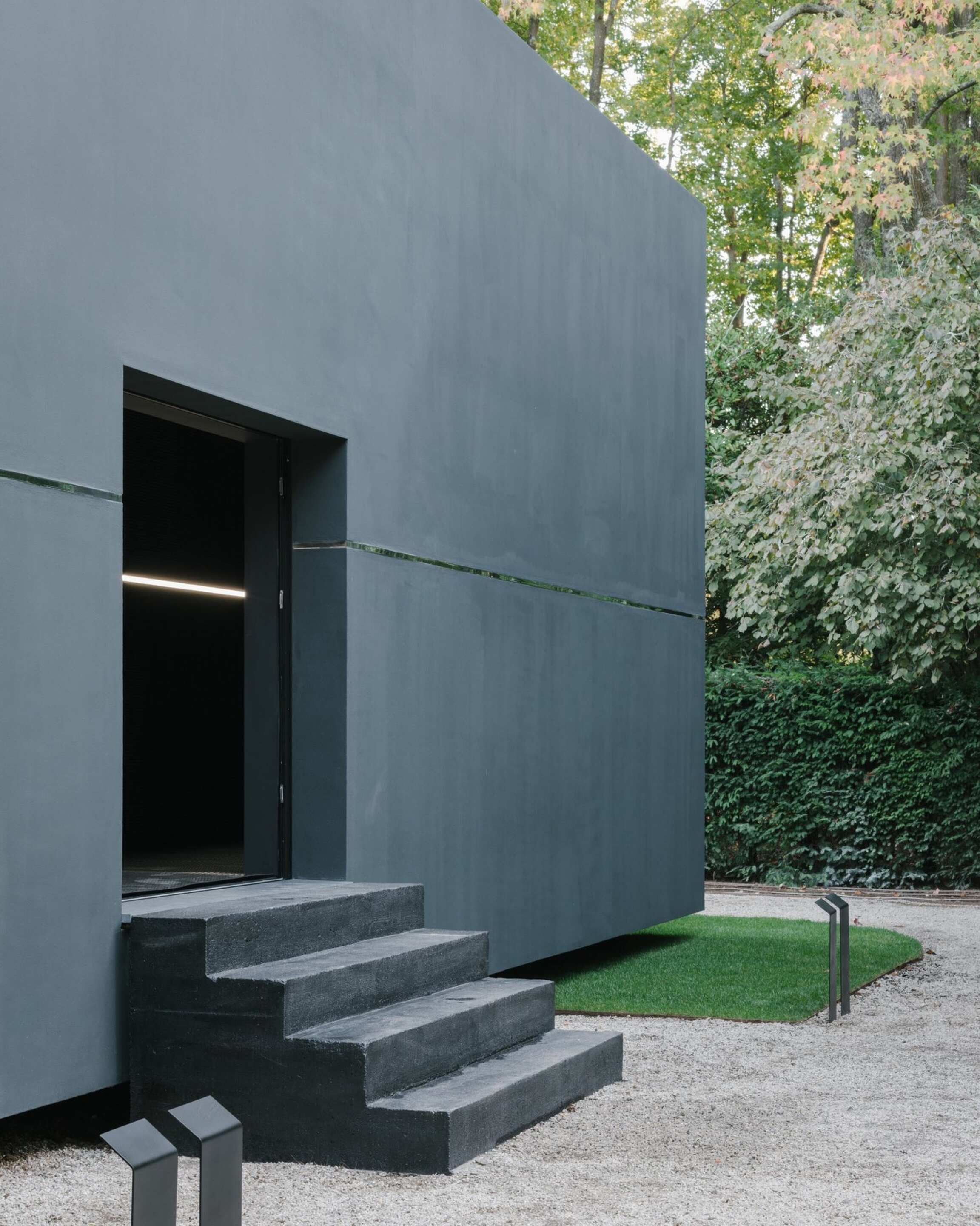La face extérieure de la structure est sans défaut, comme une sculpture amorphe sans signification. "Monolithe noir", recherchant la simplicité dans la perfection de la forme, cet objet tente de transmettre l'expérience de l'ensemble, avec une complicité complémentaire entre l'extérieur et l'intérieur. Comme la métaphysique ou l'ésotérisme, qui peuvent ou non avoir un sens, son but est la pureté visuelle.