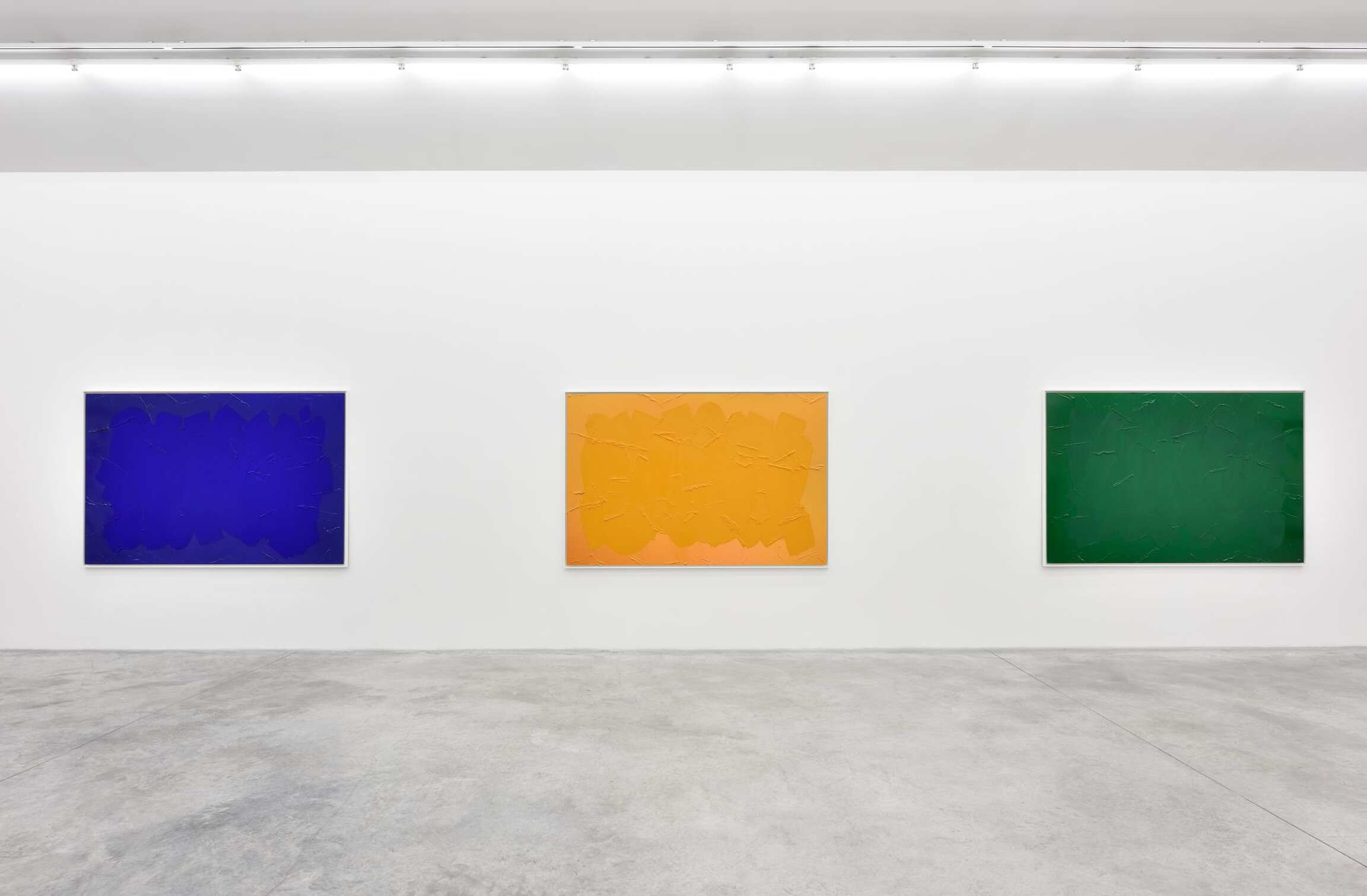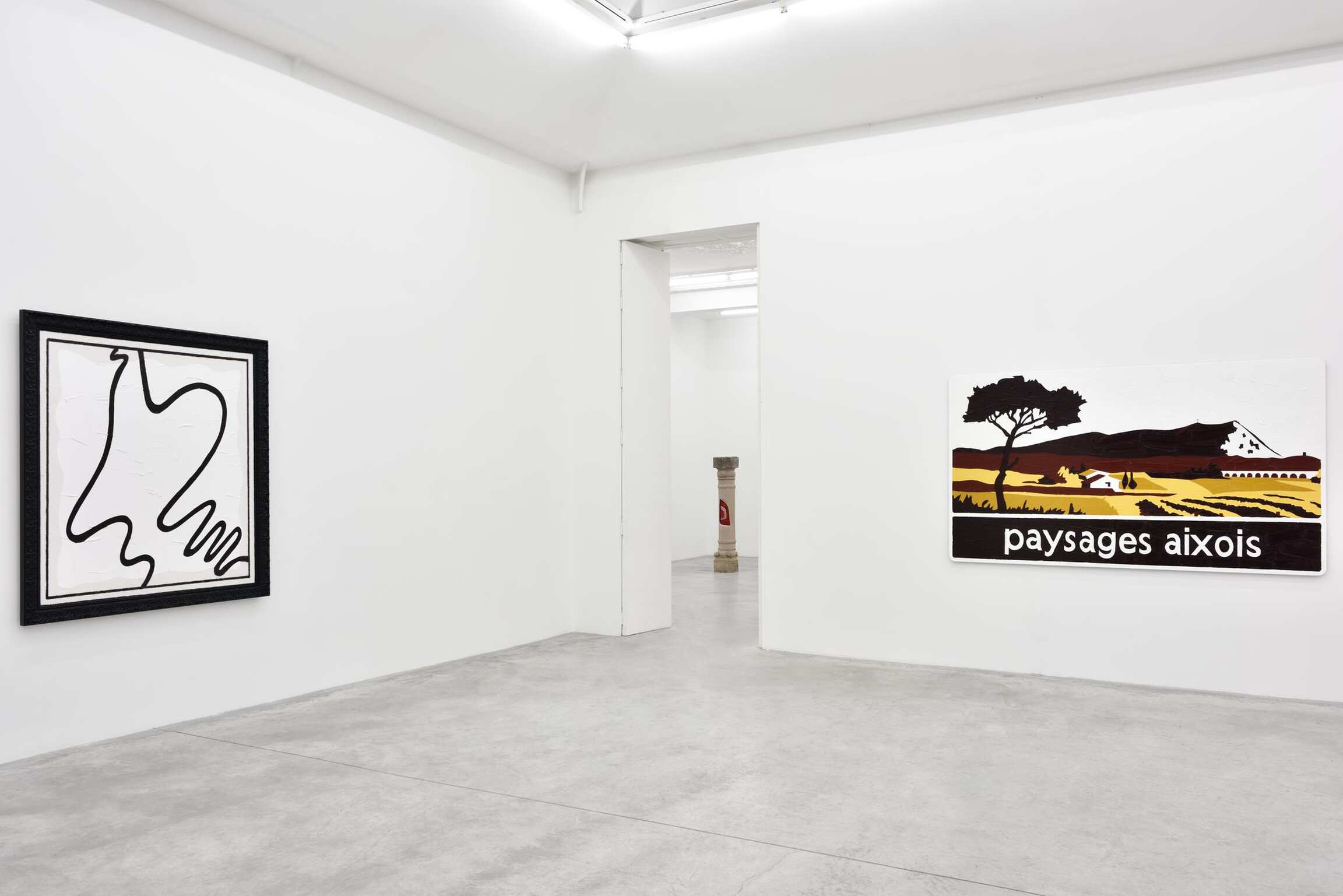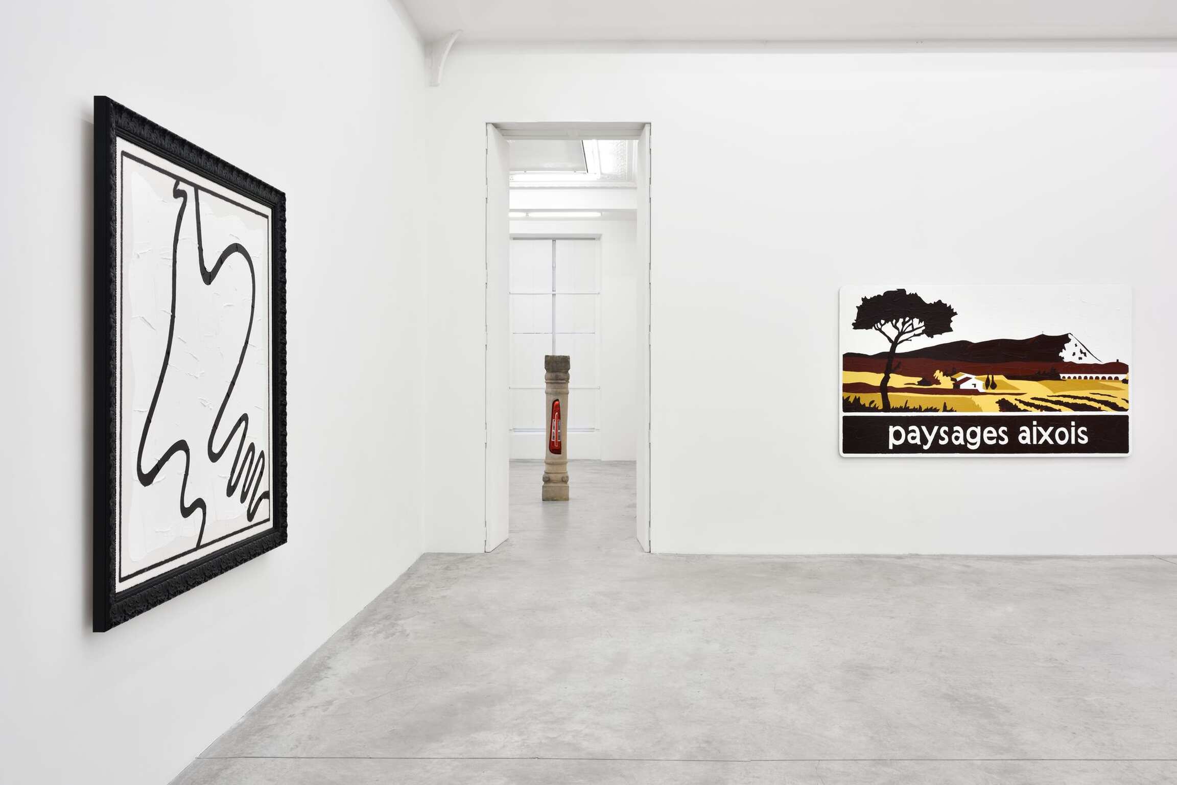 For his new exhibition in Paris, the artist goes on playfully tackling this question of painting and sculpture with one additional twist: A cappella, the title of the show, serving him as a method. Indeed, Bertrand Lavier enjoys spinning the musical metaphor, actually describing his practice as a stridence, which consists in “turning up the acoustic or visual volume to a level that could be compared to the phenomenon of incandescence.” That said, no instrumental accompaniment was needed here, hence the artist’s three monochromes that welcome us into the exhibition: Bleu cobalt (2017), Jaune cadmium clair (2017) and Vert permanent (2017). These three works further a series of monochromes, which was initiated in 1986. They are photographs of previously colored surfaces, over which the artist repainted identically, that is, the most illusionistically possible, the initial compositions. If Bertrand Lavier originally meant to highlight in this series the difference between painting and photography, the didactic dimension has since disappeared. Even though it remains visible, the distinction has now become subtler and requires more attention from the viewer. The brushwork over the photographed monochromes isn’t that of Van Gogh, which the artist qualifies as “modern,” yet it evokes the more “contemporary” touch of abstract expressionism, a spontaneous and popular equivalent of which Bertrand Lavier found on the display windows sprinkled with whiting of rue Louise Weiss or avenue Montaigne in Paris. This blurring effect takes on another form in the landscapes Paysages aixois (2015) and Sombernon (2016), which were made on found tourist signs. The artist mimetically covered them with acrylic paint and this time, impressionism oblige, a hint of Van Gogh’s stroke. What we end up seeing are both a painted tourist sign and a landscape painting. Whereas such signs are primarily designed to point at a landscape unfolding beyond them, Bertrand Lavier’s process of repainting over (and after) them forces us to reconsider the object before our eyes as a landscape that has been cut out of its context. Thus these touristic means, which are intended to index typical places or monuments, gain the status of paintings. Through this operation, Bertrand Lavier uncovers the true etymological sense of the picturesque, that is, what is worthy of being painted.