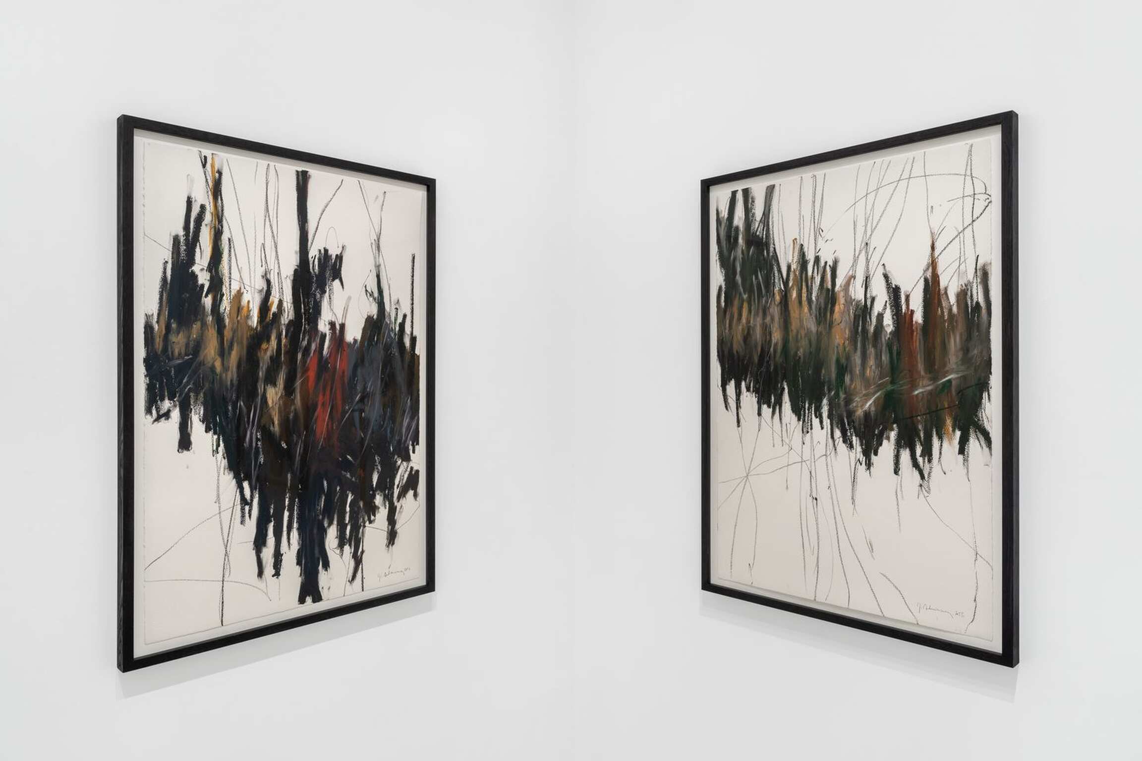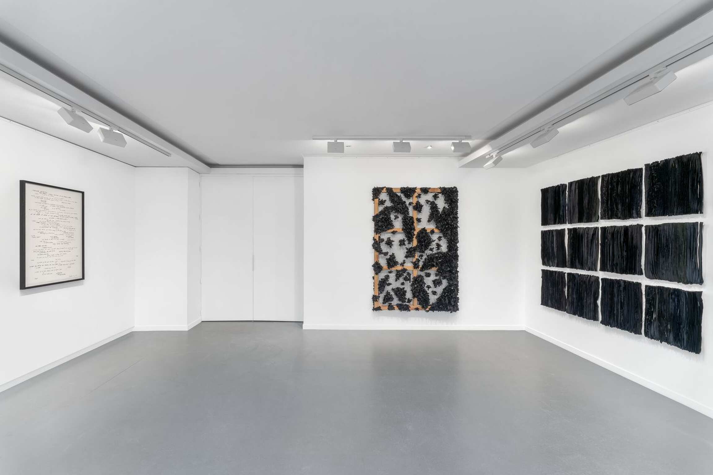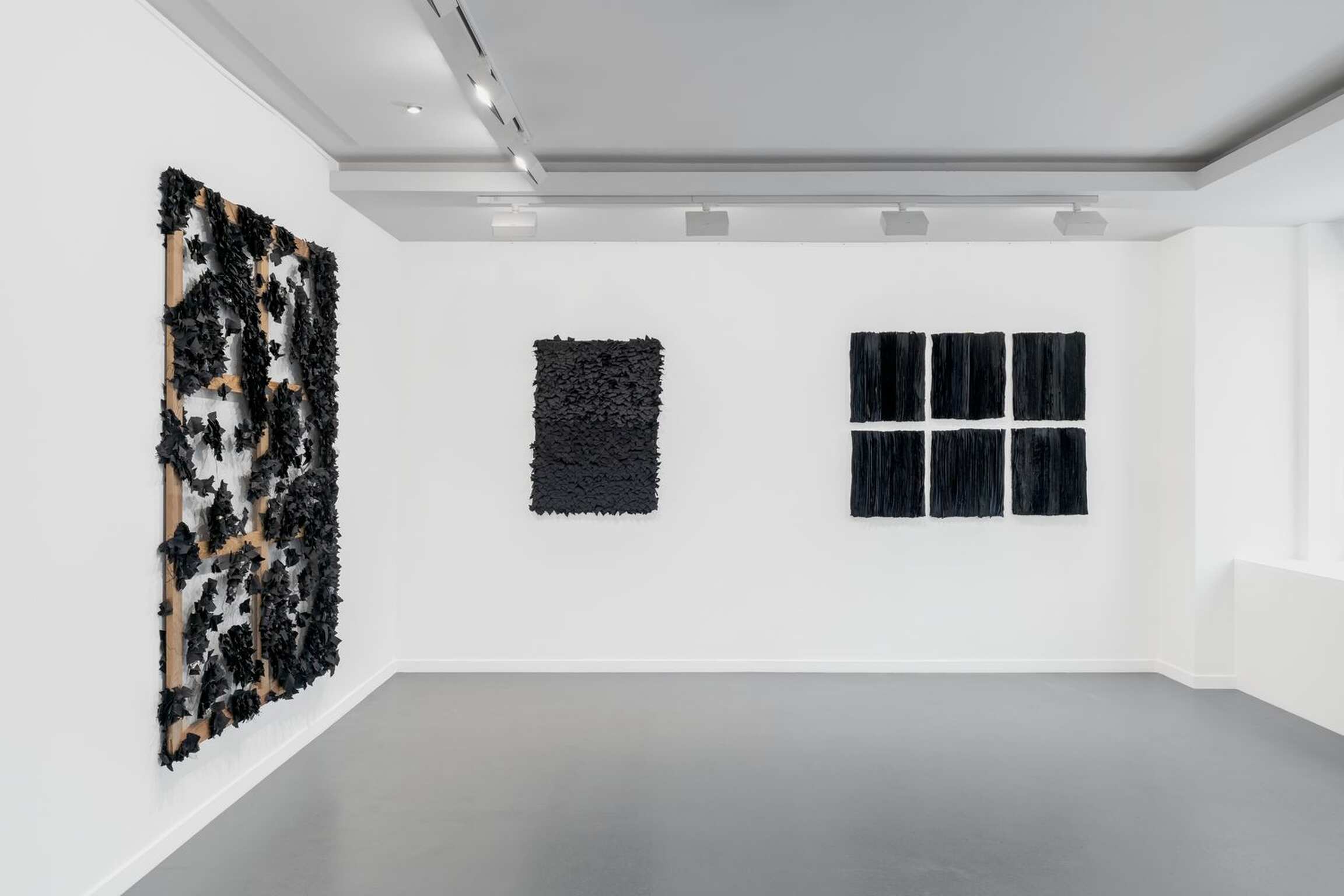 Joël Andrianomearisoa's bold explorations transcend geographies and art classifications. Beyond any explicit formula on the link between artist and artisan, Joël sees himself as one who, through art, shapes his own life. Litanie des horizons obscurs creates a dialogue between the ancestral and the industrial, in a multi-voiced canon, offering an incessant journey between art and craftsmanship to stress the power of their symbiosis. The artworks condense the artist's relationship with architecture, the poetic gesture and a passion for the work. Like a variation, the exhibition highlights the transformative ability of Joël's artistic fabric through different formal processes that, separately or simultaneously, relate to matter, text and chromaticism, while leaving the original theme discernible.