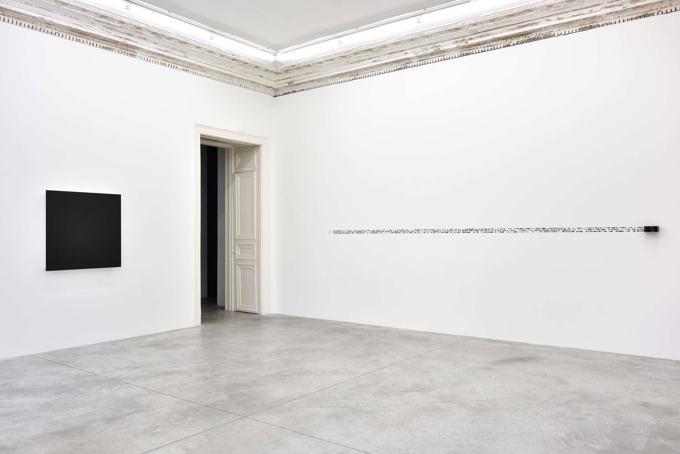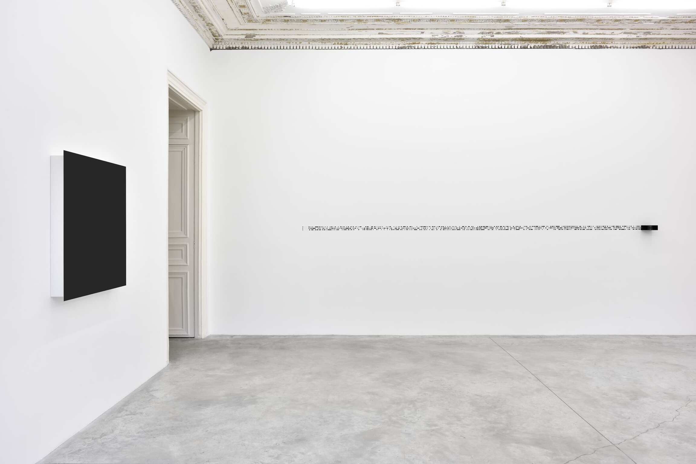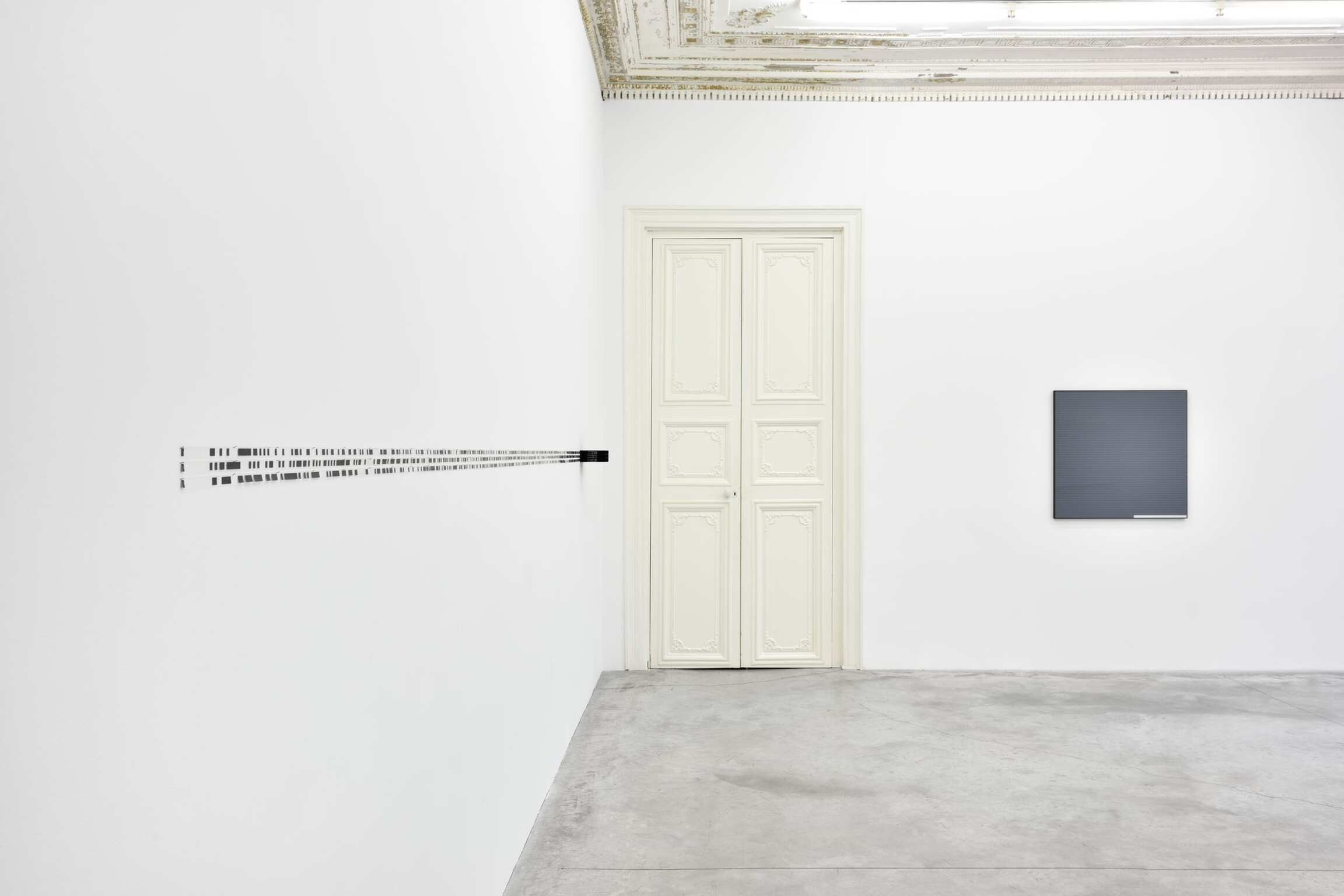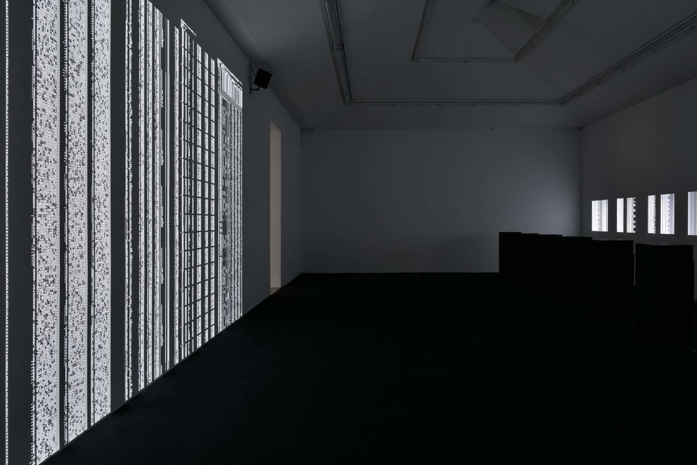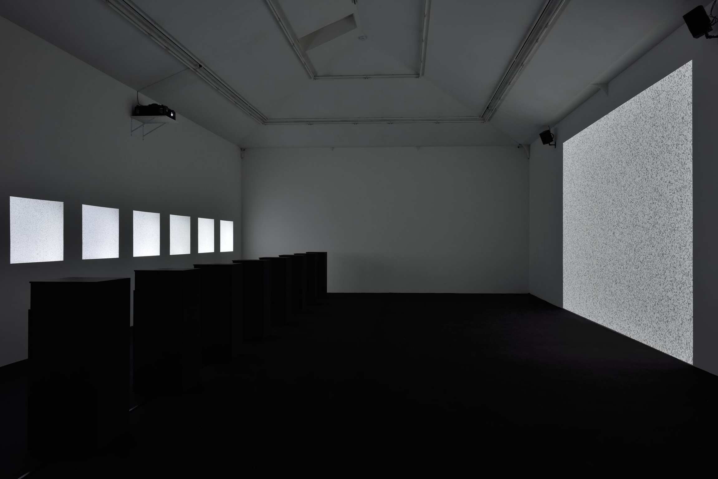 Ryoji Ikeda has often set strong perceptual contrasts by juxtaposing dark spaces to heavily lit ones in the context of the same exhibition. This exhibition is structured in a similar fashion, with an immersive datascape flanked by a room hosting more conventional works of art. Both, however reflect systems of data representation, and raise issues of display and interpretation.