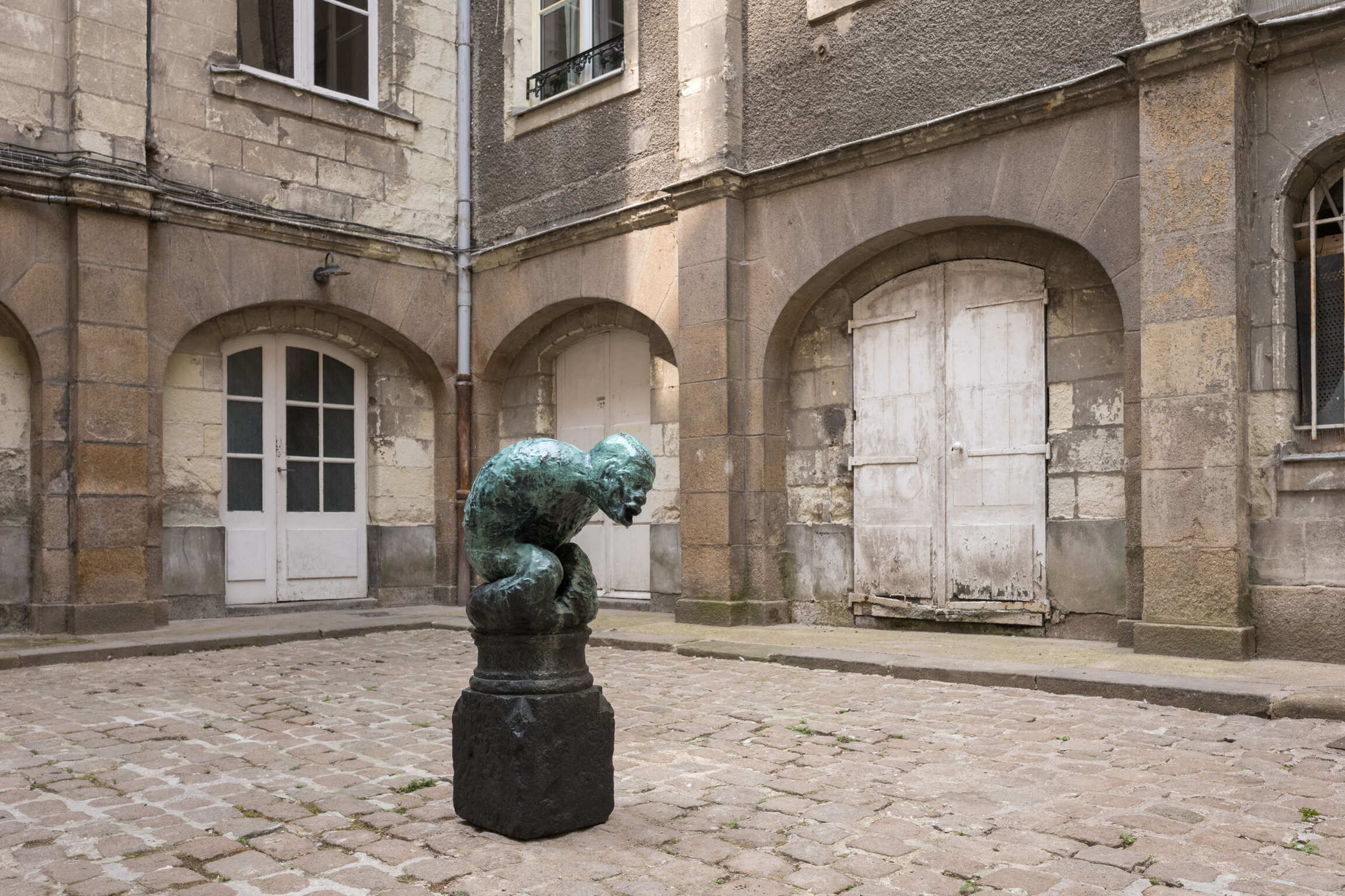 Cette sculpture est celle d’un anonyme, d’un être en souffrance. Est-il victime de sa condition collective ou de sa condition personnelle ? Ce personnage ne représente personne en particulier mais une multitude, des gens que l’artiste a croisés au fil de ses déplacements et voyages, notamment en Italie où il a rencontré beaucoup d’individus ayant fait « la traversée », le cheminement de l’exil en passant par la Méditerranée.