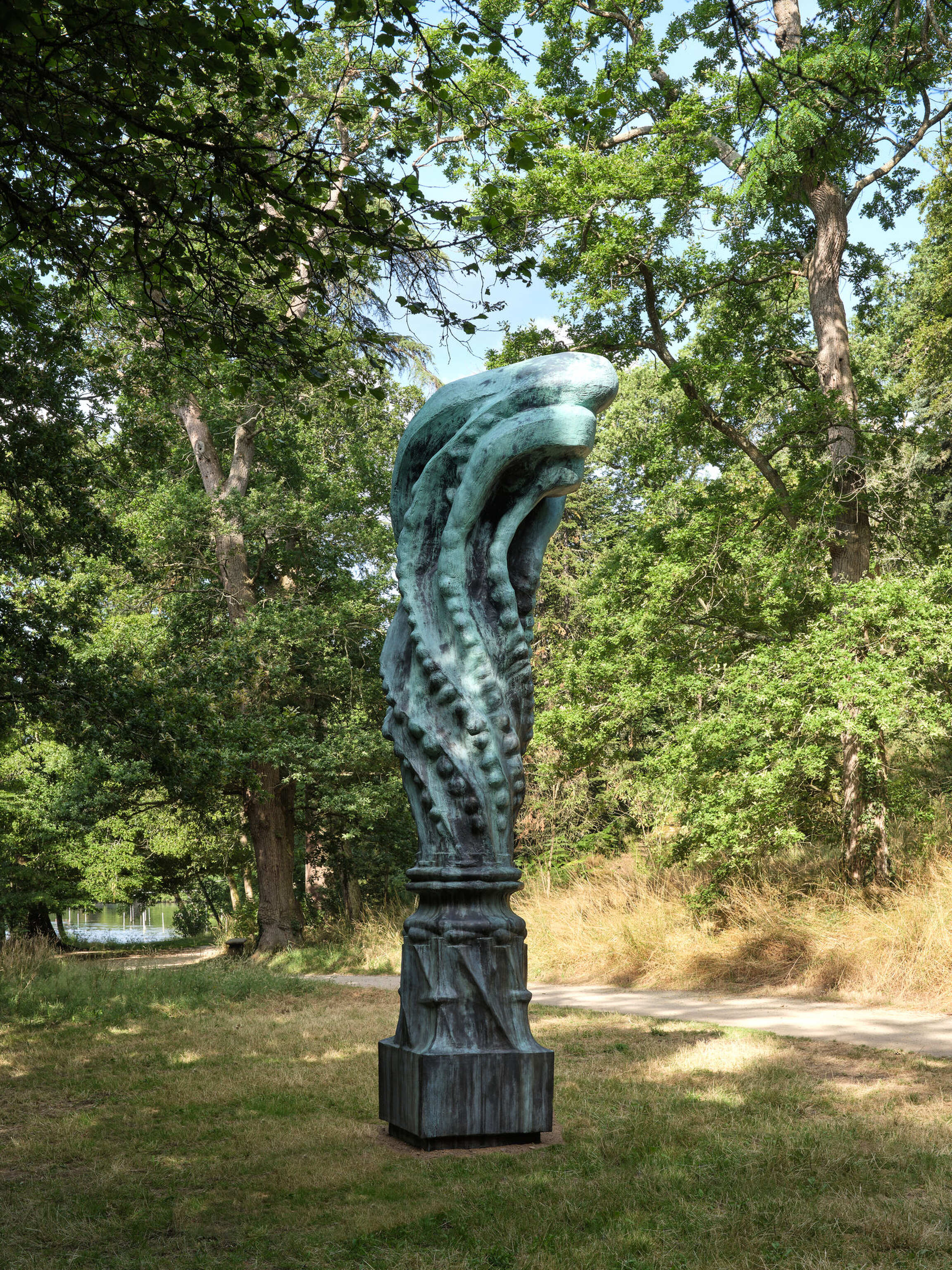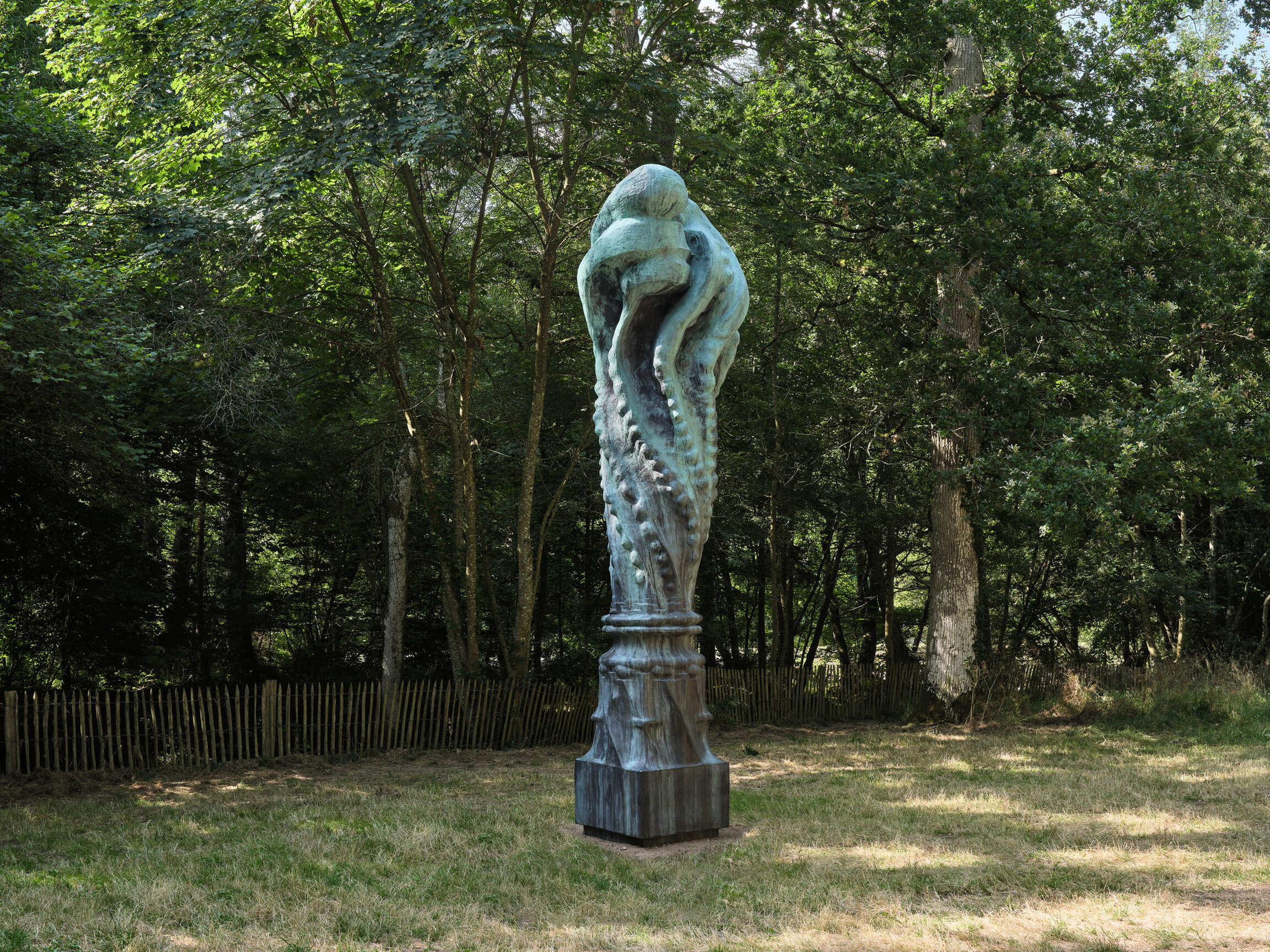 La Grande Colonne est une œuvre née pour la première fois en poudre de marbre et résine en 2010 et installée pendant une dizaine d’années au Middelheim Museum à Anvers en Belgique. Aujourd’hui, c’est en bronze que cette sculpture majestueuse de cinq mètres de haut se découvre pour la première fois en regard des fabriques et du paysage composé du parc de la Garenne Lemot.