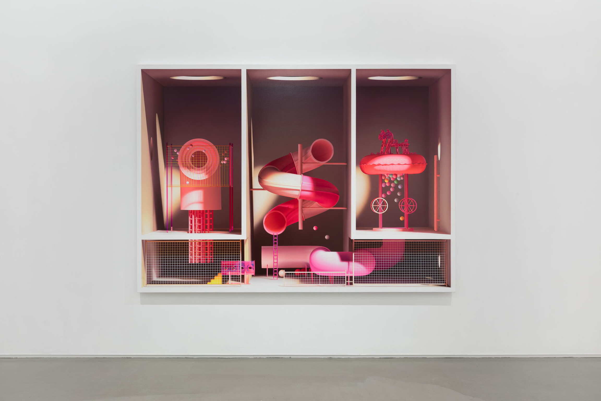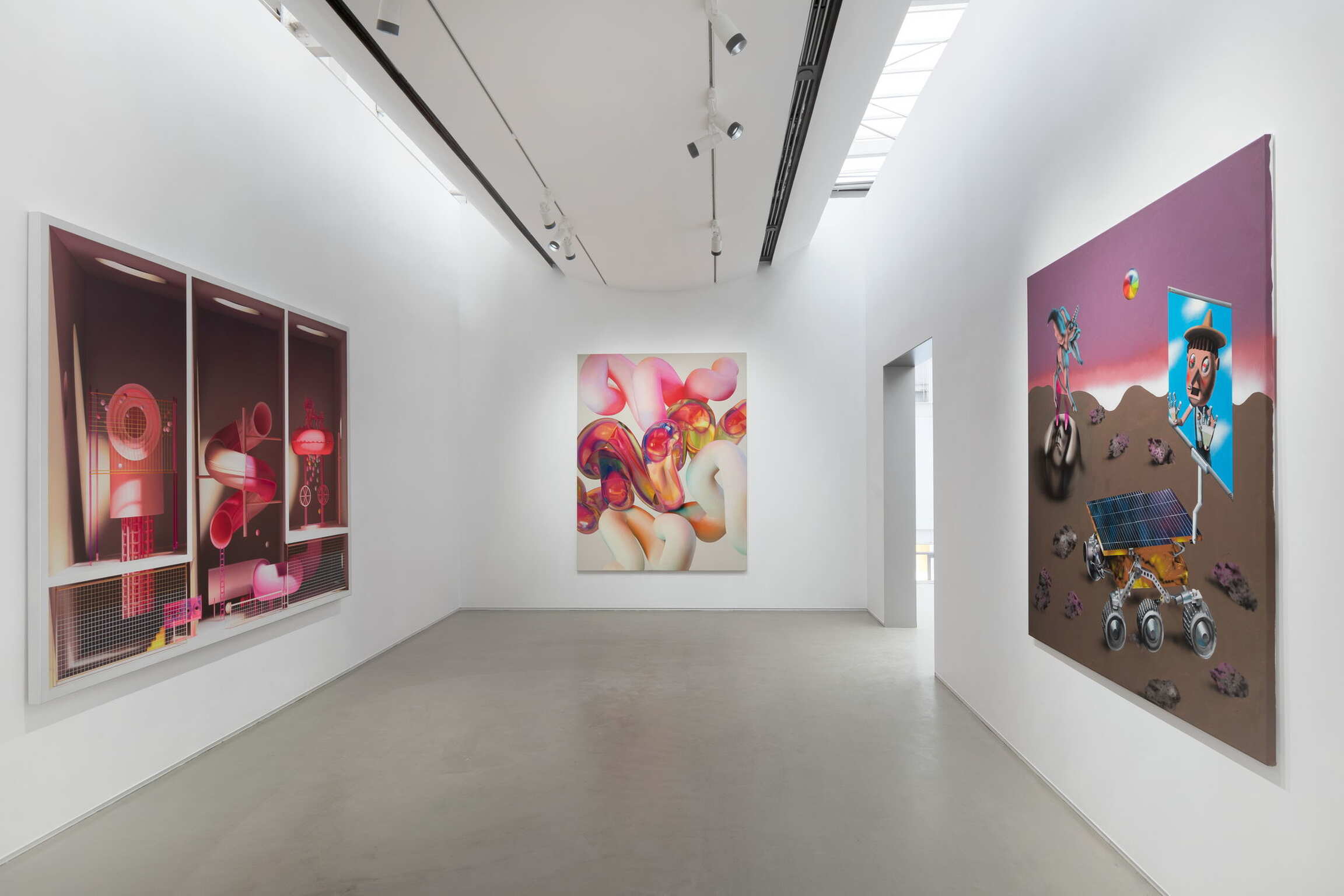 The evolution of technology crystallises human society into various phases, interweaving the sonnets of time and space. The exhibition also includes works that capture fantasies about technology: the entanglement of fragile humanoid and parasitic plants, human forms generated by the Bézier curve, curved slides connected to the world of wonders, and bizarre social networking scenarios on the mysterious Mars. The universe folds in on itself - these utopian visions contextualise the idea of ‘de-distancing’ in Heidegger’s mode of being, inviting the audience to envisage the end of the world where all human beings are absent, and imagine various emotions between the heterogeneous forms of life that remain.
