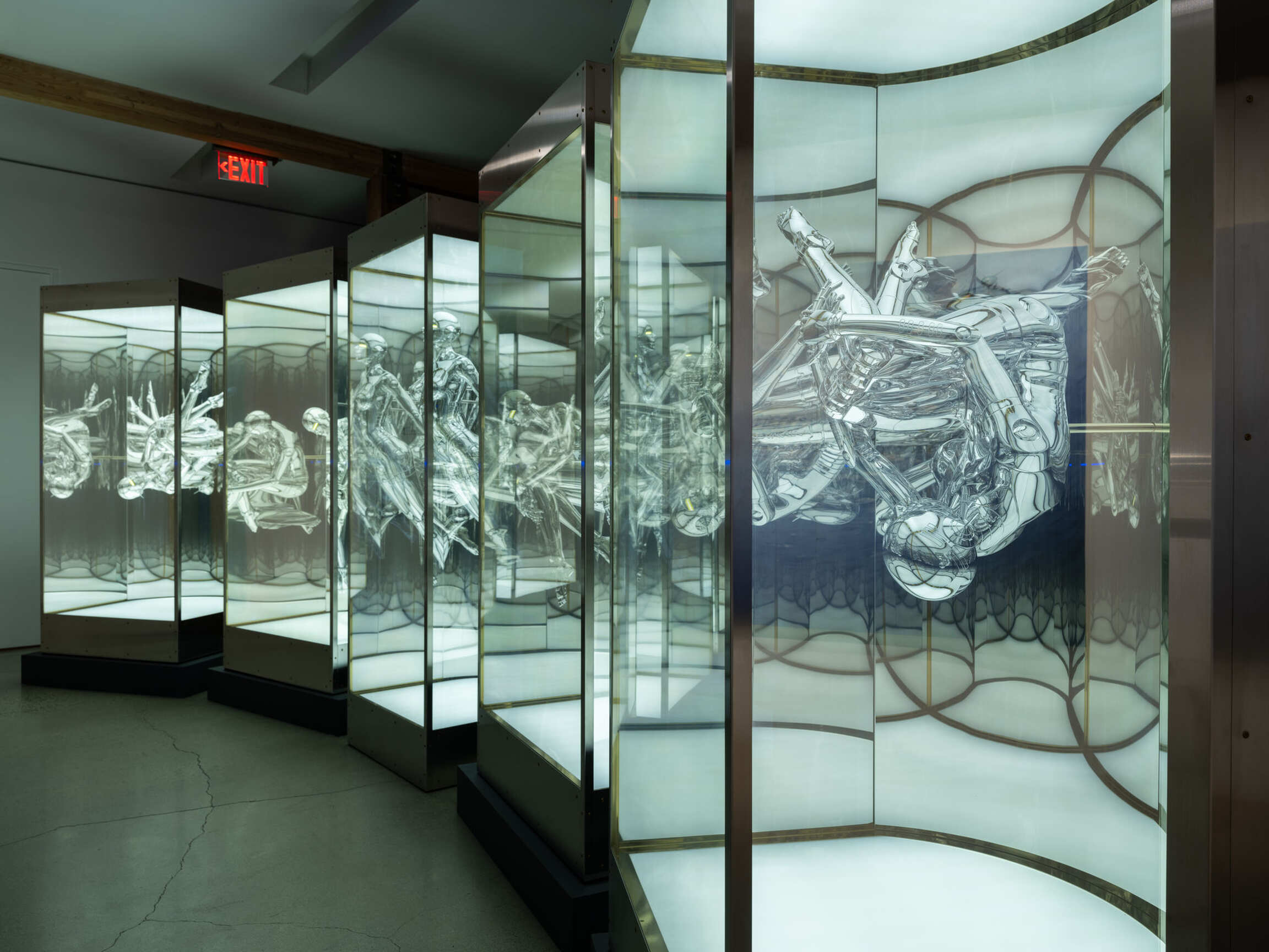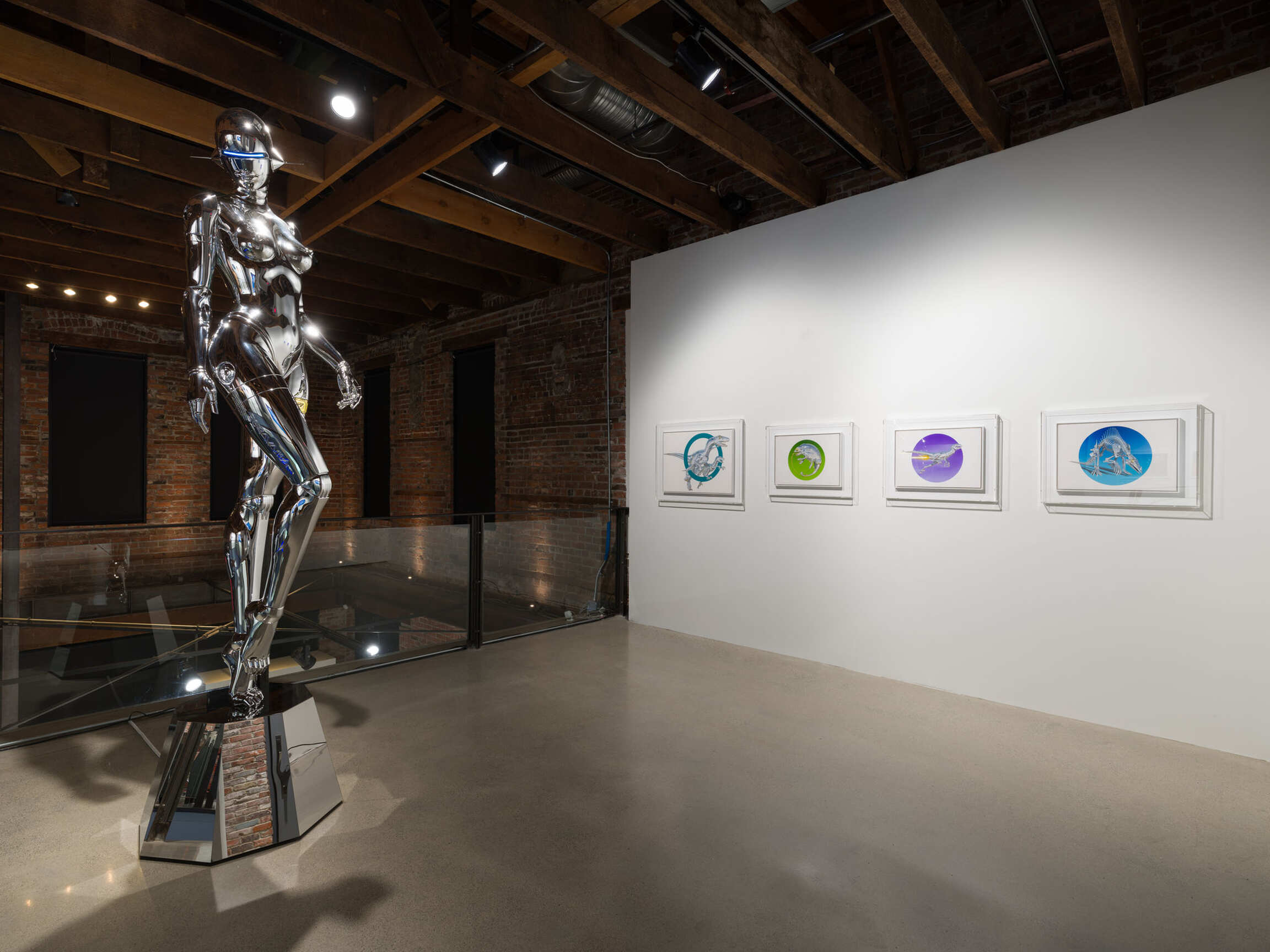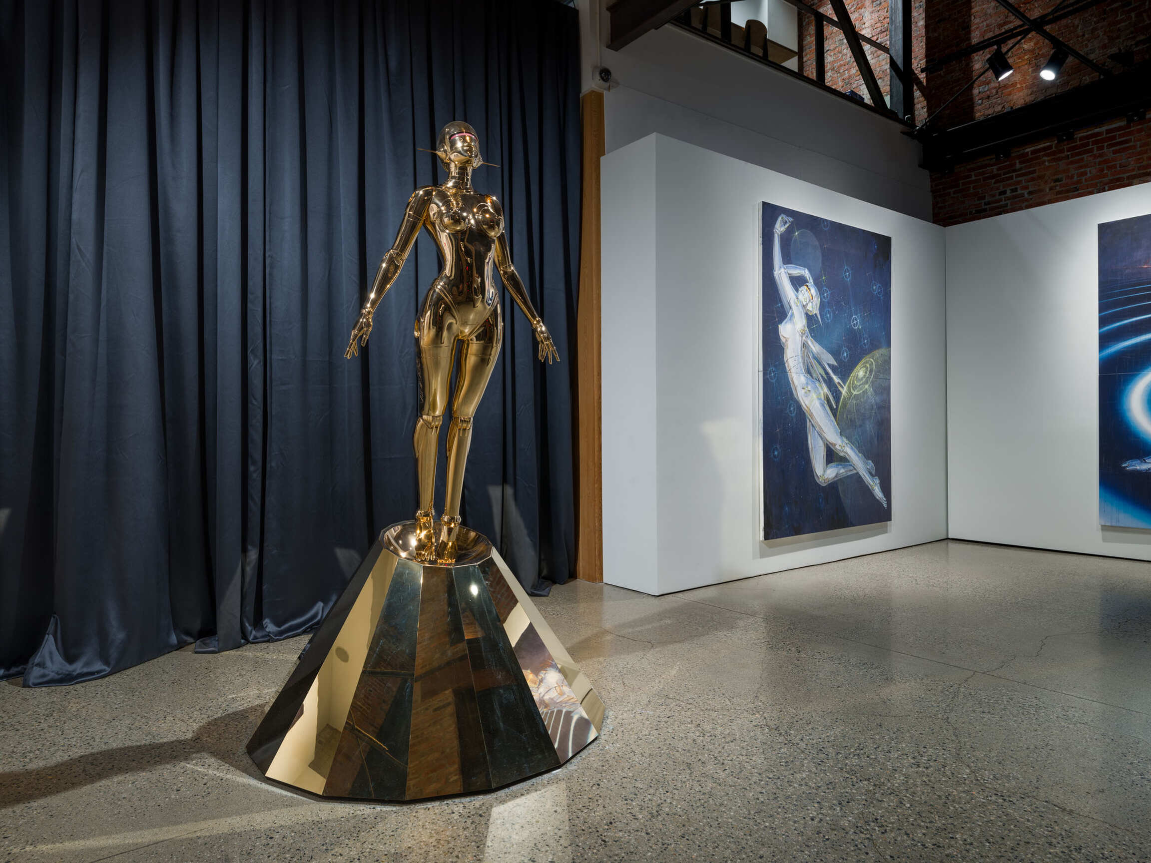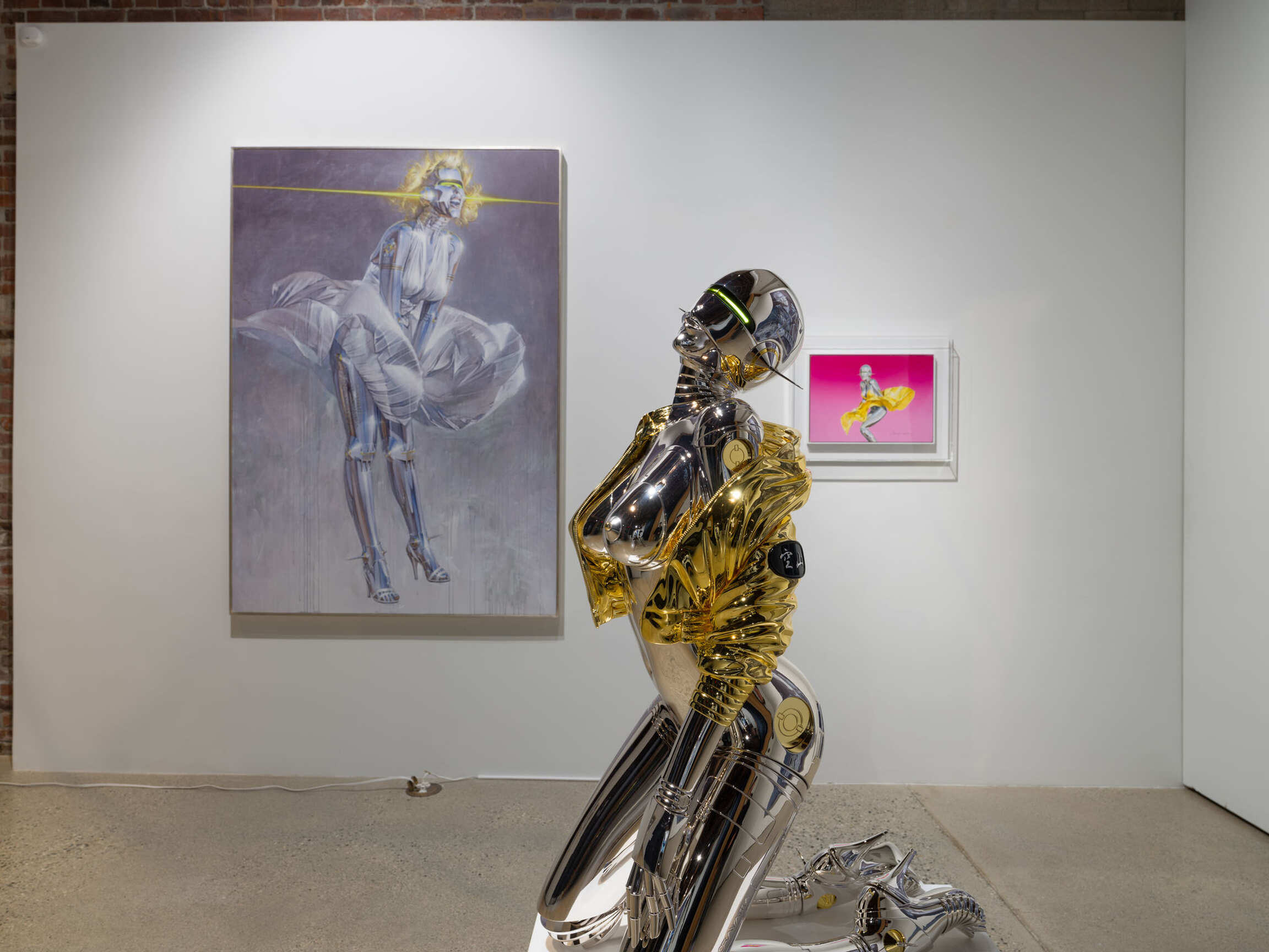 The exhibition Hajime Sorayama: Space Travelers included a curated selection of Sorayama’s iconic paintings and illustrations dating back to 1978, as well as his large-size “Sexy Robot” sculptures and immersive installation “Space Travelers”. This exhibition serves as a poignant reminder of the human exploitation of both living and non-living entities, and the vulnerability beneath the seemingly invincible metal skin, superior strength and intelligence. Sorayama’s thought-provoking depictions serve as a catalyst for introspection and a call for empathy