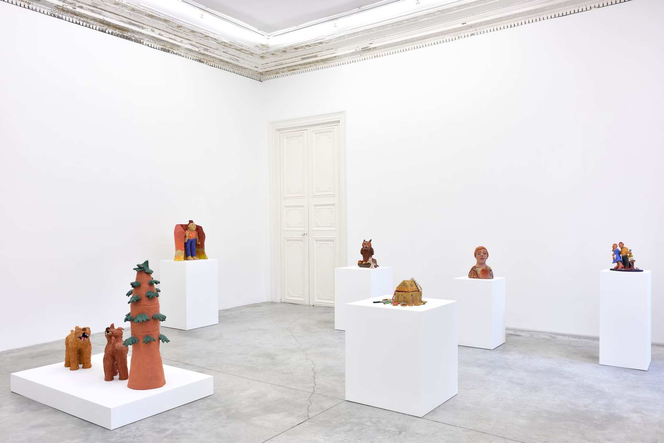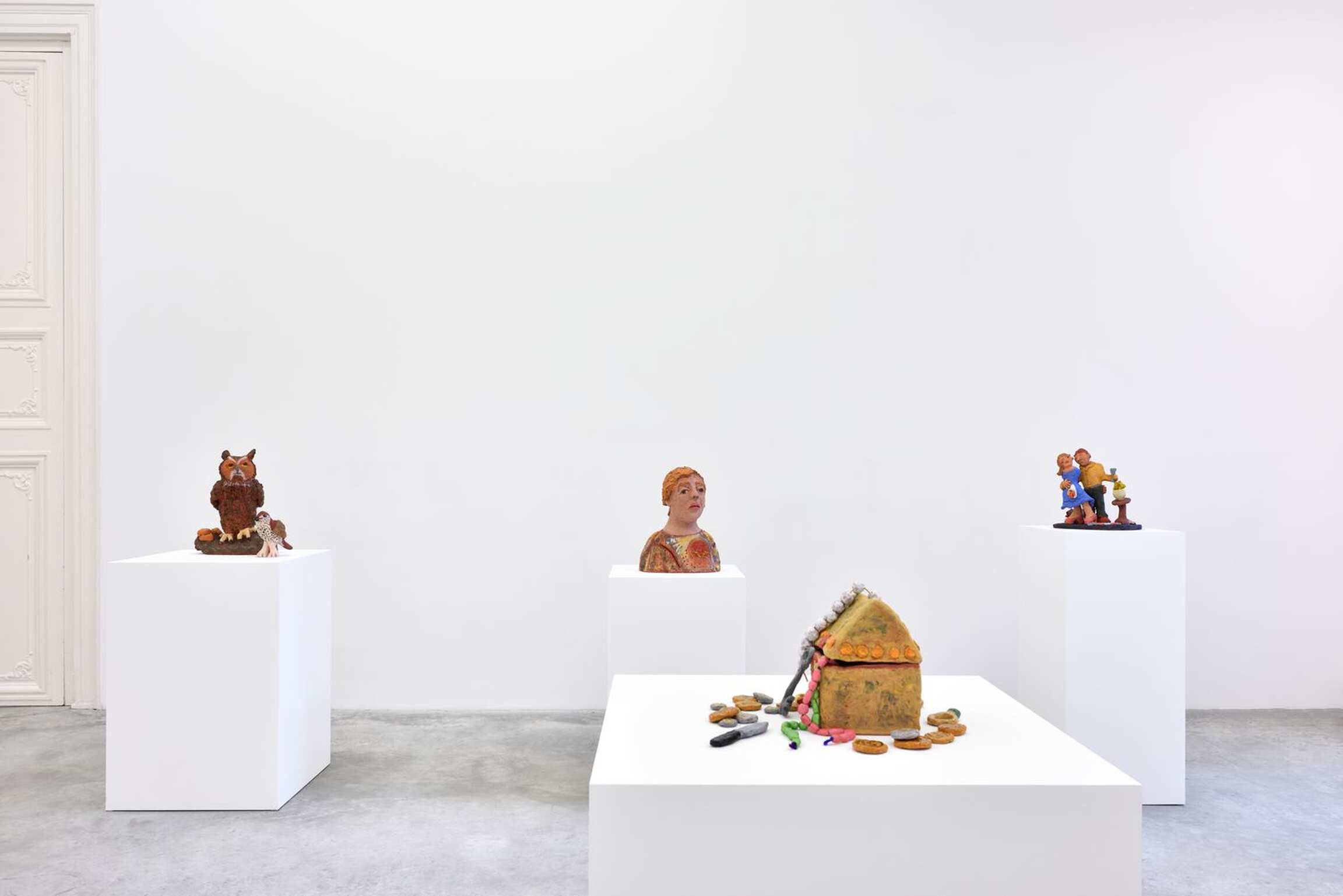 L’exposition présente une nouvelle série de céramiques colorées et figuratives.