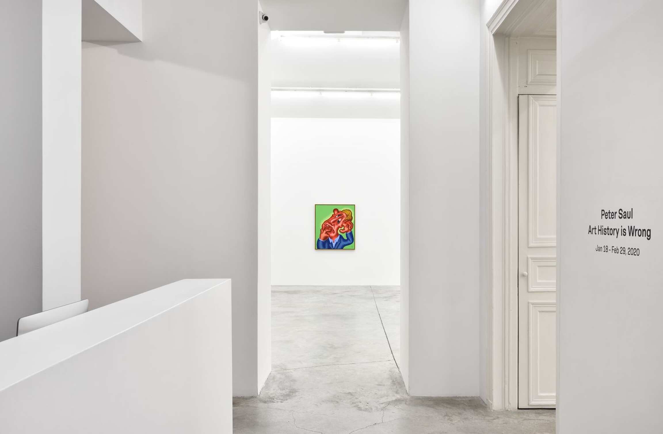 Vers la fin des années 1950, Peter Saul commence à mêler pop art, surréalisme, expressionnisme abstrait, imagisme de Chicago, funk de San Francisco et culture BD dans un langage qui lui est propre. Saul passe ses années formatrices près d’Amsterdam, puis à Paris et Rome, avant de rentrer à San Francisco en 1964. Dans son Amérique natale, il avait rêvé de Paris, de la vie de bohème ; sur place, il erre dans les rues de la ville, fumant Gauloise sur Gauloise. À l’instar de Jean Seberg dans À bout de souffle de Godard, il commence par vendre l’International Herald Tribune à la criée. Mais c’est Paris, capitale mondiale de l’art à l’époque, et il entrevoit la possibilité d’une carrière artistique. Saul, qui se trouve des affinités avec le travail du peintre chilien Roberto Matta, cherche à entrer en contact avec lui, et l’impensable se produit : Matta le met en relation avec Alan Frumkin, le marchand d’art de Chicago qui restera longtemps son galeriste. Saul expose aussi à Paris, à la Galerie Denise Breteau, et sa carrière décolle dans la capitale.