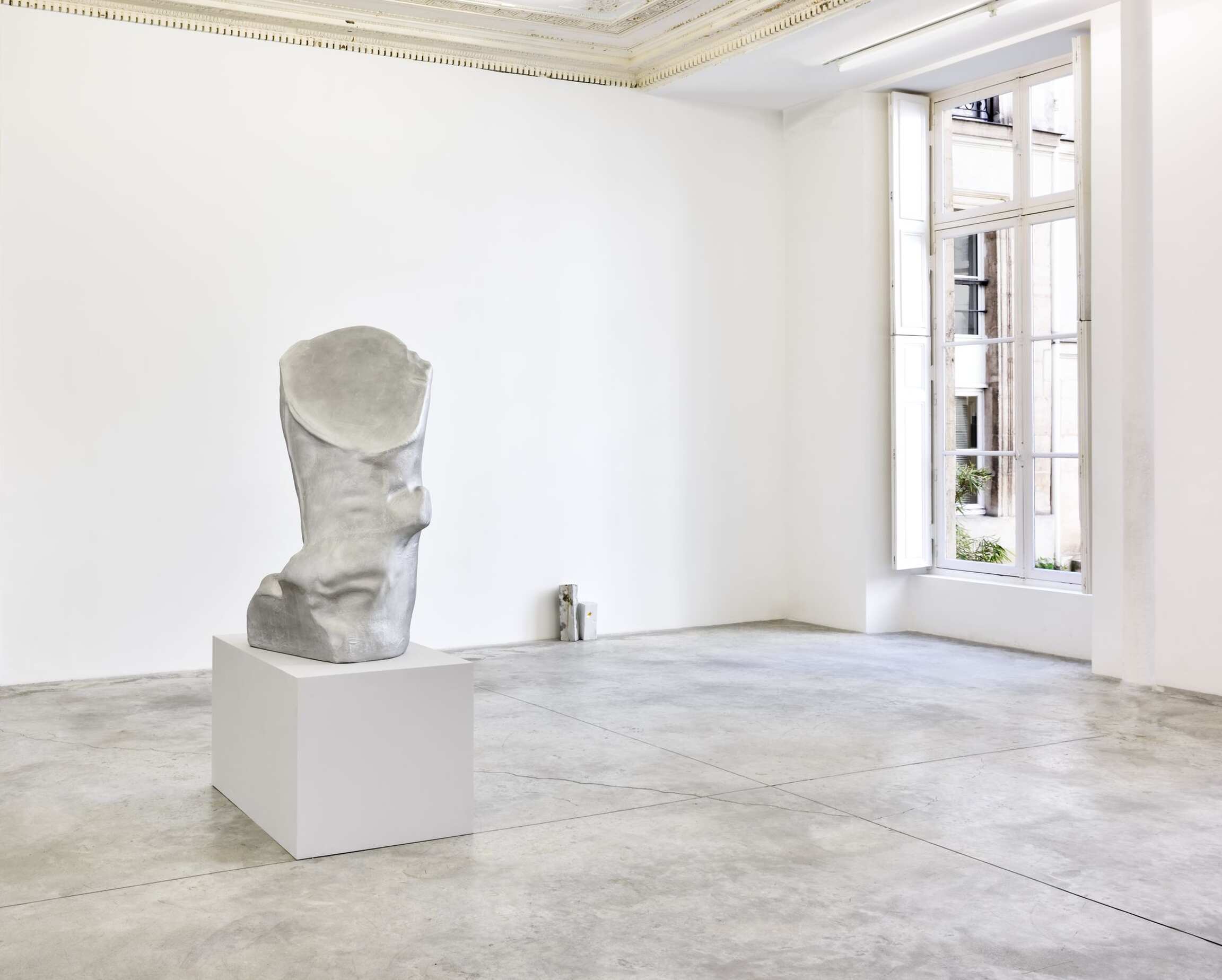 Dans la salle carrée une grande sculpture en aluminium moulée au sable intitulée Paw (2018) est exposée pour la première fois. L’œuvre fait écho à un ambitieux projet de l’artiste : une exposition en plein air au Madison Square Park de New York, qui sera inaugurée en septembre 2018 et présentée jusqu’en avril 2019. Cette exposition jouera sur les notions ambivalentes d’espace public et d’espace privé en faisant référence à la fois à un parc de sculptures classiques et à un intérieur domestique. Ce projet, qui cherche à insuffler un nouveau langage en termes de rassemblements publics, trouve son origine dans le travail effectué par Arlene Shechet en 2014 à la Manufacture nationale de porcelaine de Meissen, près de Dresde en Allemagne. Il s’était par ailleurs prolongé par une intervention inédite à la Frick Collection de New York entre mai 2016 et avril 2017.
