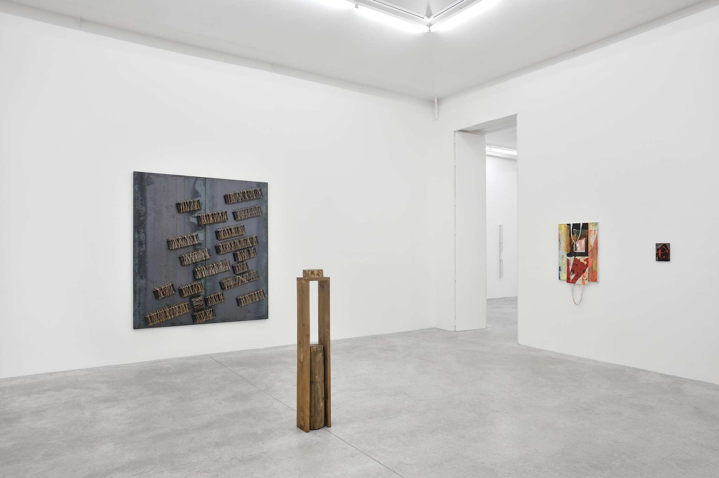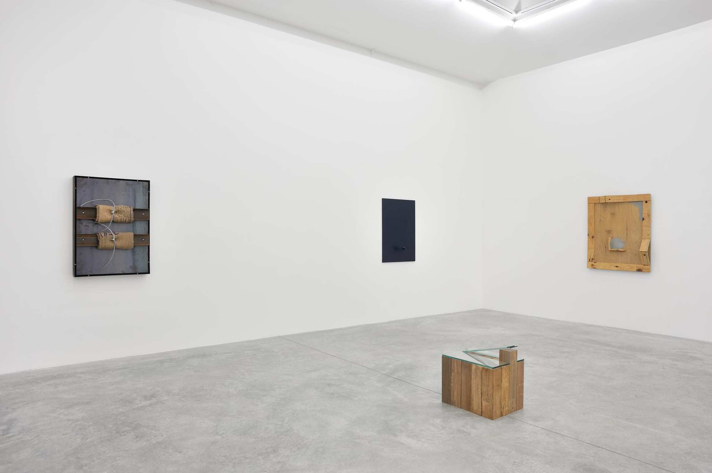 Although the work of Jannis Kounellis and Kishio Suga developed separately within a distinctive national context during the postwar period, their work shares affinities in an approach to material and process, which articulates the artwork as a site of contingency, open to the possibility of fragmentation and ephemeral states. Japanese artist Kishio Suga is one of the most prominent figures of Mono Ha (School of Things), whose work emphasizes the close relationship between the fundamental nature of objects and the spaces in which they exist. In a series of wall-mounted assemblages presented here, Suga employs natural and industrial materials to create intimate pieces sparked with improvisational energy, reflecting the physical act of their construction. Similarly, the sculptures of Jannis Kounellis – one of the forefather’s of the Italian Arte Povera movement – can be characterized by the juxtaposition of objects and materials that may be physically and culturally antithetical to one another. Ordinary objects held a directness and immediacy for Kounellis, who sought to unite art with everyday lived experiences.