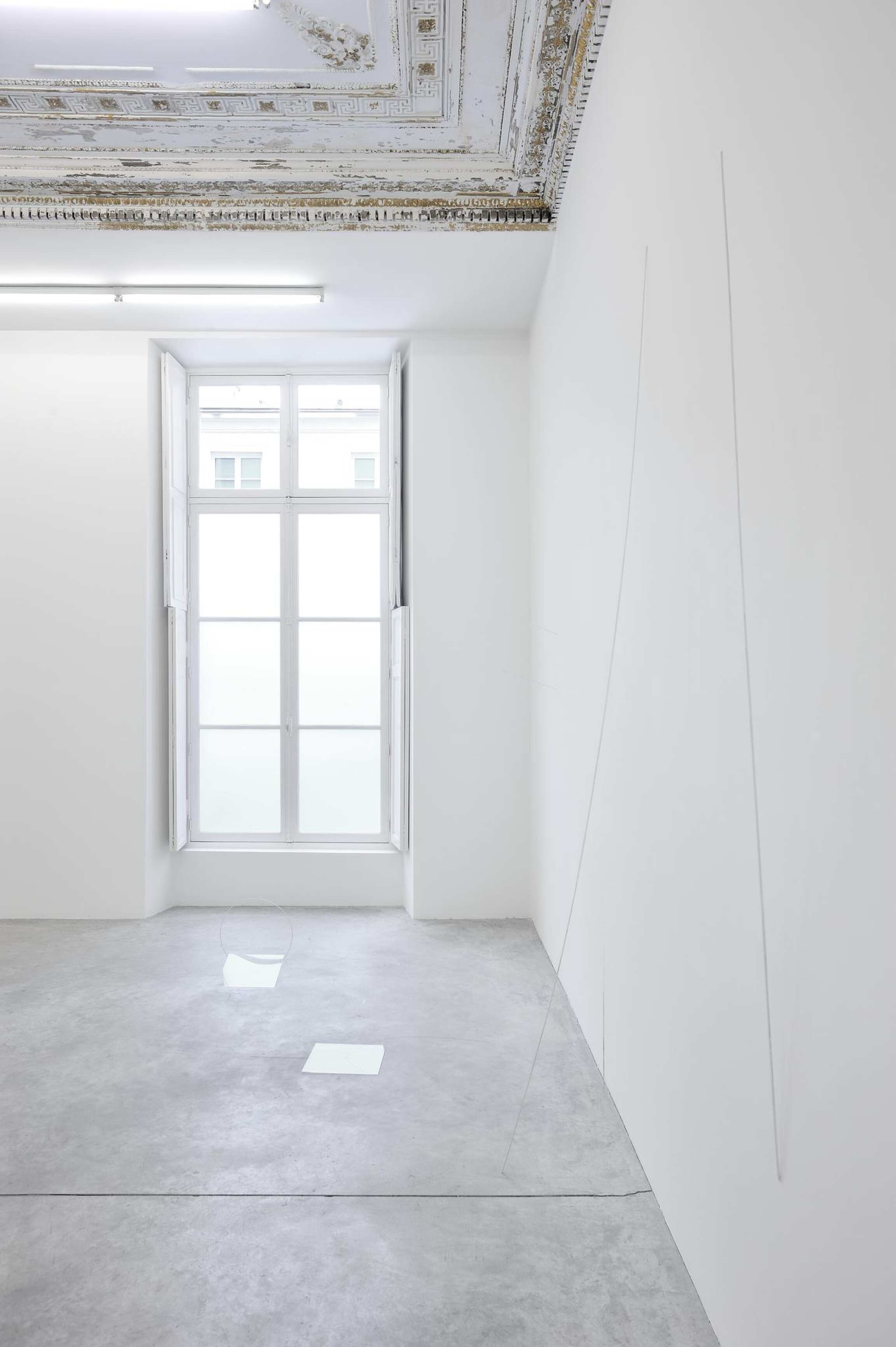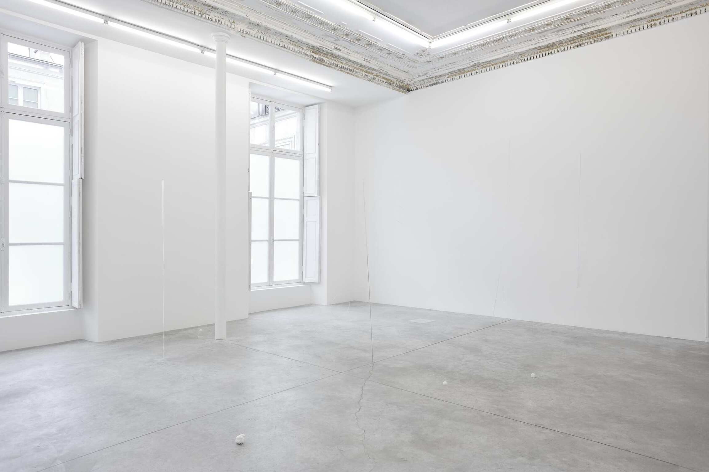 Together, the works of Joel Shapiro and Fernanda Gomes create a new landscape of form and meaning, which insists upon a phenomenological experience of space. Based in Rio de Janeiro, the work of Fernanda Gomes emerges from the traditions of Brazilian Constructivism and the Neo-Concrete. Created in situ, her installations reflect upon a process of discovery, assimilation and appropriation. Starkly minimal in her aesthetic approach, Gomes extracts discarded objects from the world – such as cotton thread, nails, wood, plastic bags, wire, or paintbrushes – most of which she paints the color white. Choreographing barely noticeably interventions among the gallery’s walls and physical space, her work requires extended observation as she poetically manifests fragments from the world. “The state of things on their way to disappearing appeals to me,” she explains, “they have a strange density in contrast to their precarious materiality.”