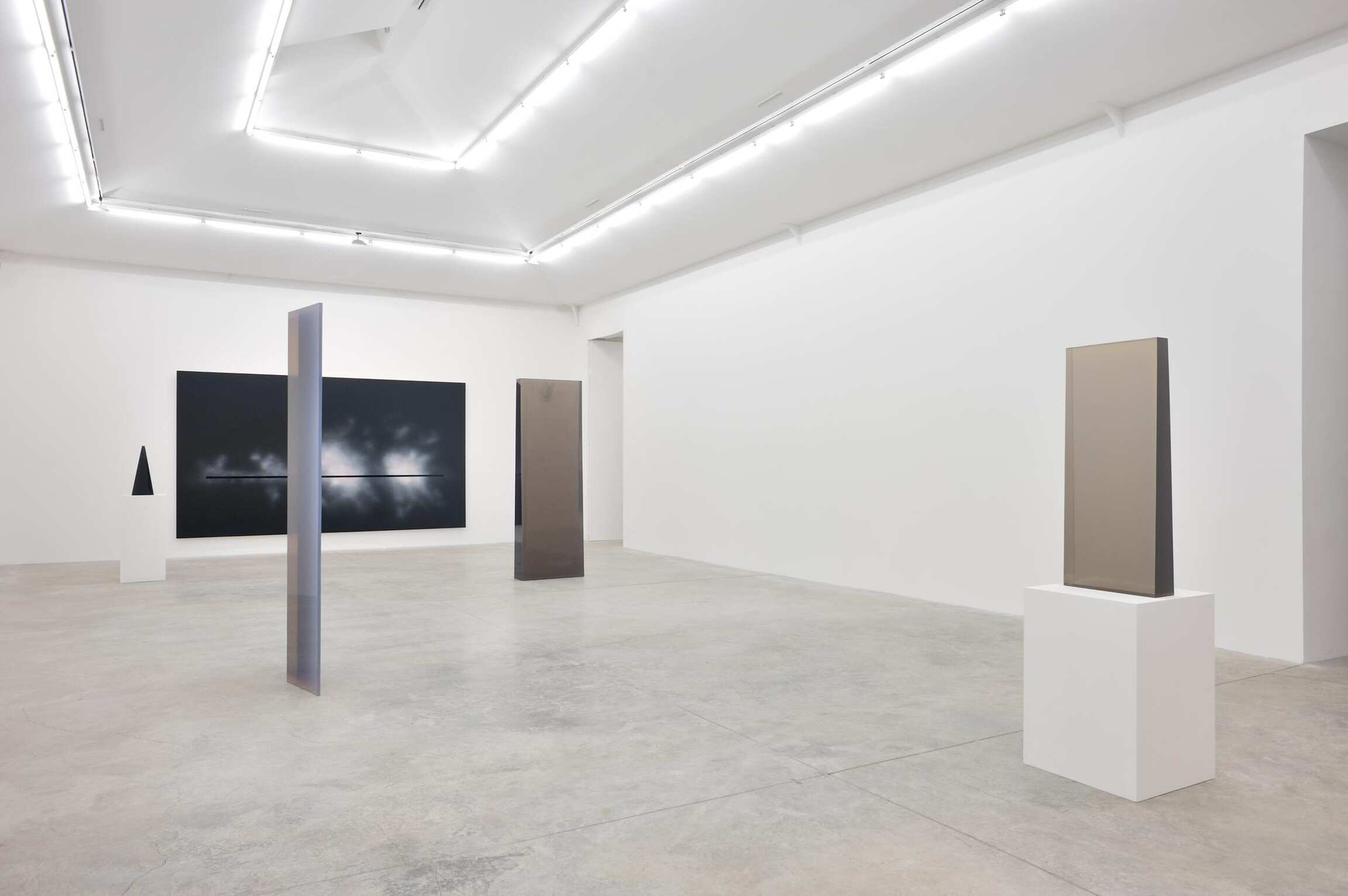 Noted for ethereal, luminous or shiny surfaces, the works by these artists not only evoked the Angeleno qualities of bright sunlight, filtered through expansive, foggy skies, but also relentlessly explored the viewer’s perceptual experiences, and the properties of non-traditional, industrial synthetic materials, which became available during those decades due to the booming postwar aerospace and manufacturing industries. According to Catherine Grenier, curator of the exhibition Los Angeles 1955-1985. Birth of an Art Capital (Centre Georges Pompidou, 2006), “If there is a single vector channeling Los Angeles artists as a whole […] it is the value set on experiment.” Artists included under the umbrella term of the Light and Space movement includes Peter Alexander, Larry Bell, Mary Corse, Robert Irwin, John McCracken, James Turrell, Craig Kauffman or Helen Pashgian, and, of course, DeWain Valentine -- although it should be said, as often in any group or movement, that few of these artists accept comfortably this label, or any label. Almine Rech Gallery's history is closely associated with this group, however : it is important to signal that the Gallery opened its first show with James Turrell (this was the first European gallery exhibition Turrell had in November 1989 in Paris); and in 1991, Almine Rech Gallery proposed the first exhibition of John McCracken in Paris.