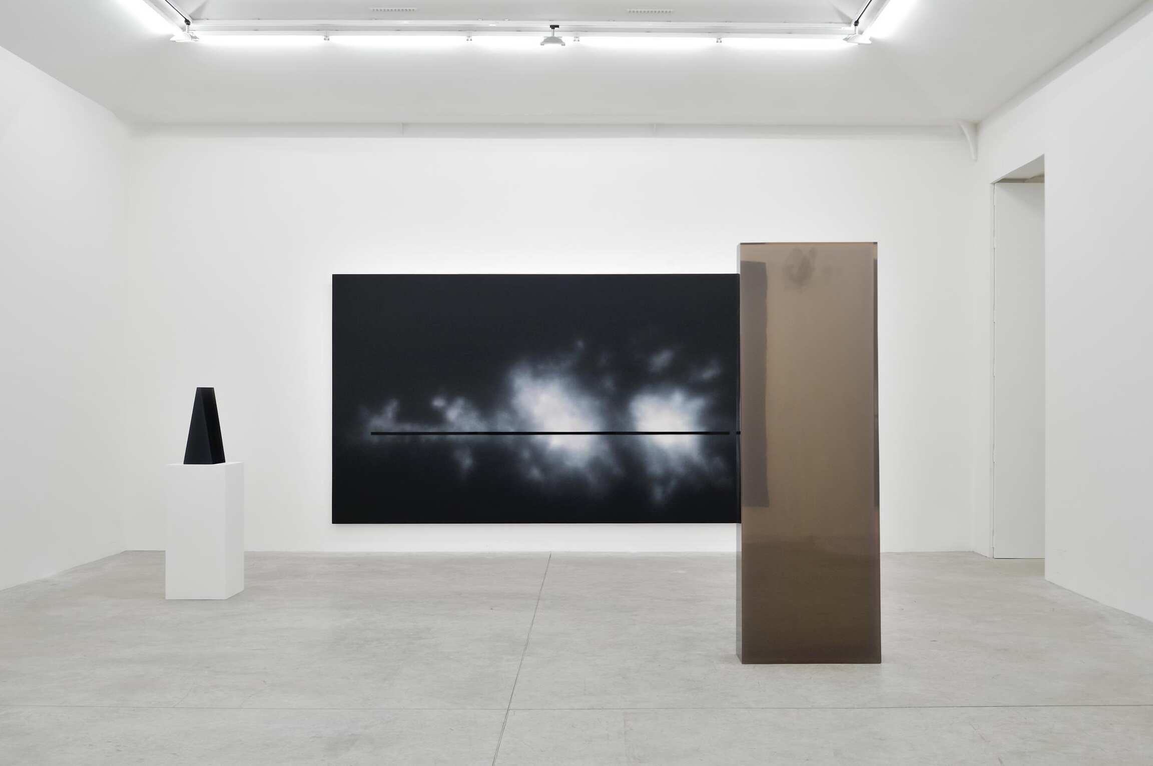 Les visiteurs de l’exposition pourront également voir quelques exemples des dernières peintures de Valentine. Bien qu’elles évoquent un langage minimaliste empreint de sensualité, elles sont néanmoins, elles aussi illusionnistes dans la manière dont elles suggèrent une surface atmosphérique peinte et une ligne d’horizon rougeoyante, élaborées à partir de résine polymère acrylique.