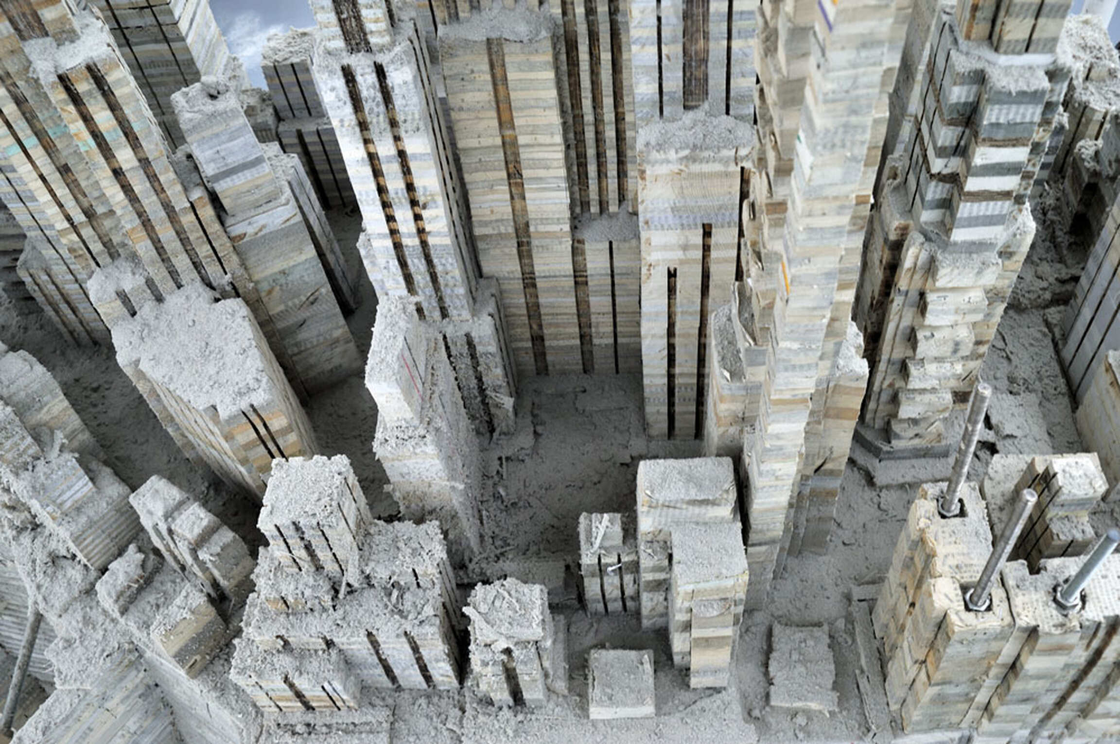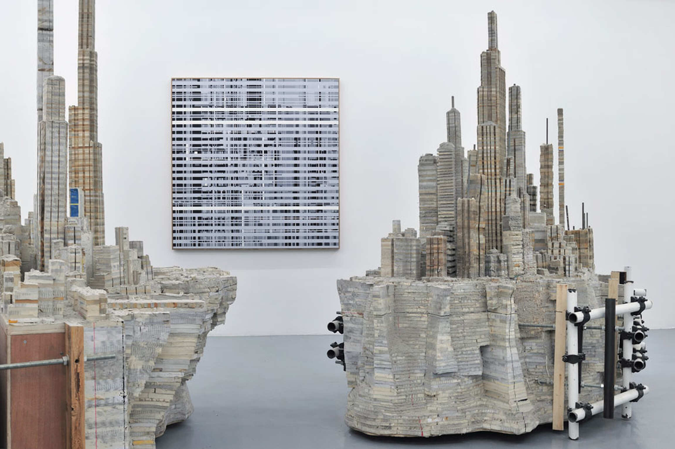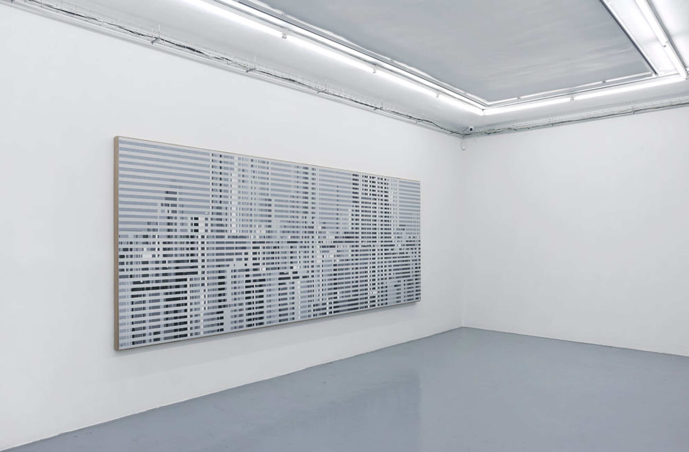 The installations, paintings and videos of Liu Wei, the artist spearheading the new Chinese art scene, constantly oscillate between order and disorder. Through his work, Liu Wei translates the chaos of his native city, a city that is in a permanent state of development and which keeps reinventing itself to fill the exponential needs of its hyper-productivity. Made out of schoolbooks, his at times sprawling installations waver between utopia and dystopia. They depict cities in a state of metamorphosis, home to a range of iconic buildings, from the Pentagon to Saint Peter’s Basilica, among others. Liu Wei refuses the ruling principle of an identifiable style and conventional aesthetic criteria. His work is an attempt to perpetuate the precepts of a country with a Confucian tradition, as can be seen in the series of paintings Purple Air (2005-2011) and Meditation (2009-). At first sight, the works in Purple Air resemble a reflection on the typically Western notion of a univocal, horizontal landscape. Besides being a homage to Richter, the series conveys above all the fragmented vision of a polluted and gridded city, somewhere between a kaleidoscope, a TV test card and a bar code, a vision which brings to light more or less perceptible worlds. The paintings in the Meditation series, on the other hand, revert to a horizontal vision of the world. Consisting of broad-brush strokes, these canvases, depicting both the break of day and night itself, reflect the growing distance between Liu Wei and an urban architecture that is both alienating and stimulating. Above all, these canvases evoke the notion of perspective in the pictorial field and the manner in which the artist positions himself in relation to his own artistic practice.