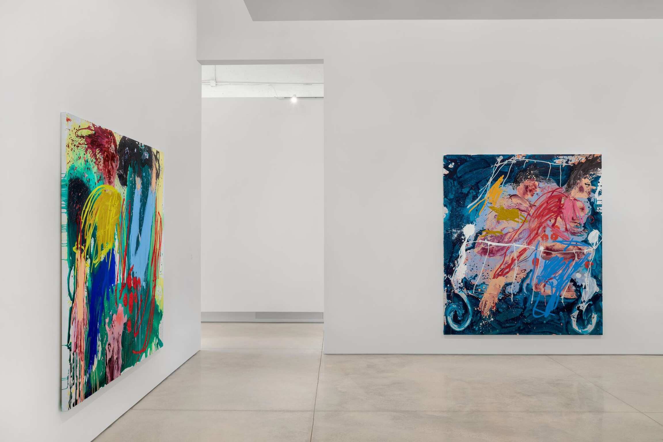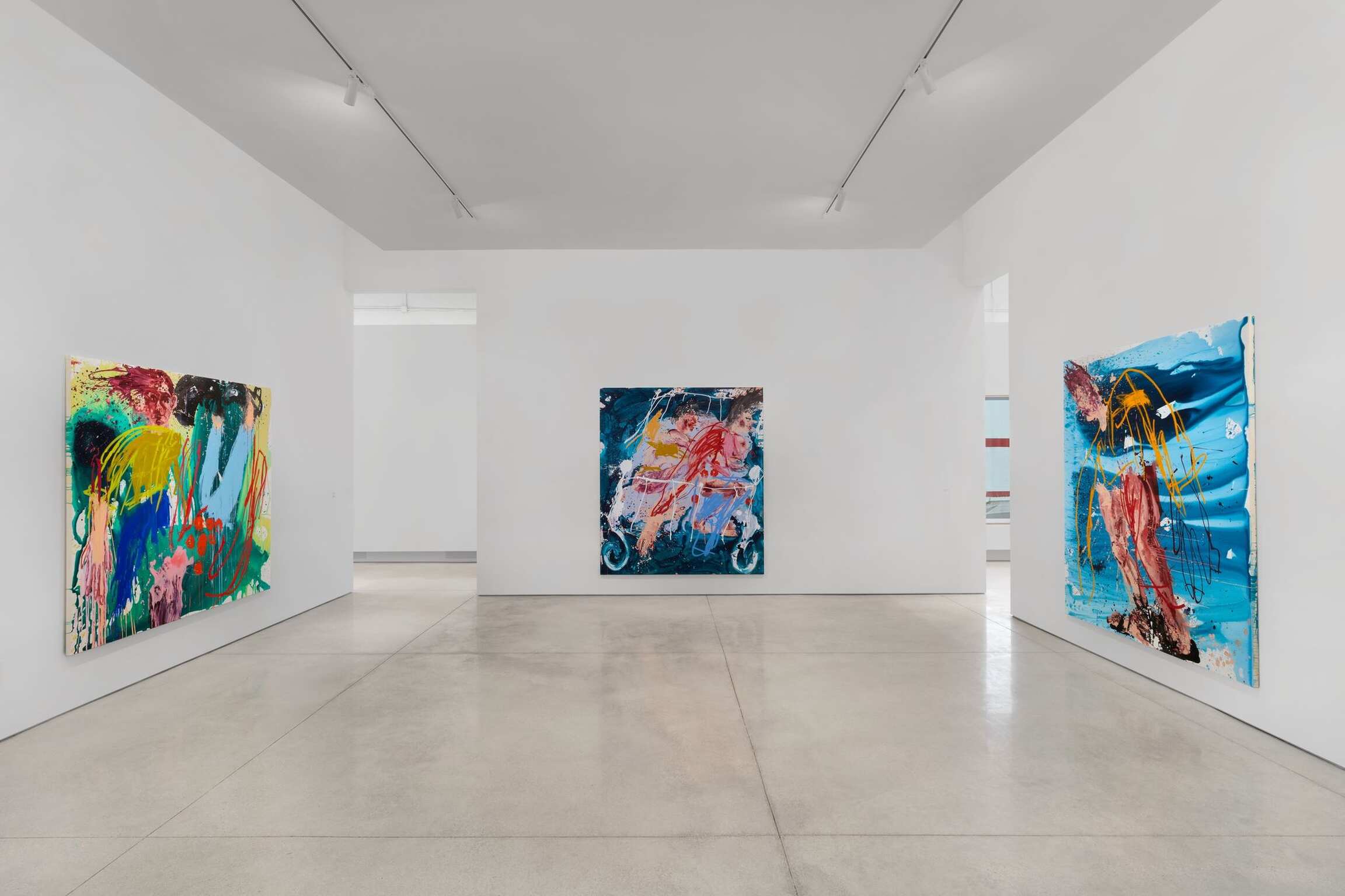 Through evocative, highly expressive and boldly colorful works, Cristina de Miguel investigates the physicality of gesture and the corporeality of her medium, painting. In de Miguel’s paintings, movement strikes fields of color to create figure and reference, yet never narrative, in order to explore the materiality of the painting. Among the reeling forms, the artist incorporates vigorous brushwork and experimental fields of thinned acrylic.