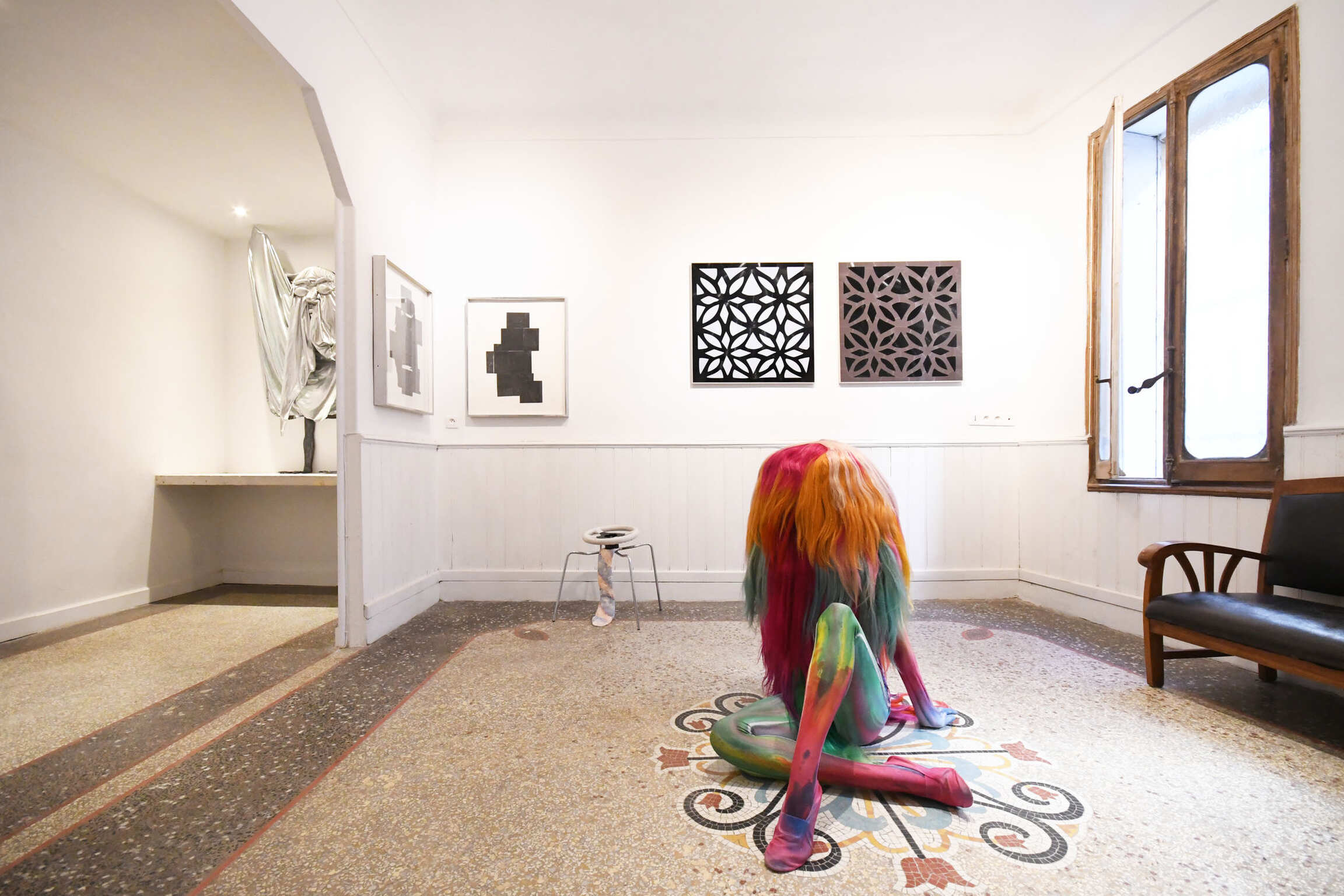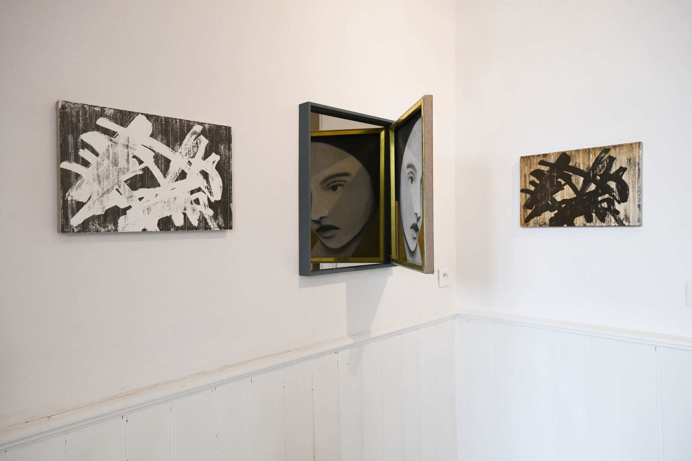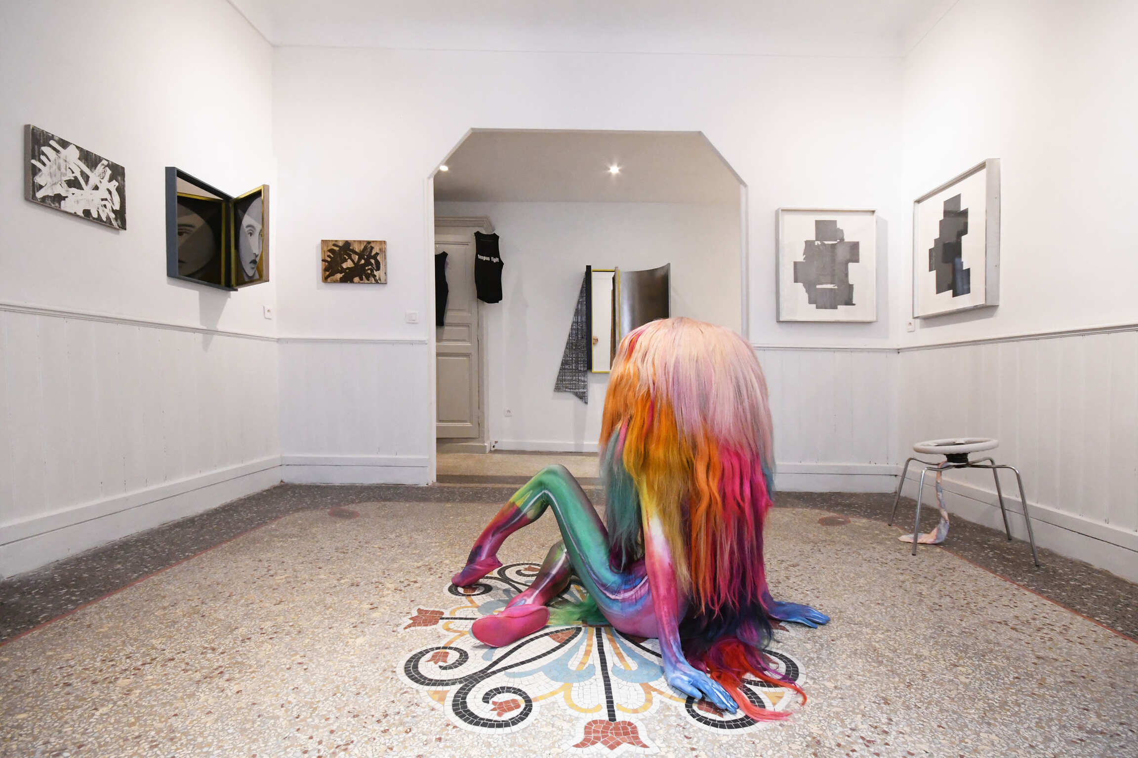 This first exhibition in this venue is a kind of presentation of our identity through works by artists we have regularly exhibited and new ones. As often in our exhibitions, there is no particular topic, perhaps a preoccupation with the inhabited space as an exhibition space. Nevertheless, the further the project has progressed, the more some directions have been creeping up on us. There's a lot of talk about doubles and mirror games, in which female figures and hybrid creatures emerge. Because this house is double in its very structure, originally two old houses joined into one, probably from Joseph Imbert's time. Mirror play, parallel dimensions: this place leaves plenty of room for the imagination and the experimentation of multiplying and telescoping time-spaces.