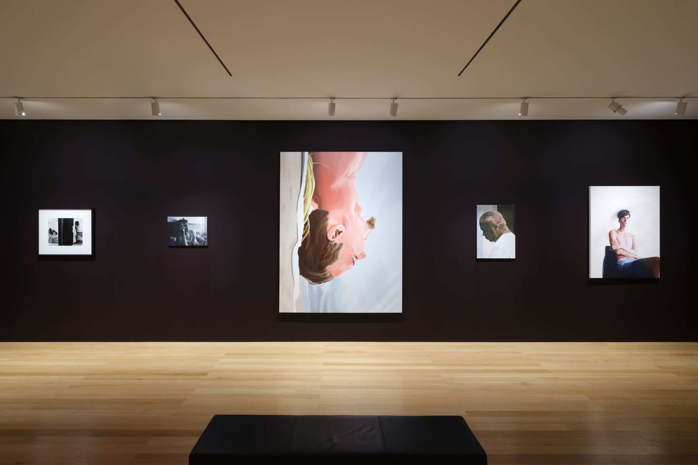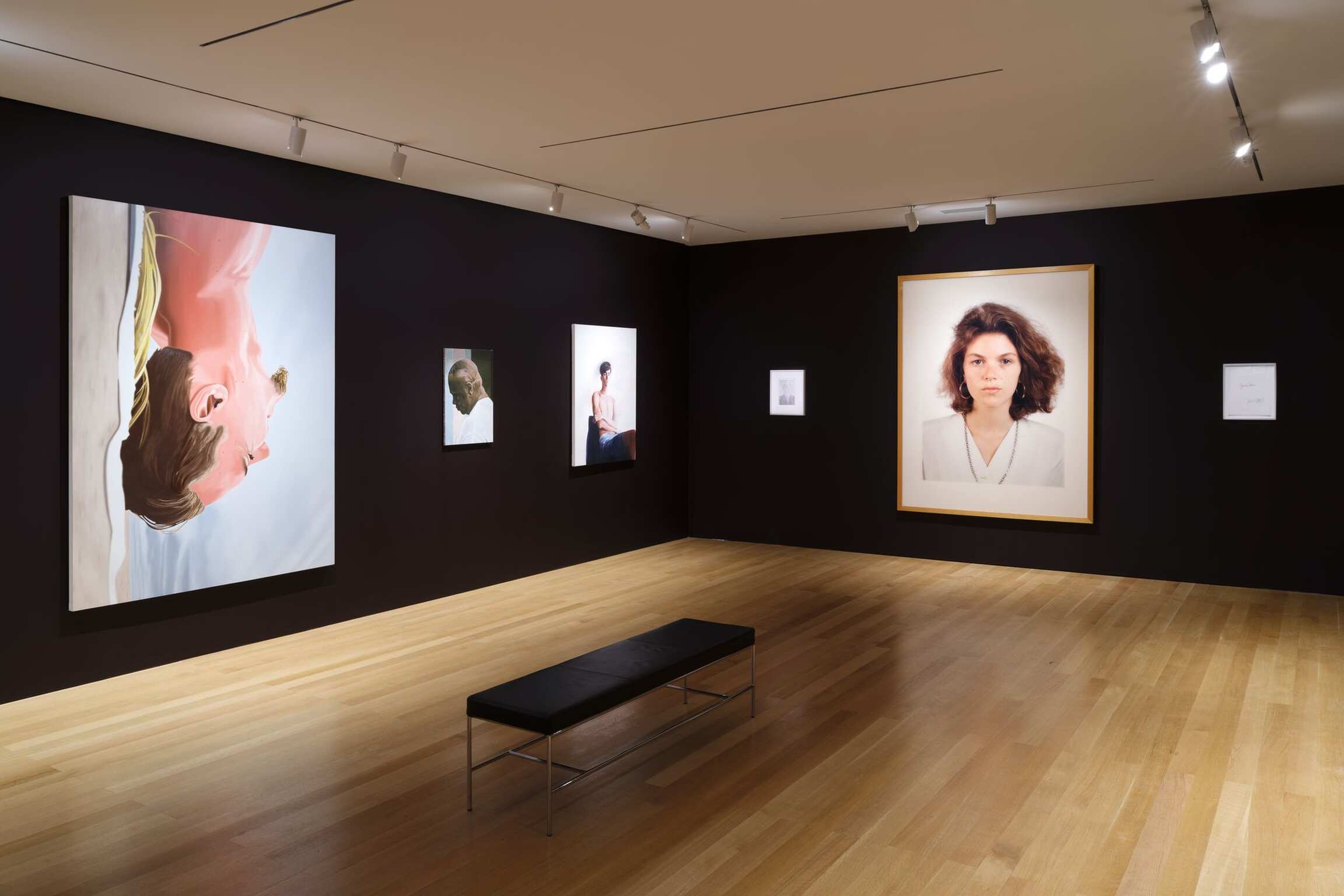 Friends & Lovers begins with Christopher Duffy’s wall-mounted bronze plaque aptly stating If Your Friends Knew My Friends, They Would Be Our Friends., 2012, paired with a floor-to-ceiling installation featuring nearly three dozen paintings, pastels, and graphite drawings by Billy Sullivan. Created between 1974 and 2019, each work reflects the individual personalities of Sullivan’s eclectic New York social circle of artists, club icons, friends, and performers; presented together they create a family tree of sorts for the artist and a portrait of New York’s underground creative scene over the past four decades. Jim Torok’s miniature graphite headshots, titled Williamsburg Artists & Friends, similarly creates a diary of his neighborhood and sphere of influence. Thomas Ruff’s Portrait (J. Baumgarten), 1989, is part of a larger series of passport-style photographs that document Ruff’s friends and art-school colleagues. Set to monumental size, yet devoid of any superfluous background details, these spare images reveal nothing of the sitter other than a connection to the artist. Several artist portraits by their artist friends, including Alex Bradley Cohen’s Jennifer Packer, 2017, Nicole Eisenman’s Lee and TM, 2015, Jenna Gribbon’s Doron, 2020, Elizabeth Peyton’s Ken and Nick (Ken Okiishi and Nick Mauss), 2005, among others, further elucidate the closeness of artistic communities and chosen families.