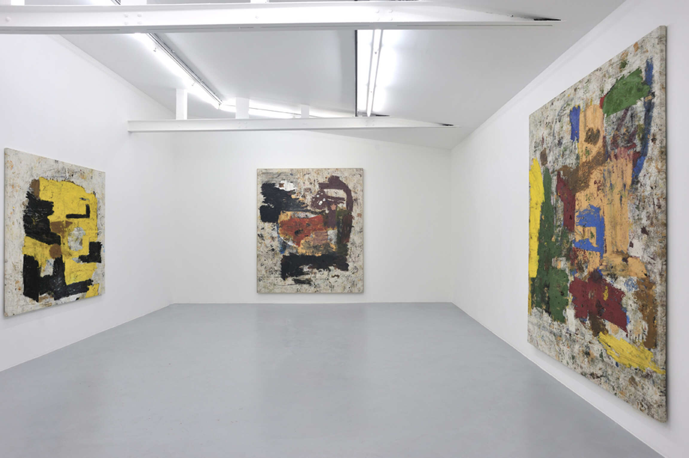 The selection of works he is currently presenting at the Almine Rech Gallery is part of a new ensemble, consisting of large-scale paintings on unprepared canvases and for which he used oils, oil sticks and pencils.