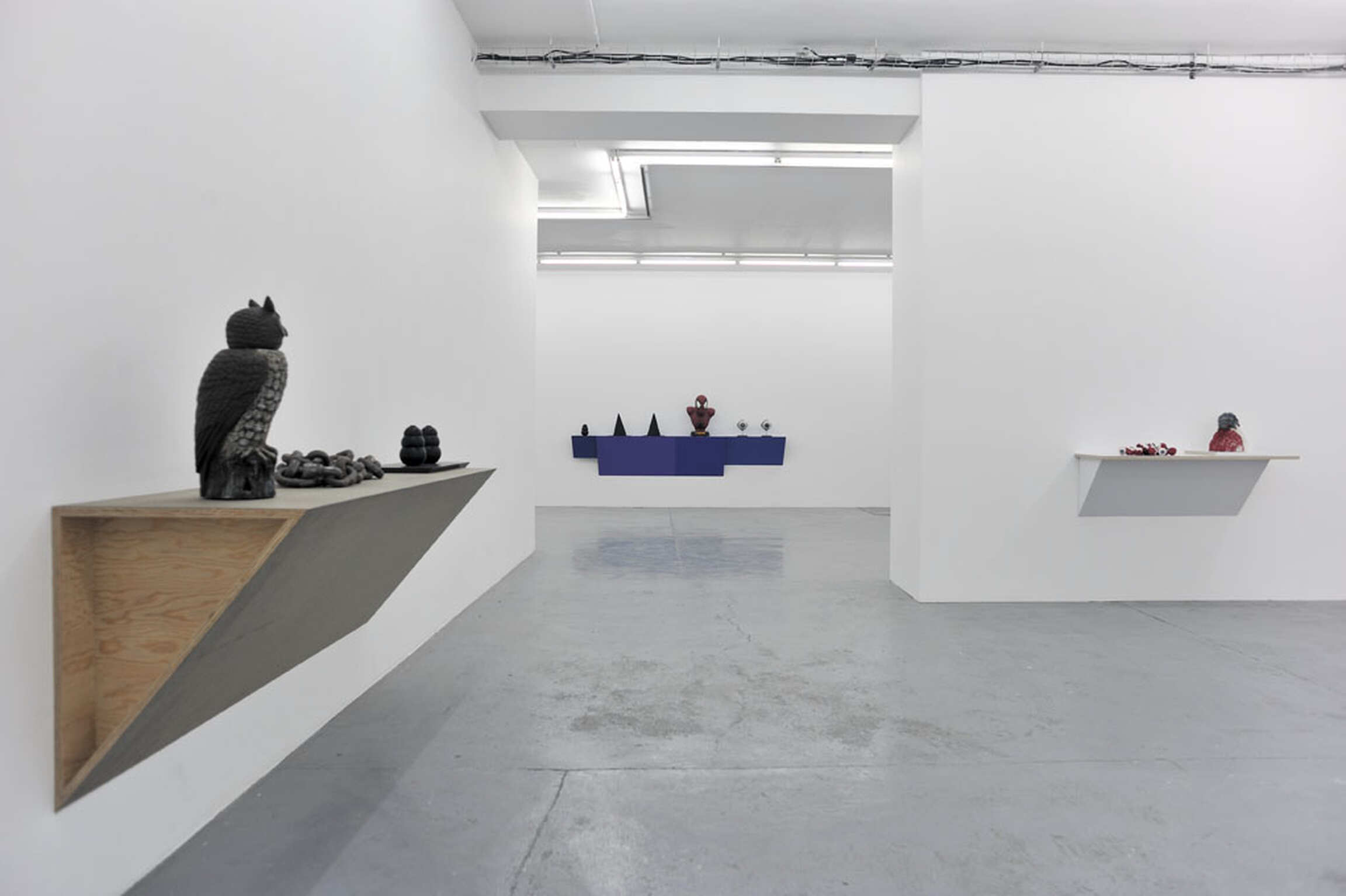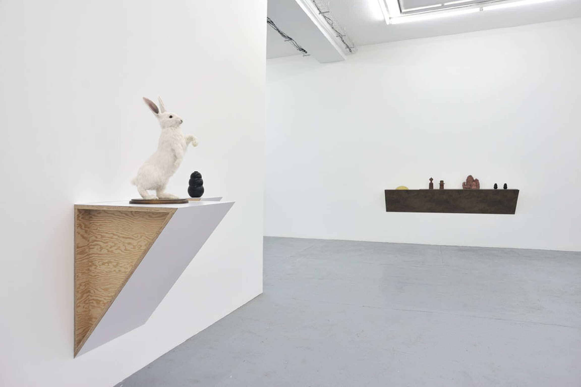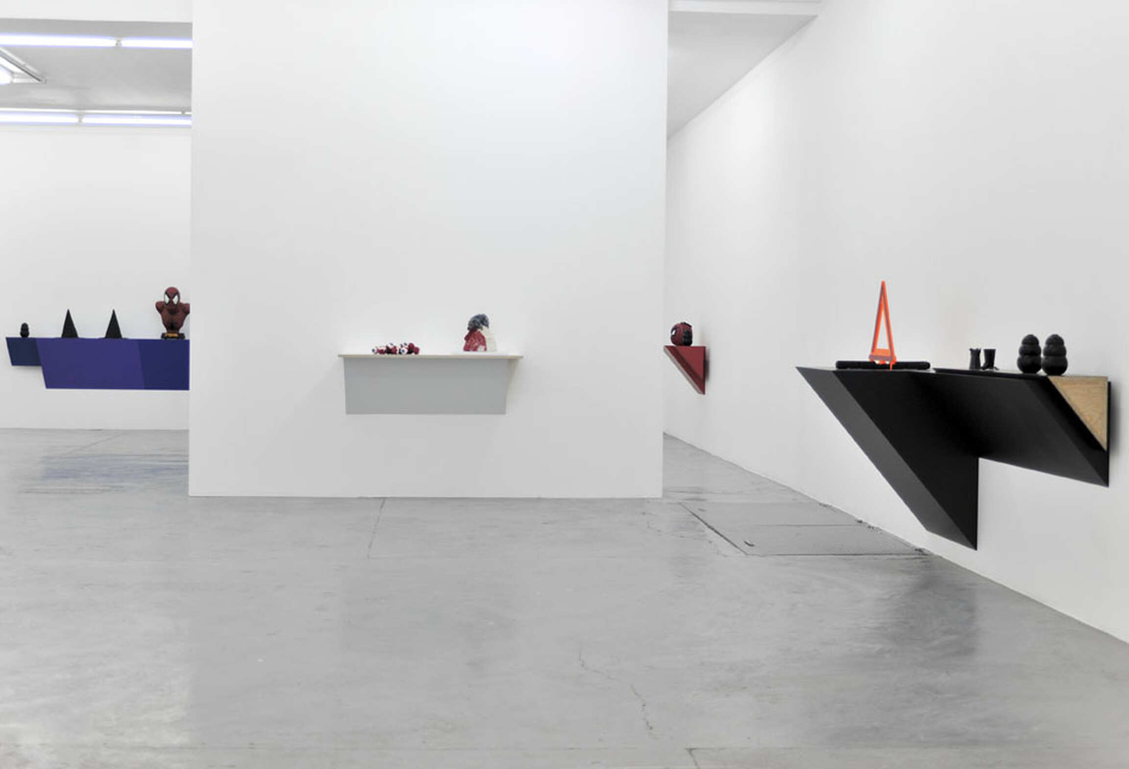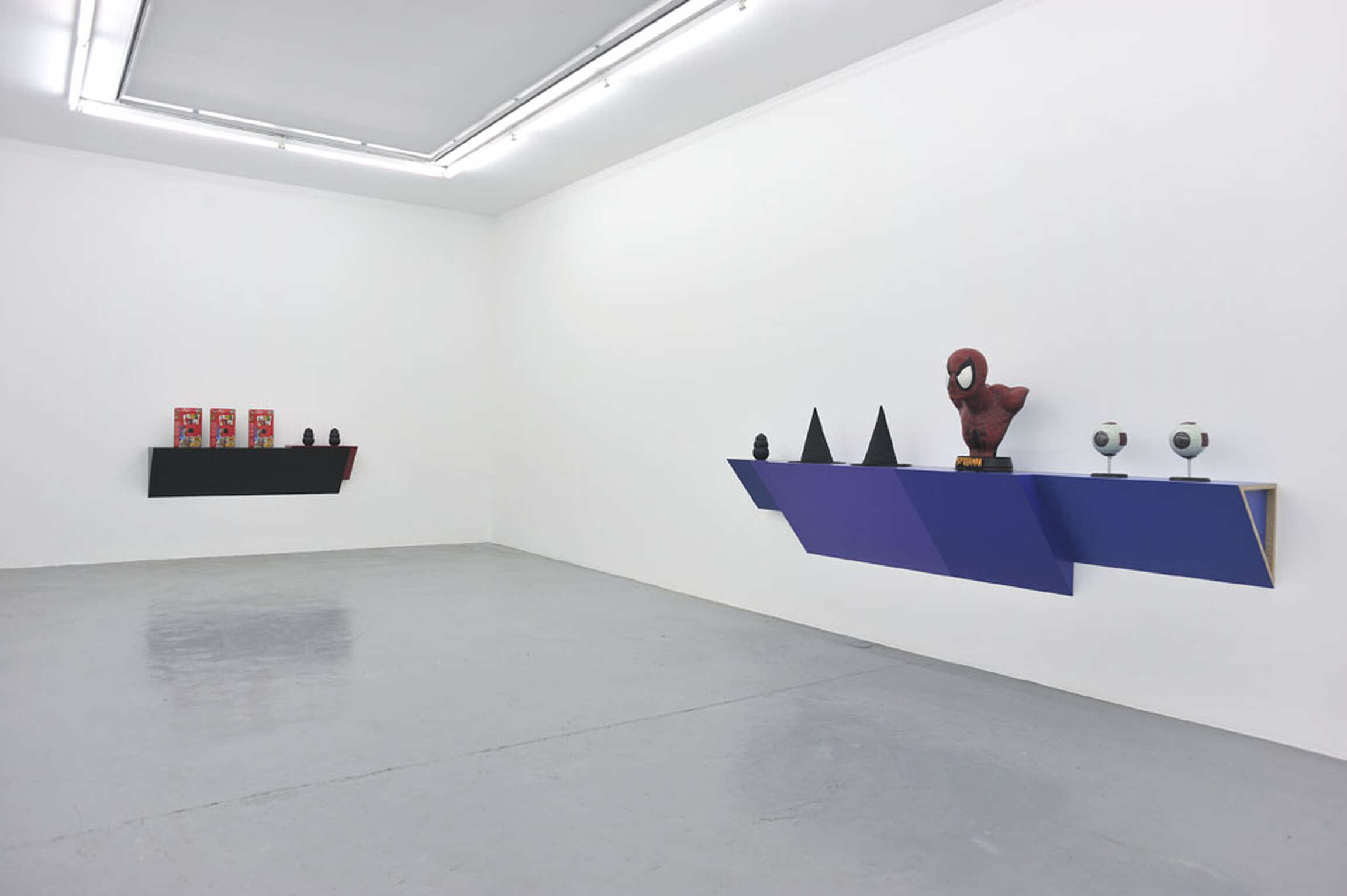 Haim Steinbach’s art is based on the selection and arrangement of already existing objects. The objects offered are culled from a wide range of sources: found, borrowed, gifts, personal and private collections, flea markets, yard sales, supermarkets, department stores and eBay. They are positioned as if they were staged, arranged like notes in a musical score or words in a sentence. An arrangement of objects, conscious or not, always tells a story. In Steinbach’s works, the choice of objects and their grouping reflect their typological affinities and metonymic relationships.