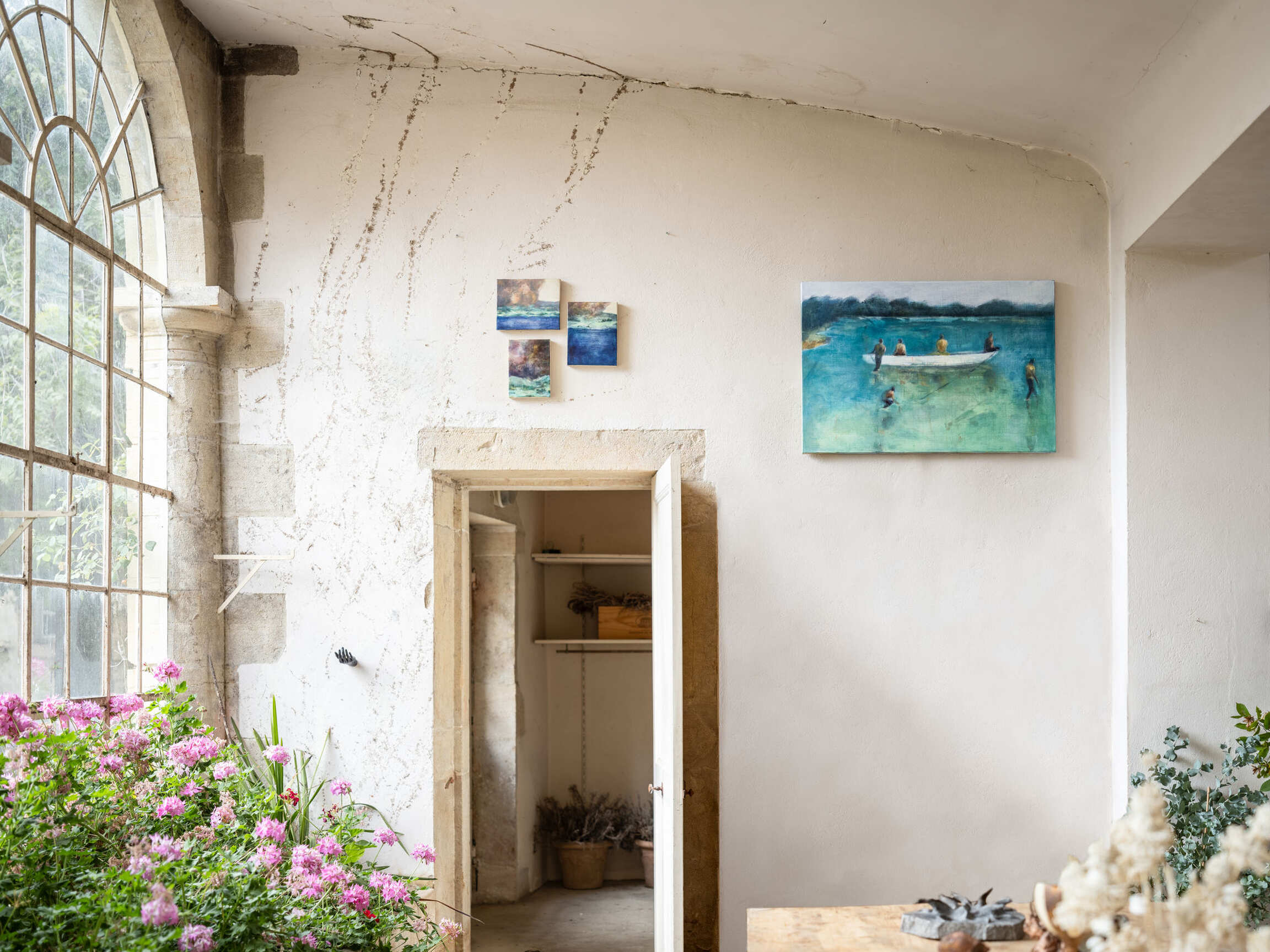 Just across the street from the Couvent is the L’Ancien Théâtre, which was built to be the main theatre for the town of Beaune. Also privately owned by the Gagey family, this location serves to think about Story. On the ground floor will be several works by the French/Côte d’Ivoire artist Romeo Mivekannin exploring reinterpretations of renaissance paintings, presenting a reworking of visual history. Walking up the stairs, the visitors are presented with a dialogue between two artists exploring gesture, movement and meditative action. Hanging on the theatre walls are paintings by established Australian artist Gregory Hodge. Layered, delicate, they reference di erent fabrics and their stories, from their relationship with drapery over to trade and movement. These are in conversation with a forest by Italian artist Chiara Capellini, an installation that includes various ethereal-looking paintings, standing from the ground, encouraging a sea of wonder and subconsciousness.