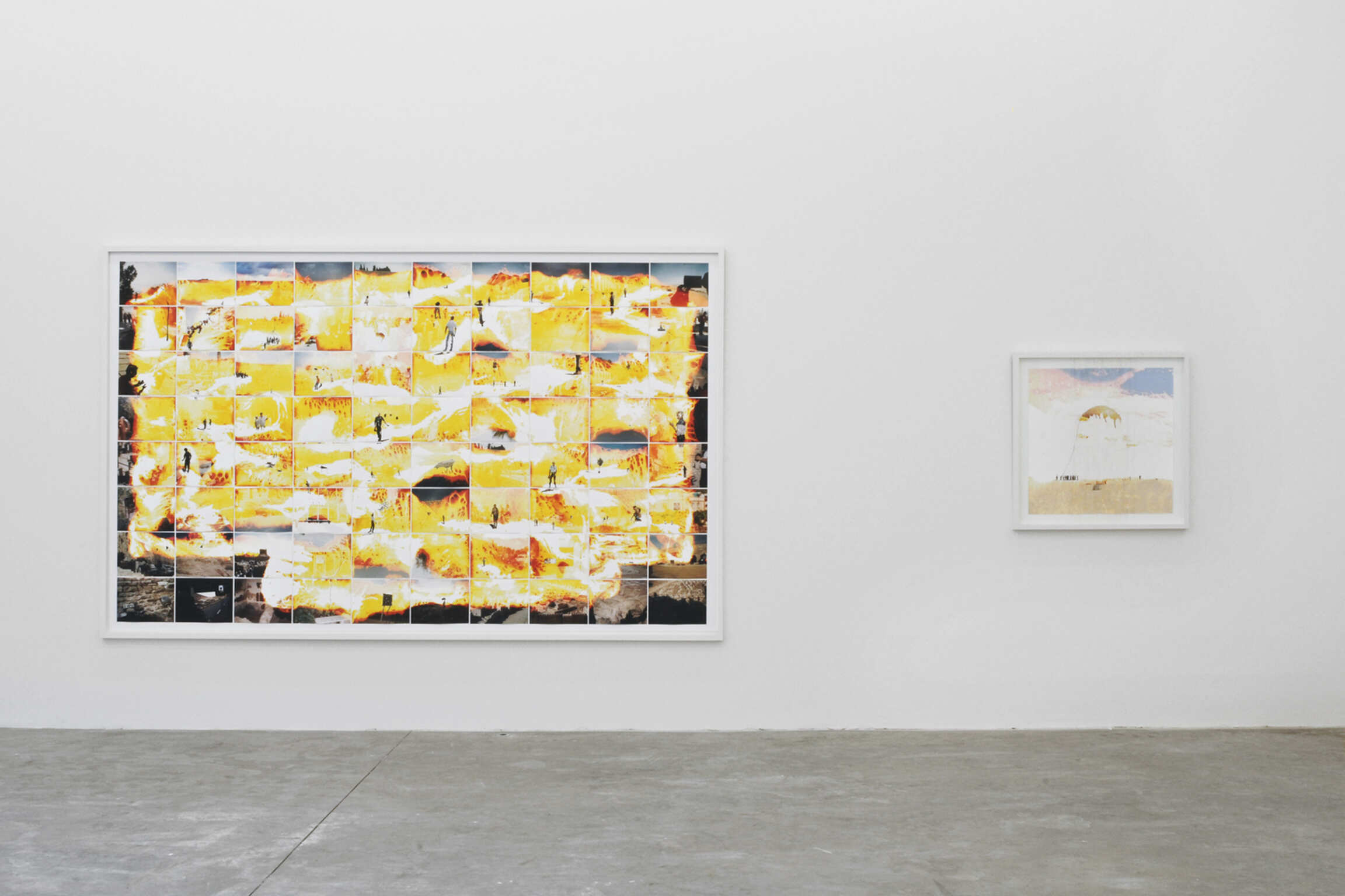 Dans ses dernières oeuvres, Mann utilise des photographies trouvées représentant des zones de conflit à l’histoire complexe du Moyen-Orient, qu’il soumet à un processus de sélection et d’effacement. En peignant sur des portions de photographies couleur agrandies avec un vernis transparent et en effaçant ensuite des portions non protégées de l’image avec de l’eau de javel, il cherche à faire émerger des significations nouvelles et abstraites des photos de famille, de voyage ou des divers documents qu’il s’est appropriés. La photographie est modifiée physiquement et contextuellement : dès lors, l’oeuvre oscille entre image et objet, photographie et peinture, réel et imaginaire.