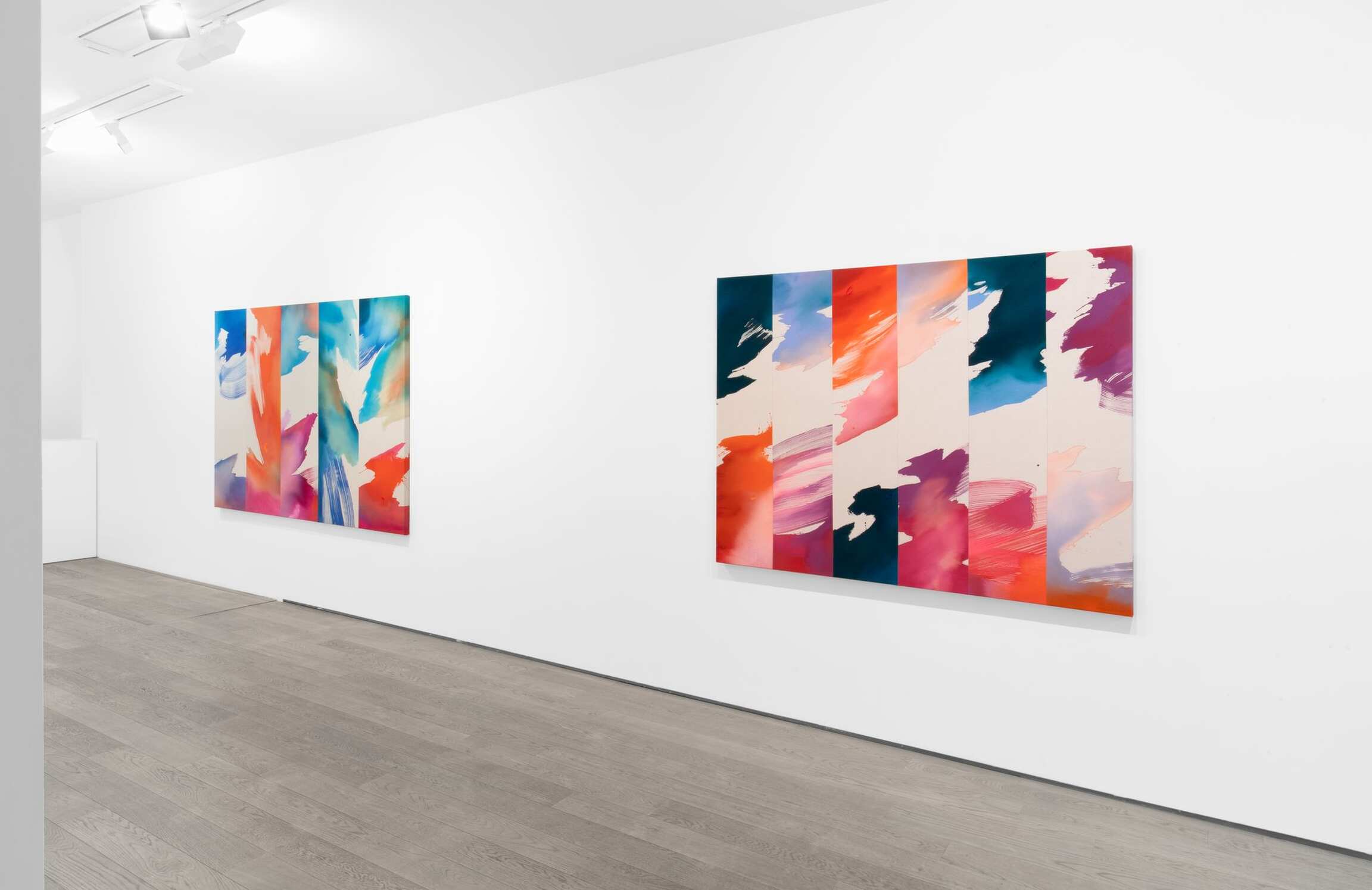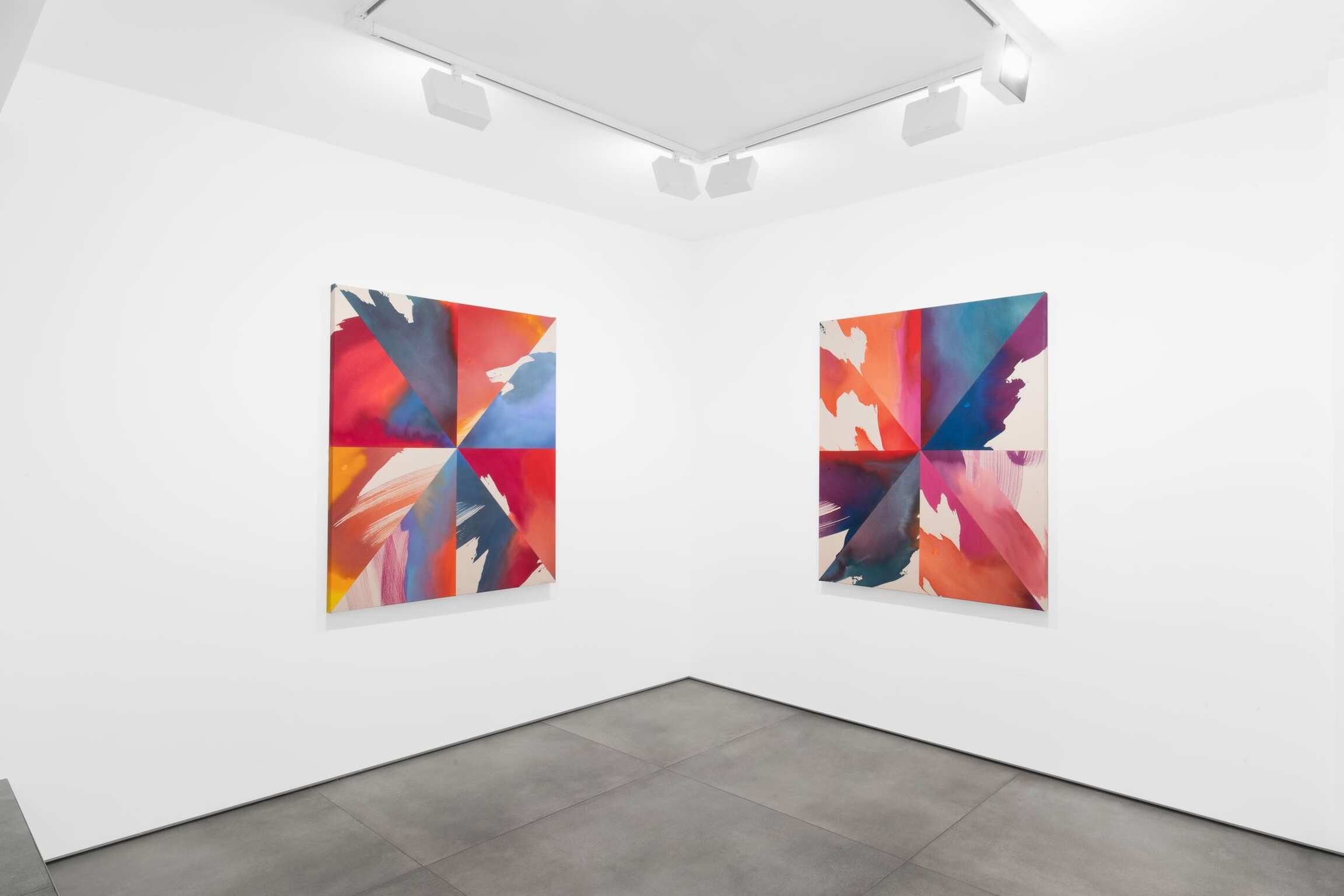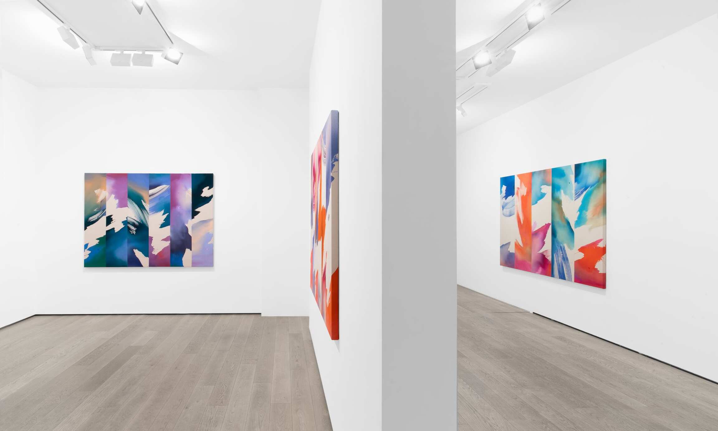 Heather Day makes large-scale abstract canvases dappled with the transmuting shades of the natural world. Far from literal evocations of the infinitely mutable atmospheric conditions that she observes at dawn and dusk in her high desert studio, Day’s works take apart and reassemble the medium in order to obliquely but evocatively depict the passing of time and the shifting of seasons. Titled A Moving Window, this exhibition explores the artist’s immersion in the quotidian yet profound environmental changes that happen every day outside her window. This presentation includes a new group of works from Day’s “Scattering Light” series, first begun in 2022, that examines the ways in which light is refracted through cloud formations. The artist probes the myriad ways that elevation and wavelength impact how this light is received by the human eye. With her saturated, pooling hues of deep red, blue, and orange, the artist interrogates how color and light leave an emotional residue, how sensory perception is intimately entwined with memory and affect.