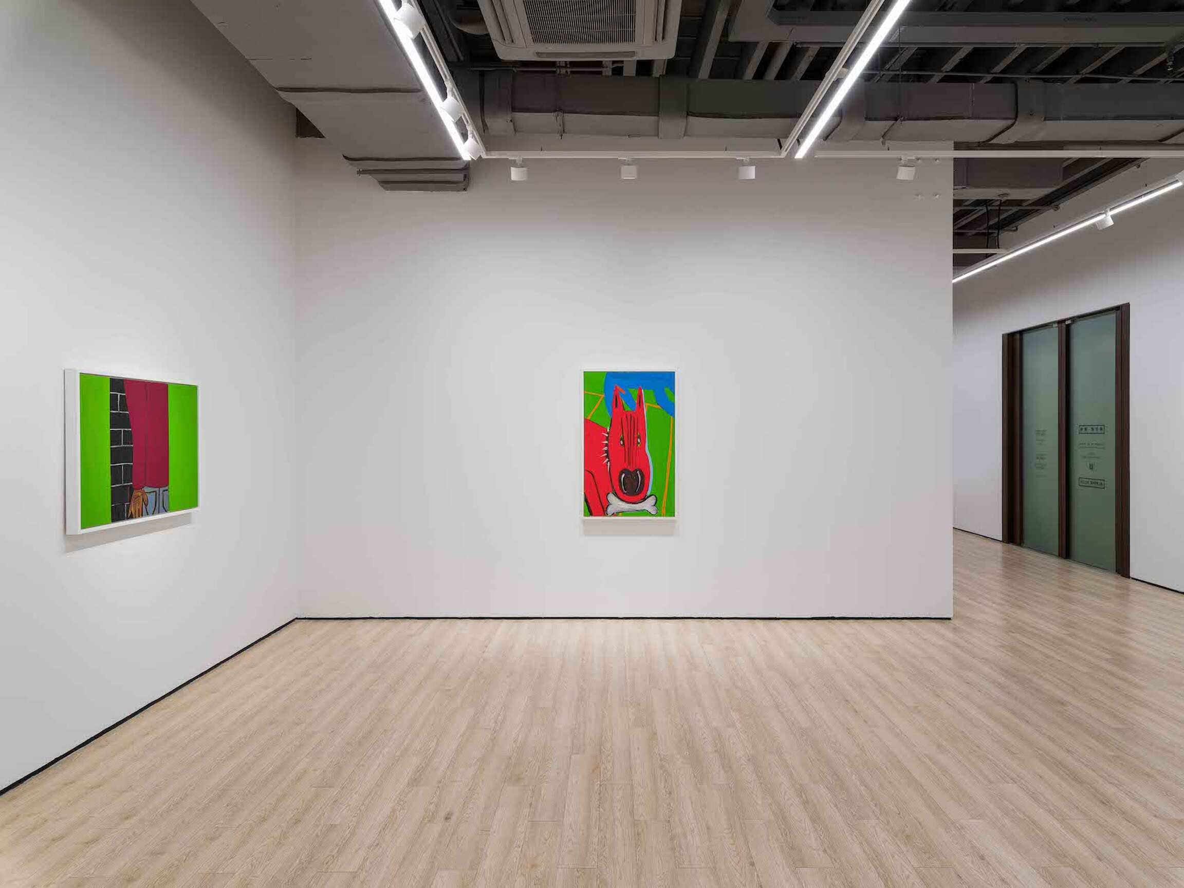 When Marcus Jahmal informed me, not long after our visit at his Brooklyn studio, that his forthcoming exhibition would be titled Fragments, my mind ineluctably leapt to the narrator’s refrain in Donald Barthelme’s 1966 short story See the Moon?: “Fragments are the only forms I trust.” Trust may be a stretch, but counterposed against the slick fictions of totality, linearity, and enclosure, fragments feel truer to the ways in which meaning often comes to us: in pieces, more readily navigable by associative, recursive, and oneiric logics than linear ones. Fragments comprises 13 flat, graphic, closely cropped paintings, each of which is a fragment of an earlier painting by the artist, akin to a slivered dream. Flouting the contemporary art market’s aversion to the recent past, Jahmal revisited his own work from the last two years, lingering on surreal tableaux in which lone figures and animals preside over perspectivally screwy interiors in intense hues. He zoomed in on slices of these pictures and filtered them through the lens of the present—the present moment, the present painter—to make them anew, intuitively shifting his palette (a scumbled maroon wall there is a fleshy Guston-esque pink here) and evocatively swapping out symbols (a skull there is a man here).