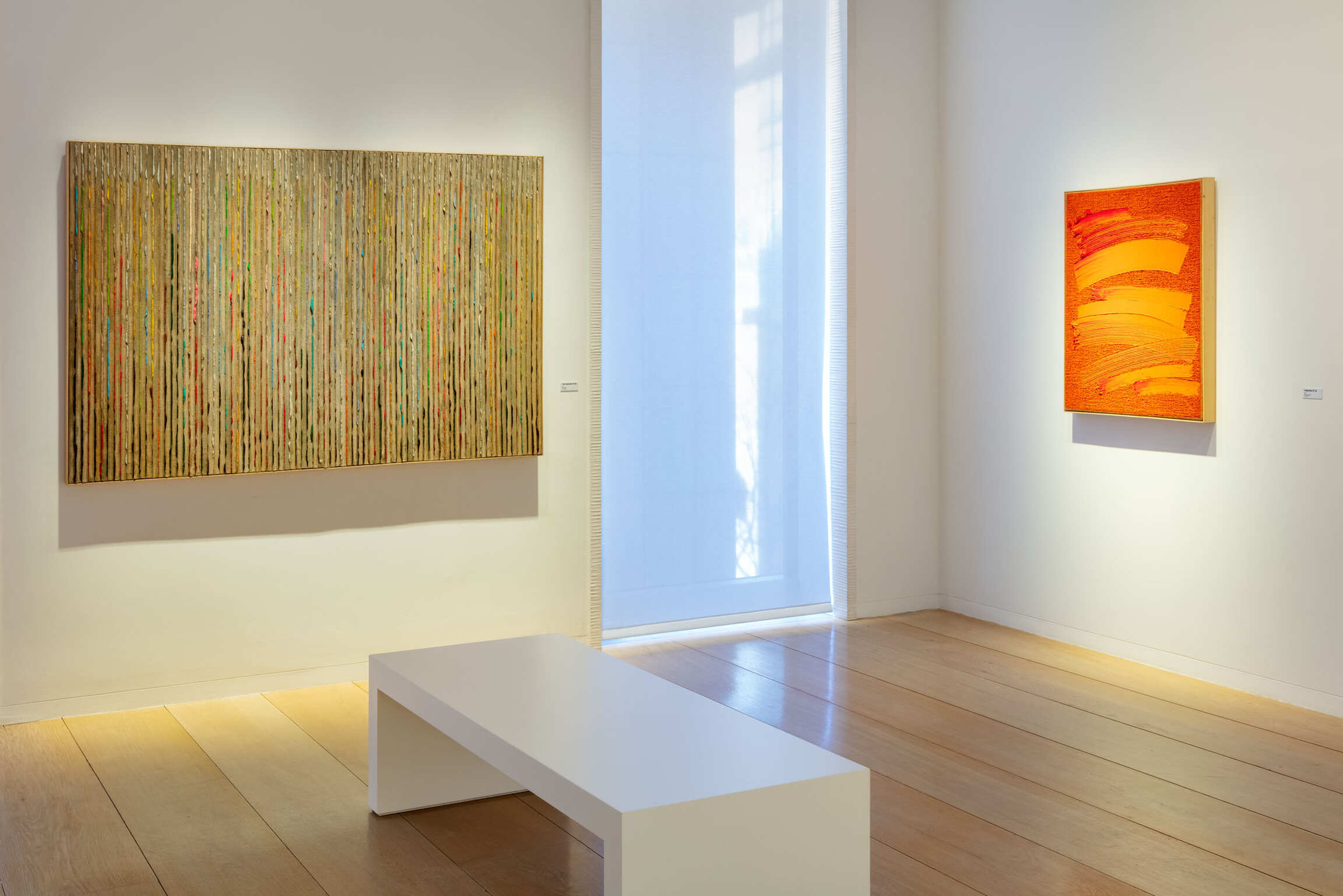 Bordering on monochrome, his artworks seem to acquire color as the light passes through them. Multiplying the subtle effects of contrast and relief, his abstract creations, exploring the fields of possibility, are characterized by the use of singular fabrics, such as hemp and natural pigments. Magnifying and revealing textures, the artist paints on the reverse side to reveal the truth of his pictorial language on the front. An invitation to contemplate that diverts perspectives.