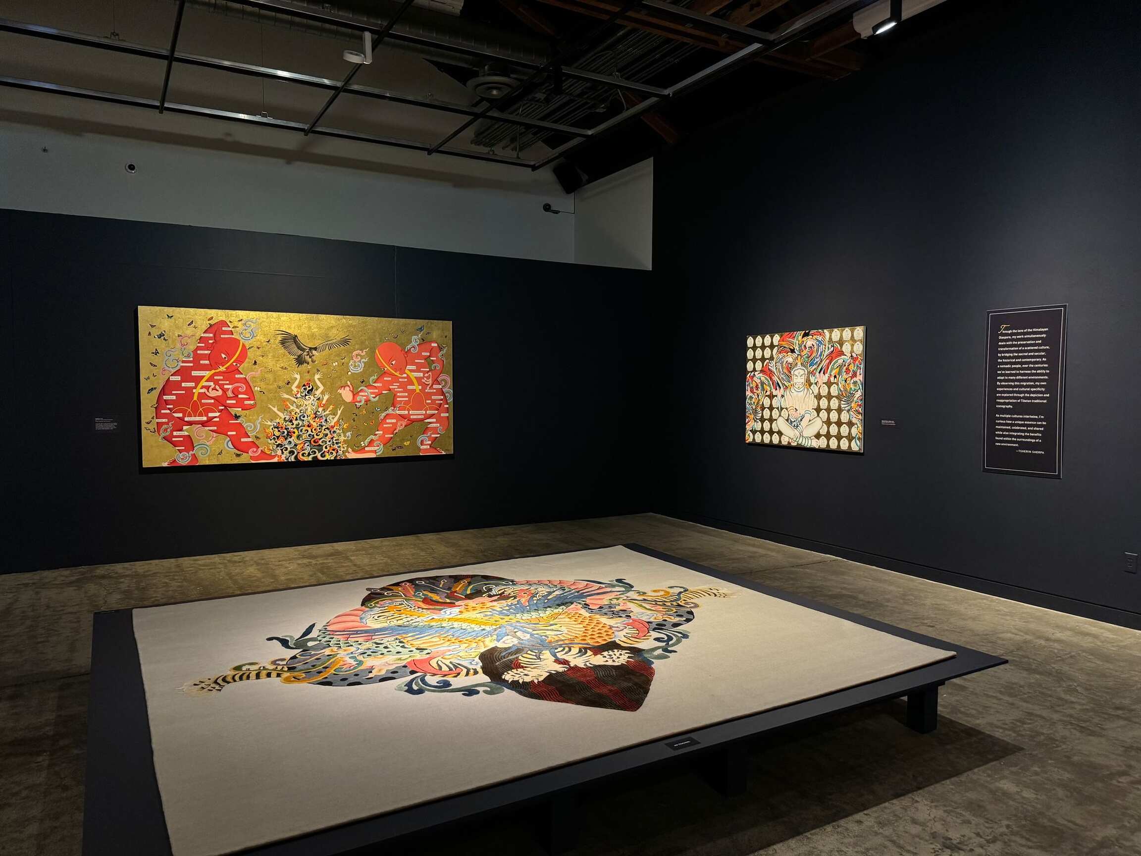 'Tsherin Sherpa: Different Worlds' presents the captivating artworks of Tsherin Sherpa, a globally renowned contemporary artist. Born in Kathmandu, Nepal, Tsherin Sherpa emigrated to the San Francisco Bay Area in 1998. The artist’s work is grounded in his personal experiences within the Himalayan Diaspora and his rigorous training as a Thangka painter (traditional Buddhist art).