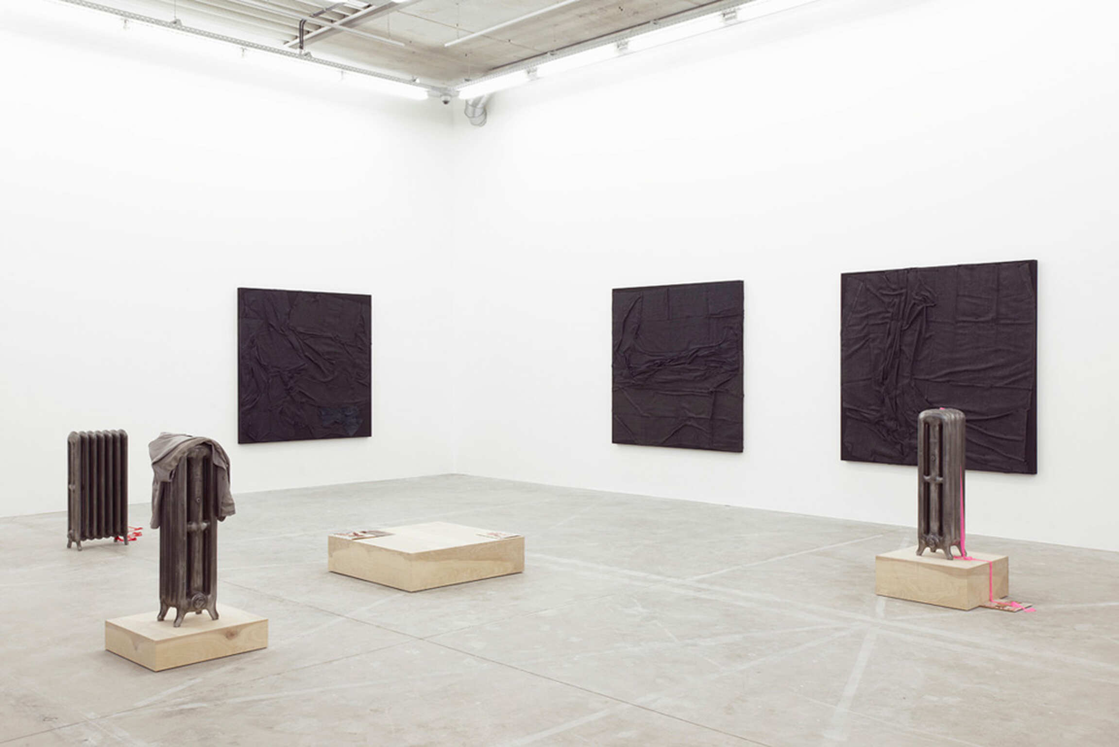 Thus, radiators, normally relegated to the lower corners of rooms, are here exhibited in the centre of the space, as if they were huddling together. Although these pieces have lost their specific function, the memory of their use will remain intact. They were all designed for heating, an indispensable form of security.