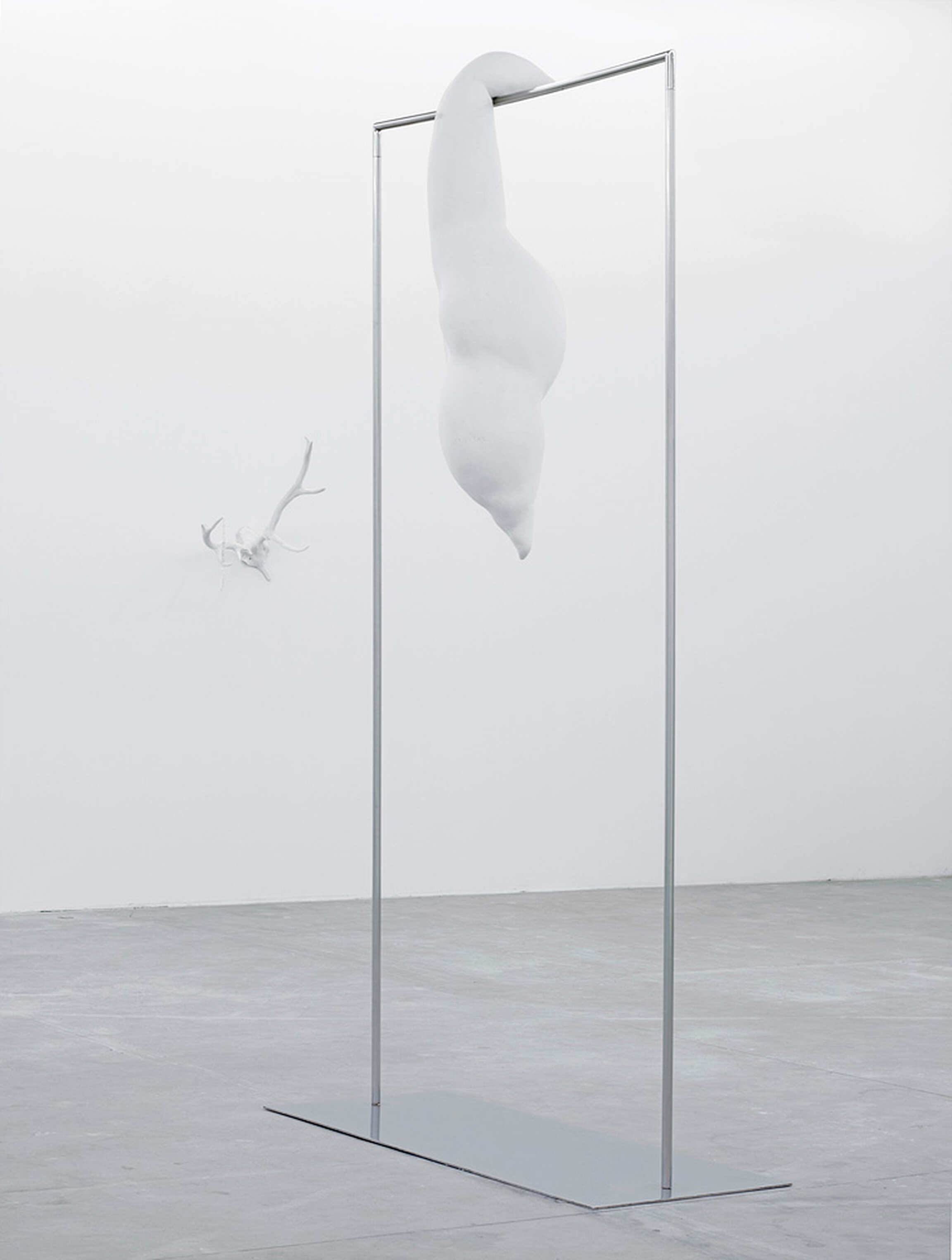A final component of the exhibition is the presence of the animal. It is metamorphic and surreal in ‘Rabbit Turning into a Cloud’; abstracted and bordering on architecture in ‘White Tongue’; poetic and icon-like in ‘Naked Animal with Roof’; and explores mortality and challenges decorative associations in ‘Nietzsche’ and ‘Melting Deer’.